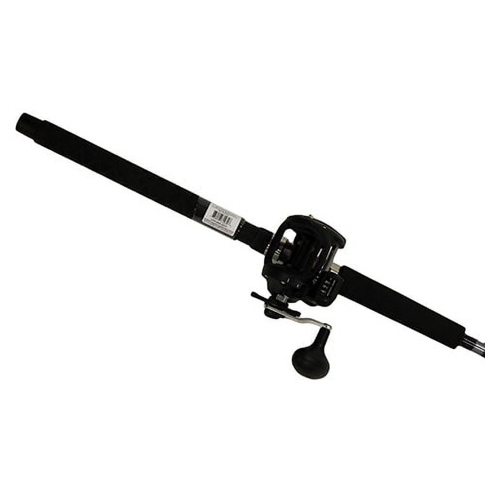 Okuma Star Drag Downrigger Trolling Combo has a 2-piece 8’6″ length medium rod and comes with the 30DXT Reel. The Great Lakes Trolling combo has a durable E-glass blank construction with double footed aluminum oxide guides. Reel has machine cut brass gearing, stainless steel hooded reel seats and corrosion resistant graphite spool.