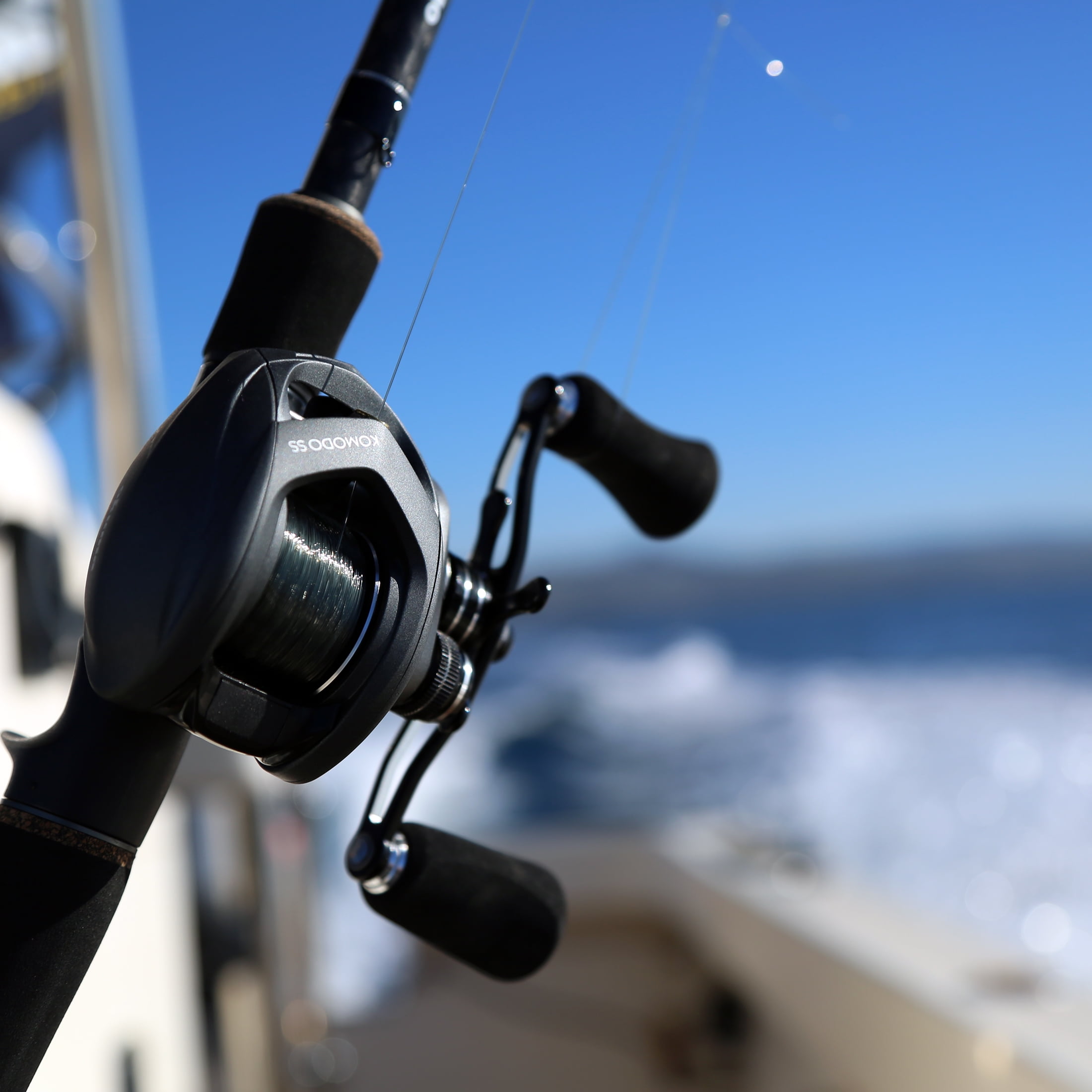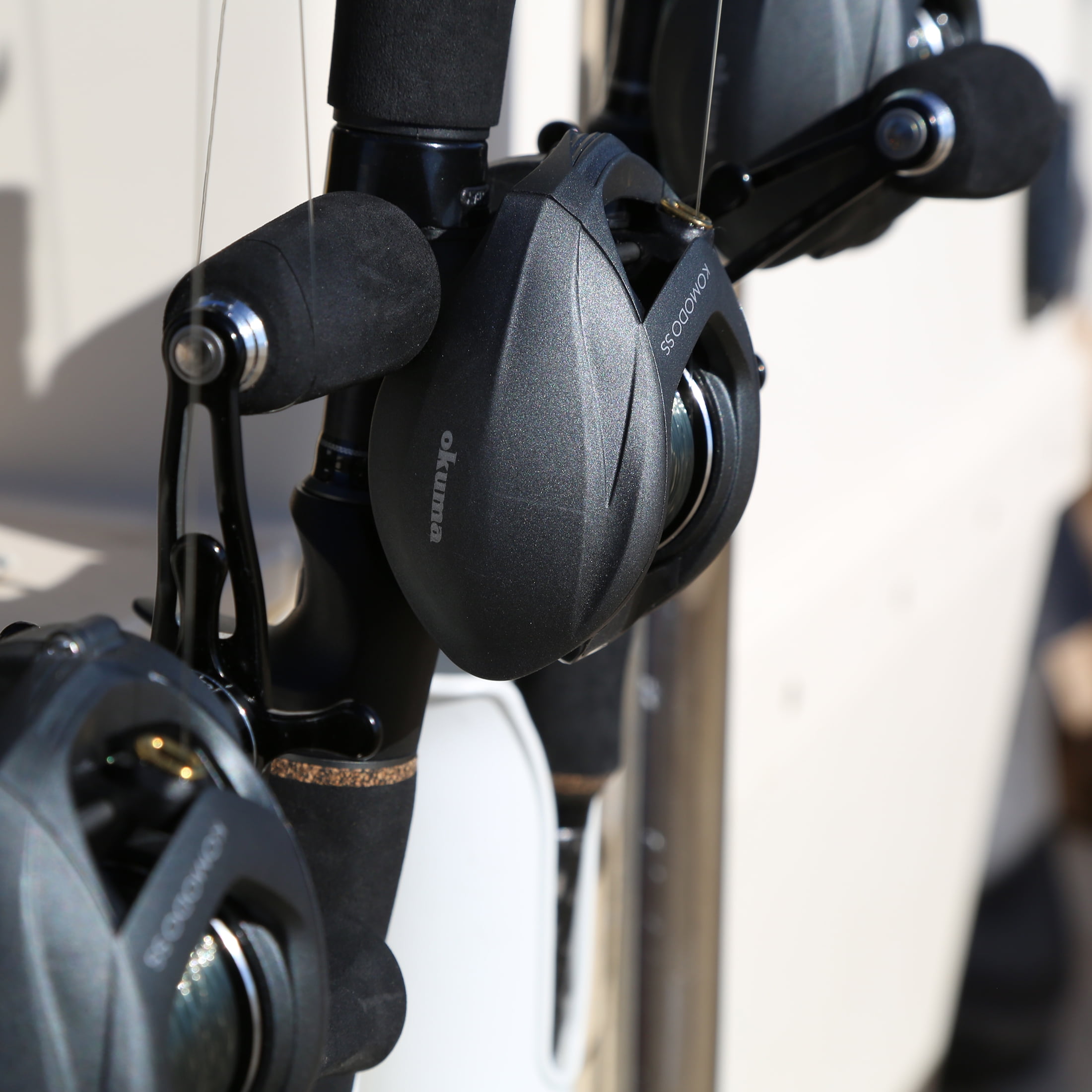 The Okuma Komodo family of low-profile baitcast reels has been the recipient of tremendous accolades. One of our favorites being from a 30-year veteran of big fish angling regularly referring to the reel as an “excellent value” or “best toughness and value I’ve seen.” This is no surprise. Komodo reels, featuring stainless steel gearing and drive shafts, along with amazing levels of drag output, take on the largest freshwater fish like pike, musky and salmon, along with the toughest inshore species like stripers, jacks and trophy calico bass, with a level of power and durability that is best in their class. The selection includes three sizes, with options in gear ratios and handles to deliver the perfect reel for your big fish applications.