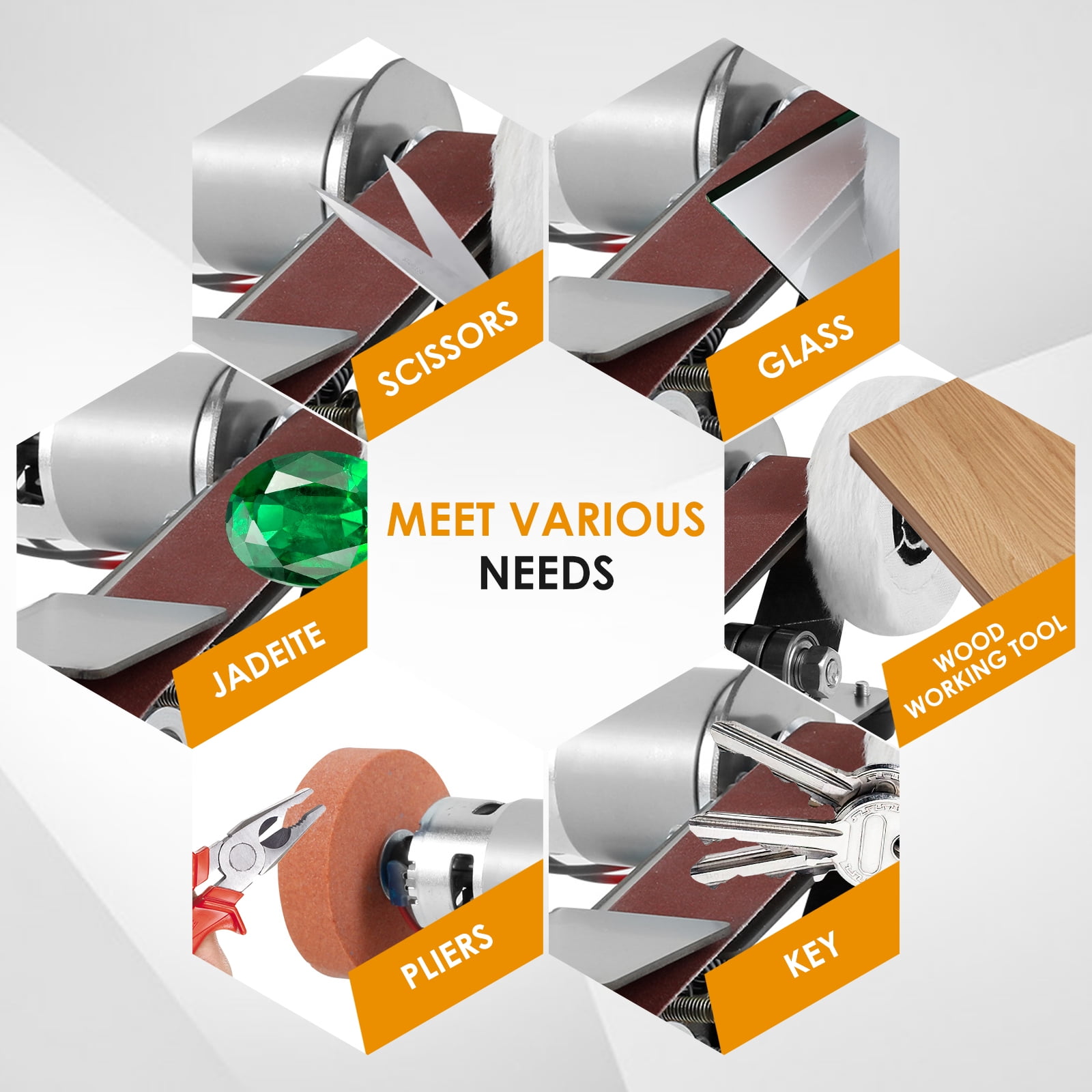 [7 Adjustable Speed] This multifunctional mini belt sander features 7speed adjustable settings, allowing rotation in both directions from low speed for fine polishing to high speed for fast sanding to meet your specific requirements [High Speed and Torque] Equipped with a stable motor, this product delivers high speed and torque while maintaining low noise levels. It has a fixed 15degree belt angle and a threebearing design, making it suitable for metalworking and quick belt changes [Widely Used] Our mini sanding machine is versatile and can meet various needs, including metalworking, jewelry making, plastic resin art, cutter making, and more Ensure the power adapter plug and machine port are firmly connected during use. Pay close attention to the indicator light on the power adapter. If the machine does not respond, immediately disconnect the power supply