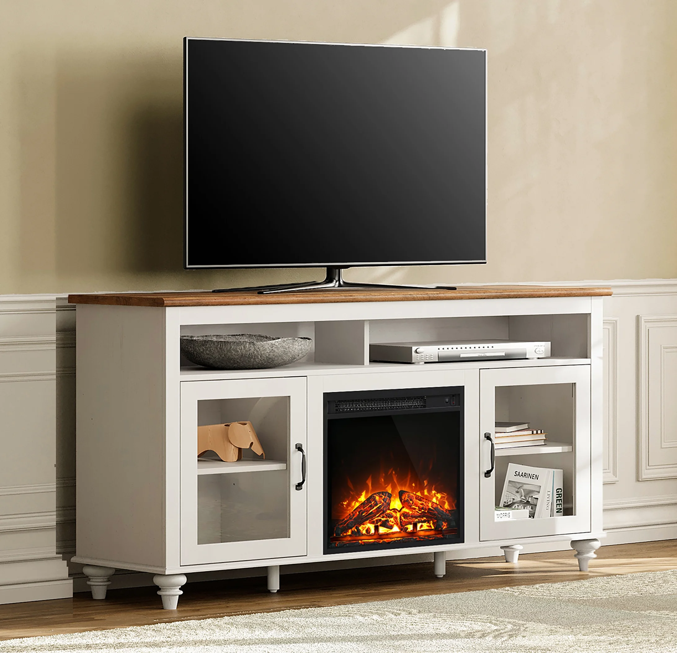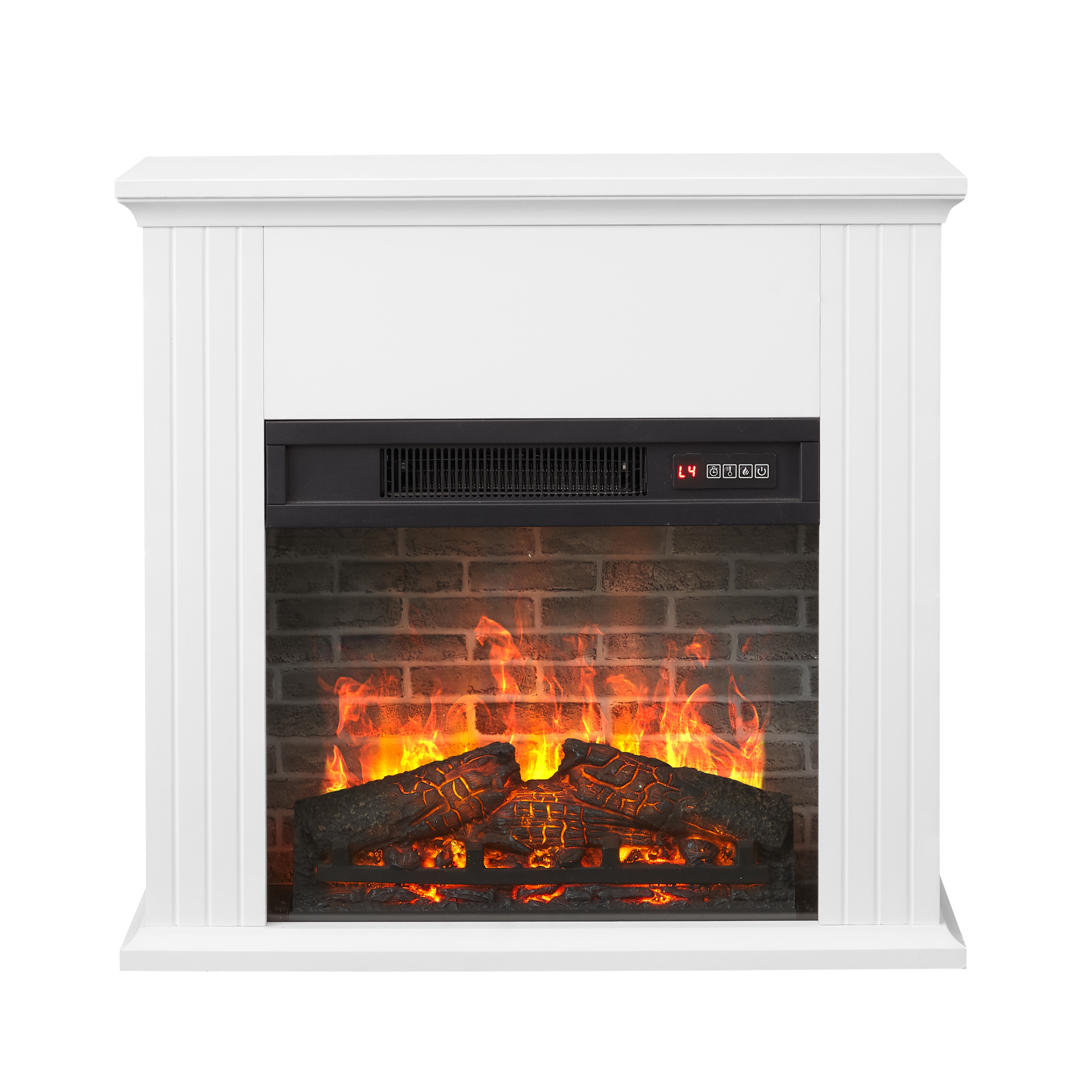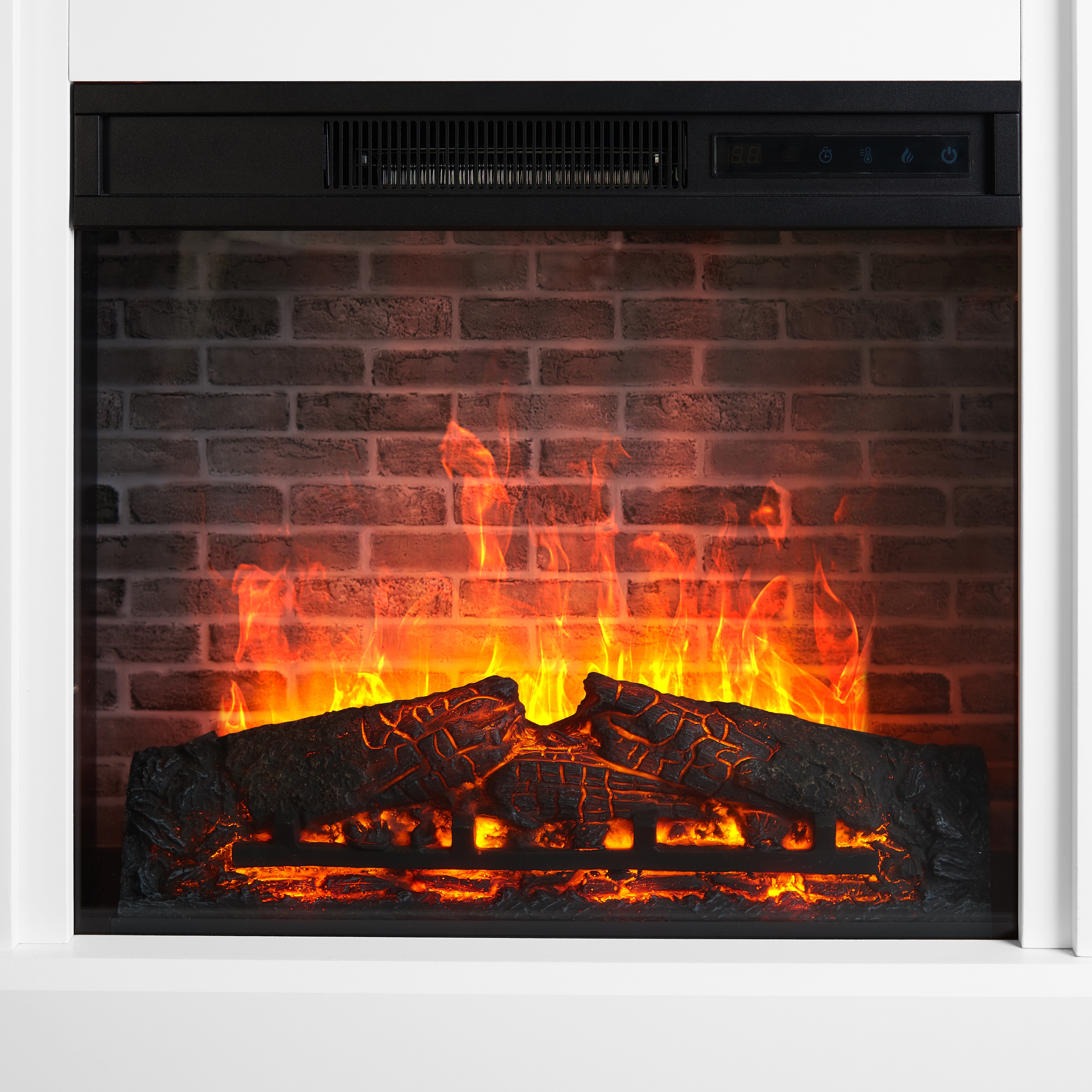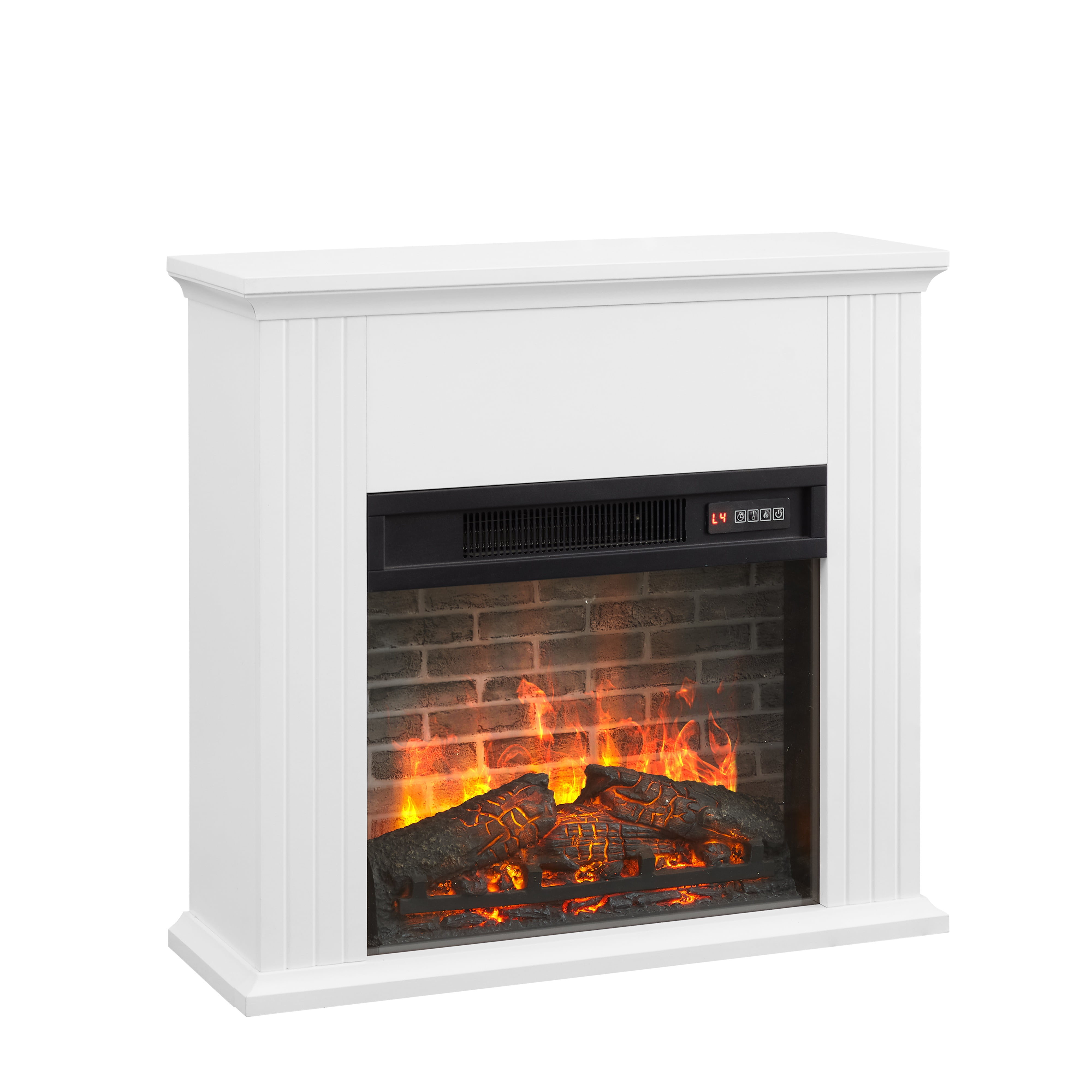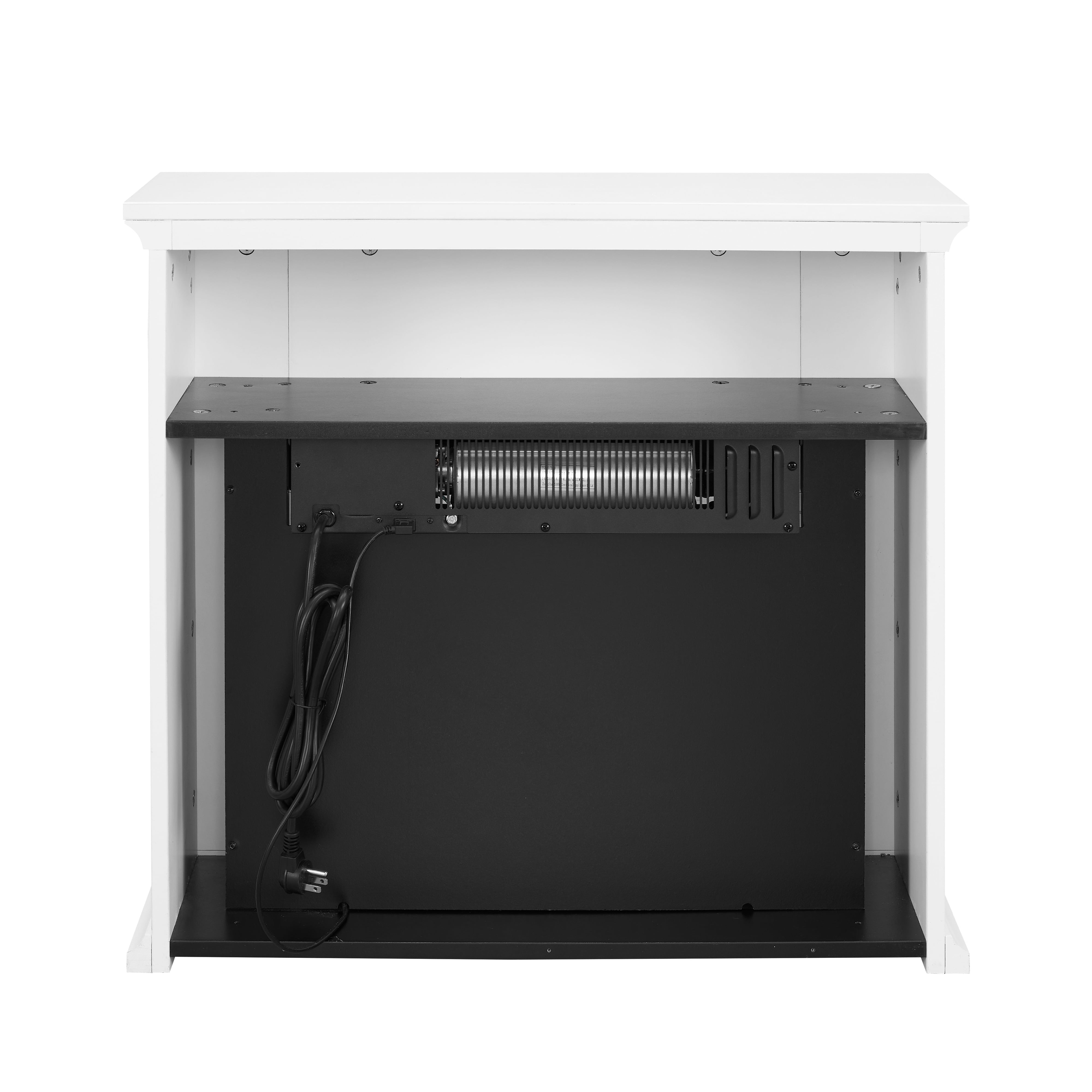 40in wide, 1400W energy-efficient insert Voltage: 120V/60Hz Independent heat and flame control Realistic ember and flame effects Dimensions: 28”Wx8.9”Dx26.38”H Product Weight: 42.95lb (19.48 kg) Packaging Dimensions: 31.7”x21.5”x12.25” Packaging Weight: 56.22 lb (25.5 kg) 4 Flame level settings, including no flame Enjoy flame display with or without heat Easy-to-use remote control Ease assembly Supplemental heat for a cozy feel in a room up to 400 square feet Fits a standard wall outlet, no additional electrical equipment is required Fit for Living room, dining room, or open concept living space Provides clean heating, while creating a comfortable, cozy ambiance. This contemporary media center fireplace does not function as a TV stand. Do not place the TV on the mantel. Model No:MJ23-FP18K-26A