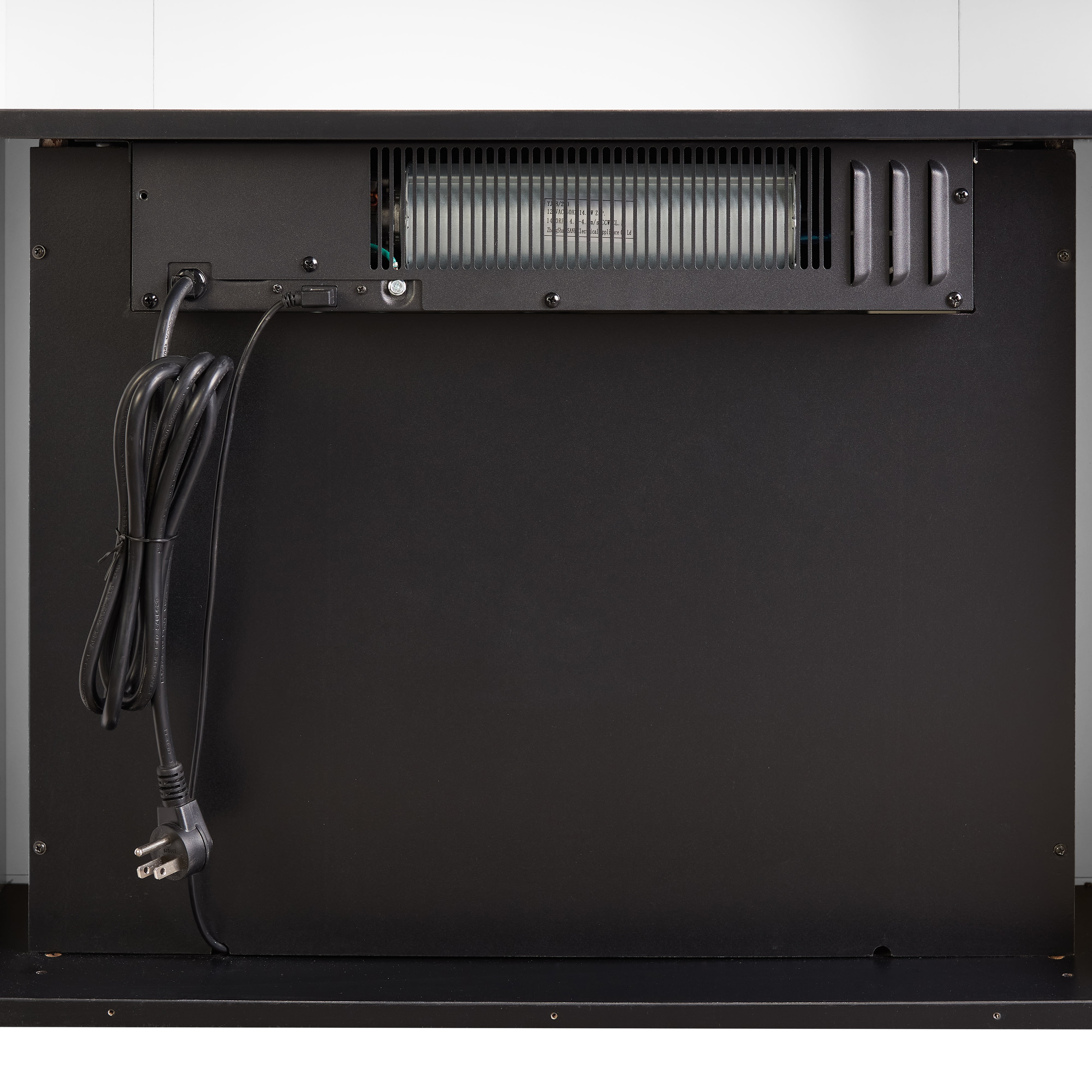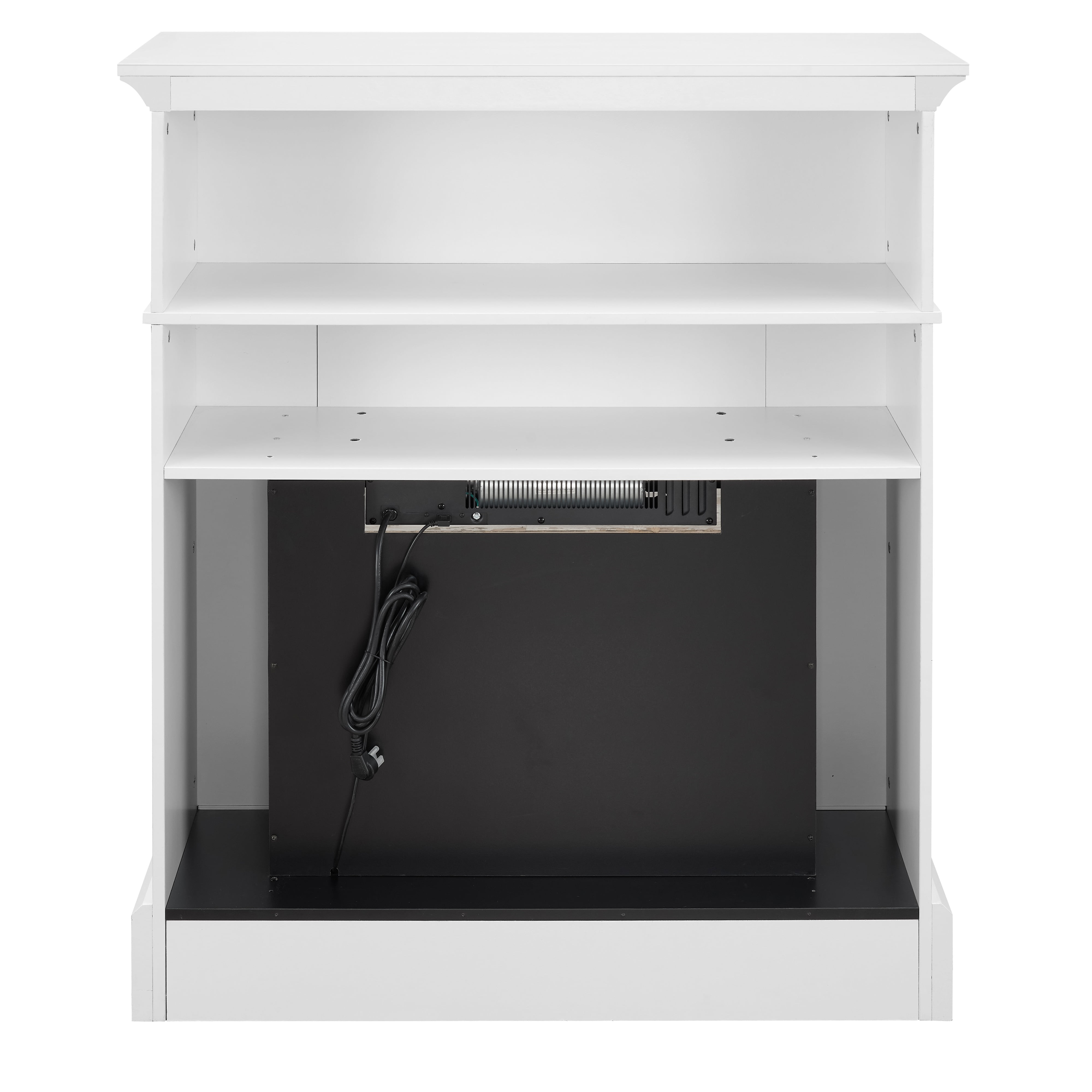 40in wide, 1400W energy-efficient insert Voltage: 120V/60Hz Independent heat and flame control Realistic ember and flame effects Dimensions: 40″W*14″D*47.25″H Product Weight: 98.5lb (44.7 kg) Packaging Dimensions: 45.9”Wx25.4”Dx13.4”H Packaging Weight: 108.5 lb (49.2 kg) 4 Flame level settings, including no flame Enjoy flame display with or without heat Easy-to-use remote control Ease assembly Supplemental heat for a cozy feel in a room up to 400 square feet Fits a standard wall outlet, no additional electrical equipment is required Fit for Living room, dining room, or open concept living space Provides clean heating, while creating a comfortable, cozy ambiance. This contemporary media center fireplace does not function as a TV stand. Do not place the TV on the mantel. Model No: MJ23-FP23W-43