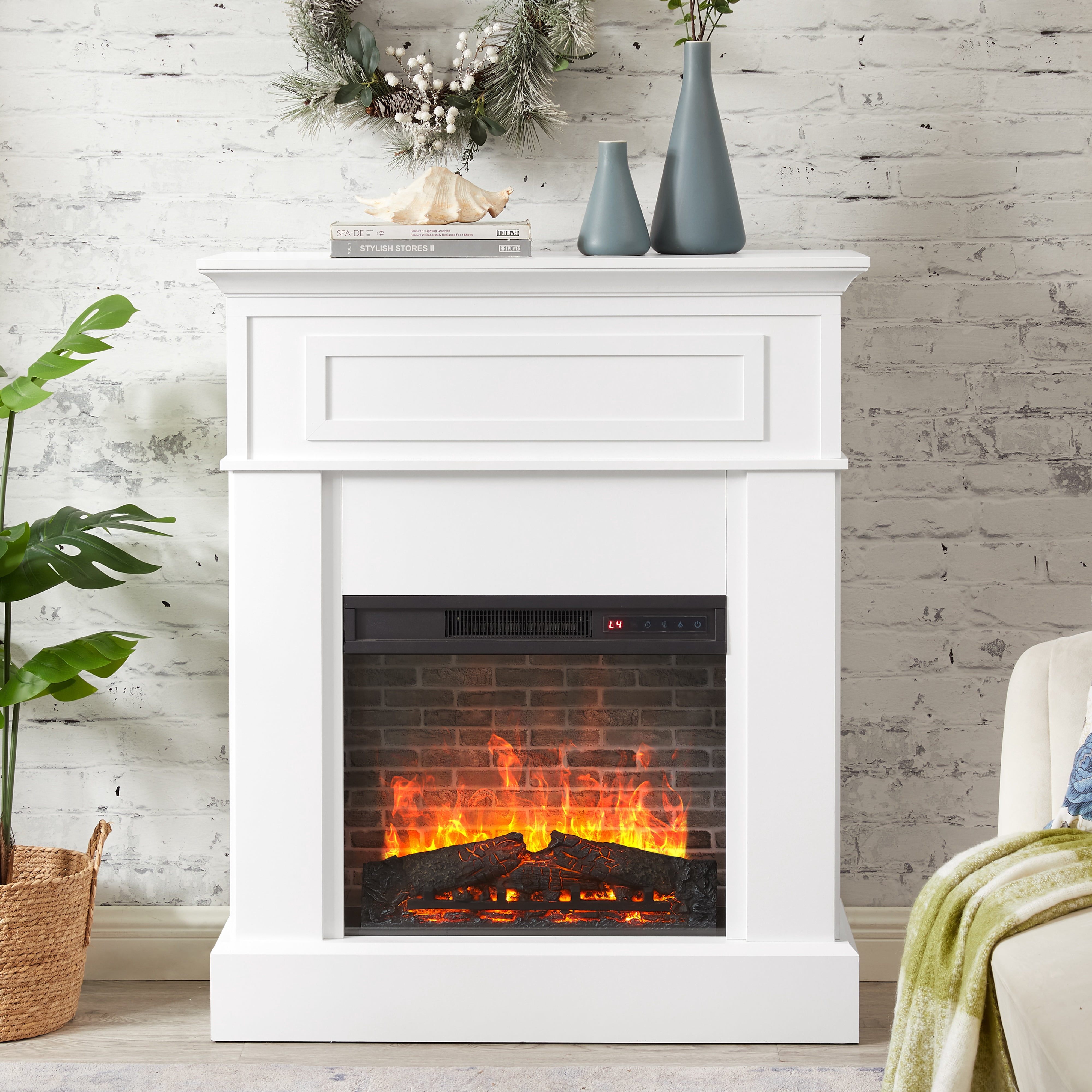 Old Captain brand 40in Mantel Fireplace, White Finish