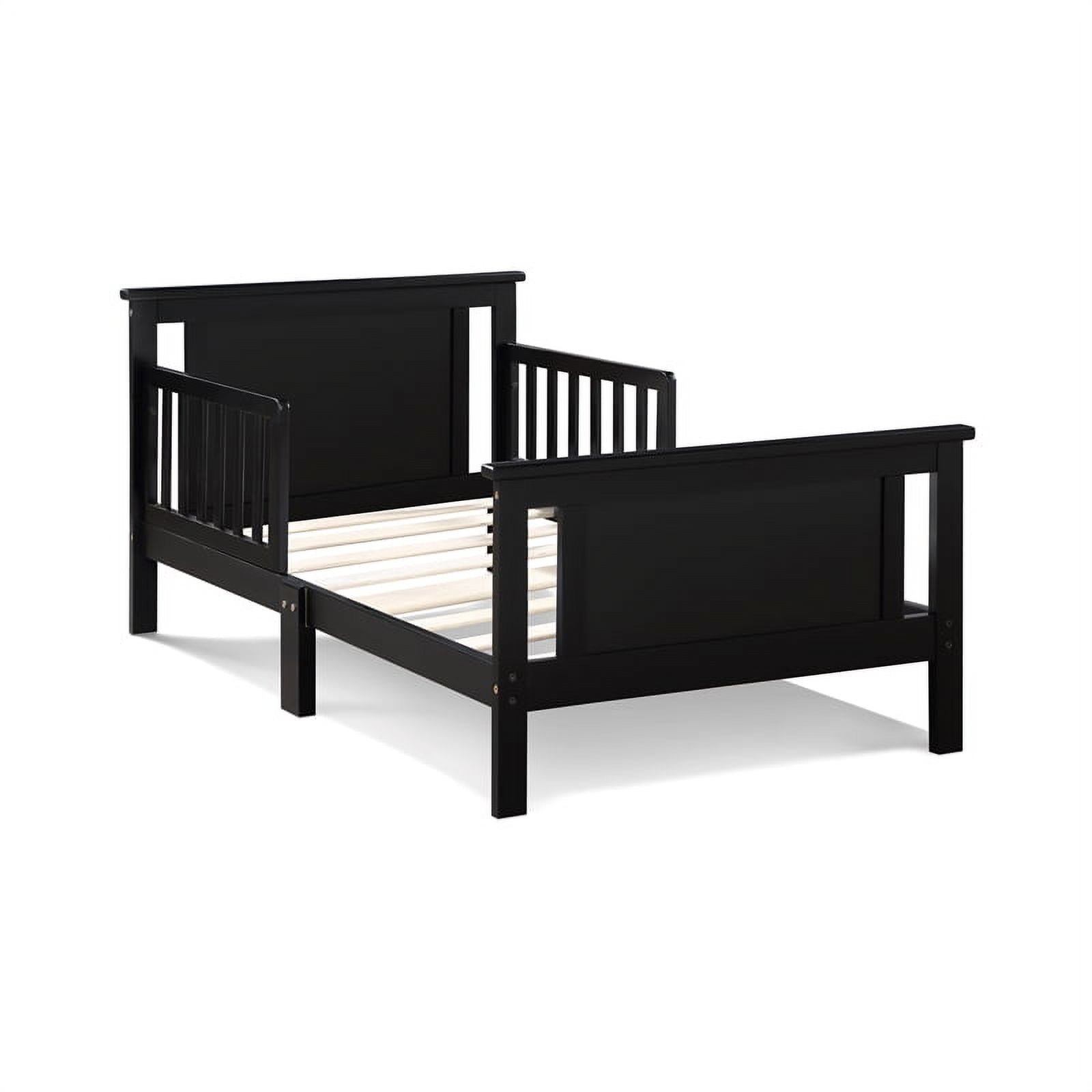 The Connelly Collection from Olive & Opie takes on the characteristics of its close cousins from Suite Bebe. When your child is not quite ready for a big kids bed, the Connelly Toddler bed is the perfect fit! Even though its a pint size version of the Connelly Twin and Full, it’s not pint size on style! Same two-tone design with decorative veneers, featuring reversible headboard and footboard panels, make this toddler bed feel all grown up. With the low profile size, your toddler will also build confidence and independence as they climb in and out by themselves. The Connelly Toddler bed is the right fit for your growing toddler. Coordinate the look with the Connelly nightstand also from Olive & Opie. (Sold separately) Features: Materials: Solid durable wood Finish: Black, vintage walnut Dual-tone finish with contrasting veneers Reversible headboard and footboard panels for 2 different looks Fits standard size crib mattress (sold separately) Specifications: Product Dimensions: 24.5″H x 53.75″W x 31″D Product Weight: 31 lbs