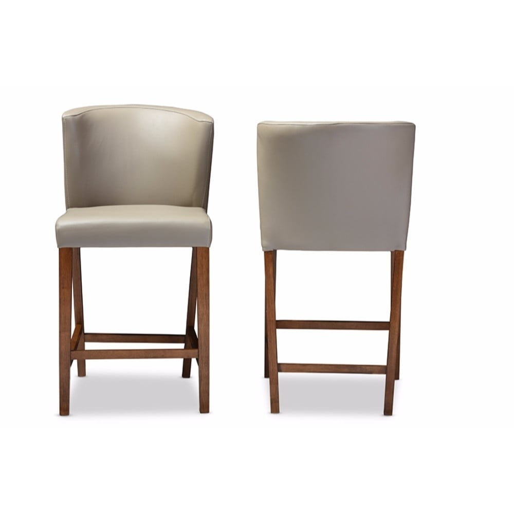 Olivia Mid-century Modern Style Walnut Wood Grey Faux Leather Pub Stool (Set of 2)