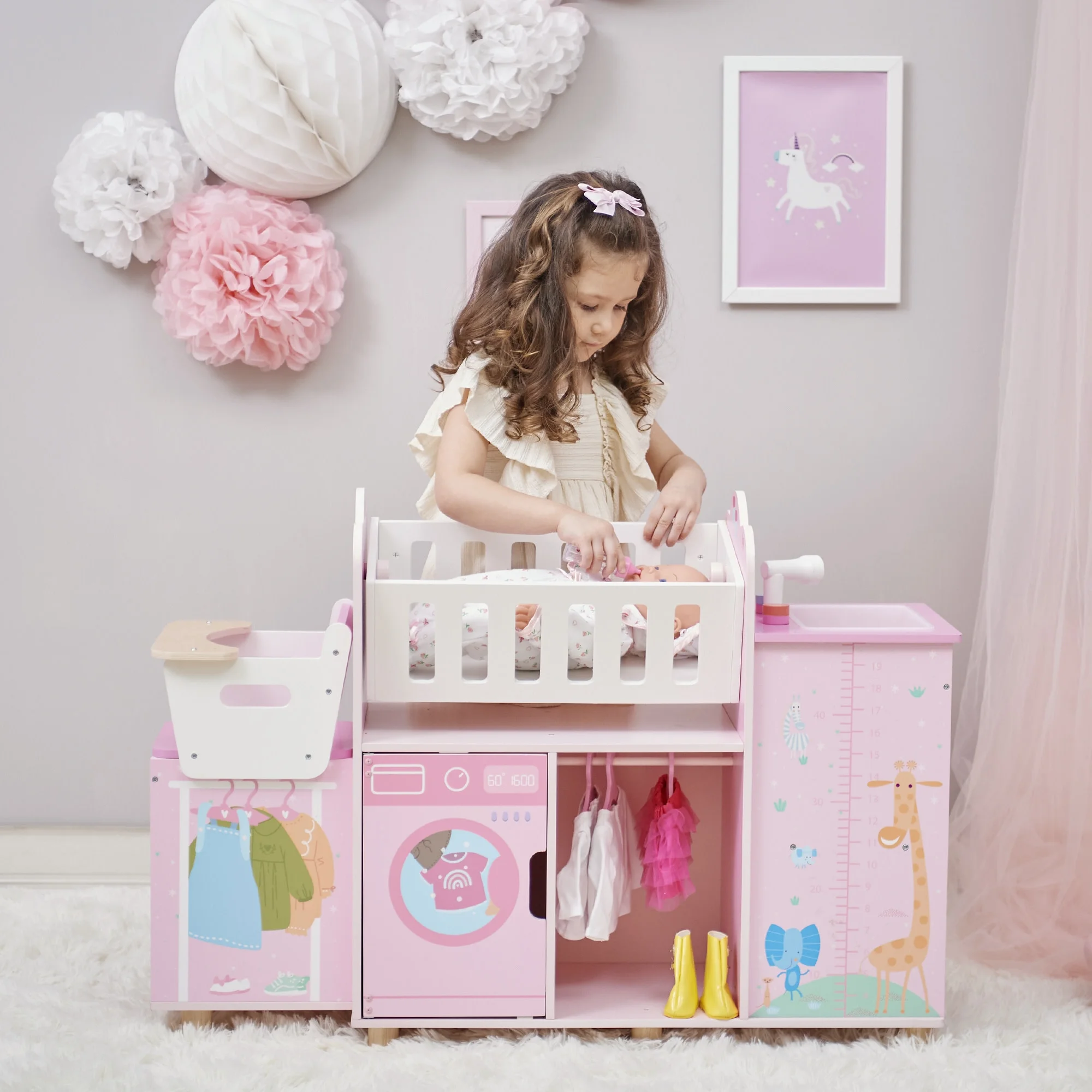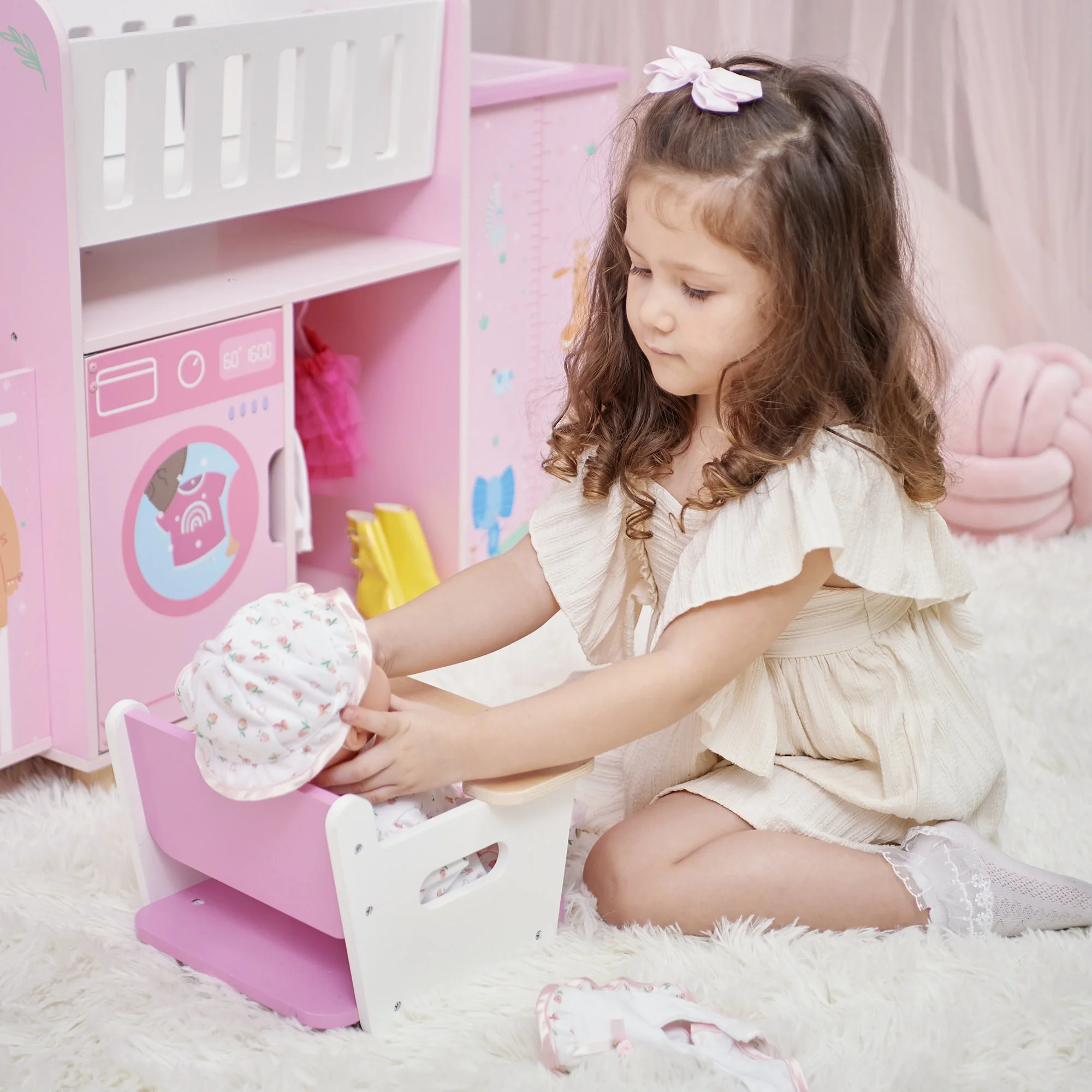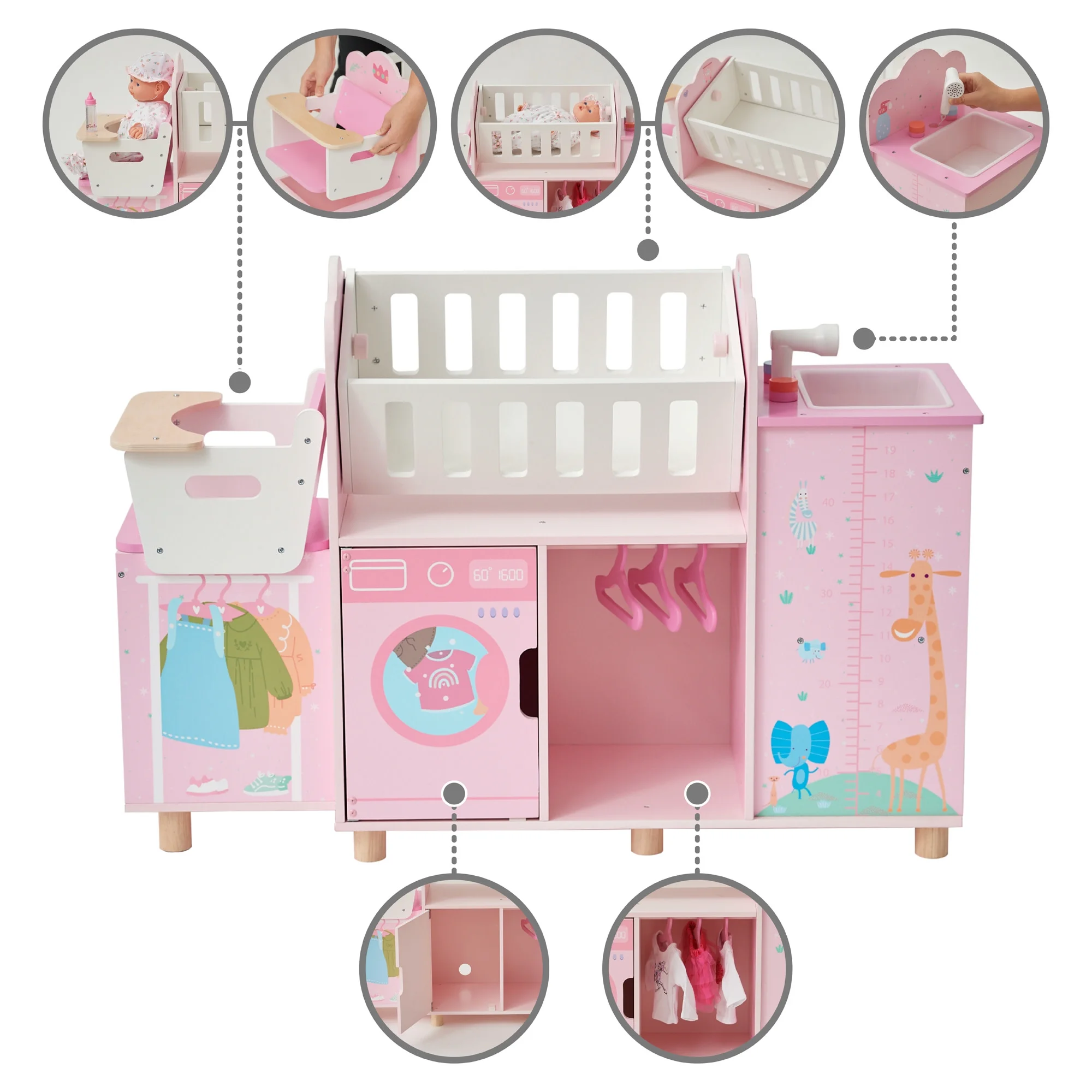 Olivia’s Little World Amanda 6-in-1 Doll Nursery Station with Cradle, High Chair, Sink & Washer
