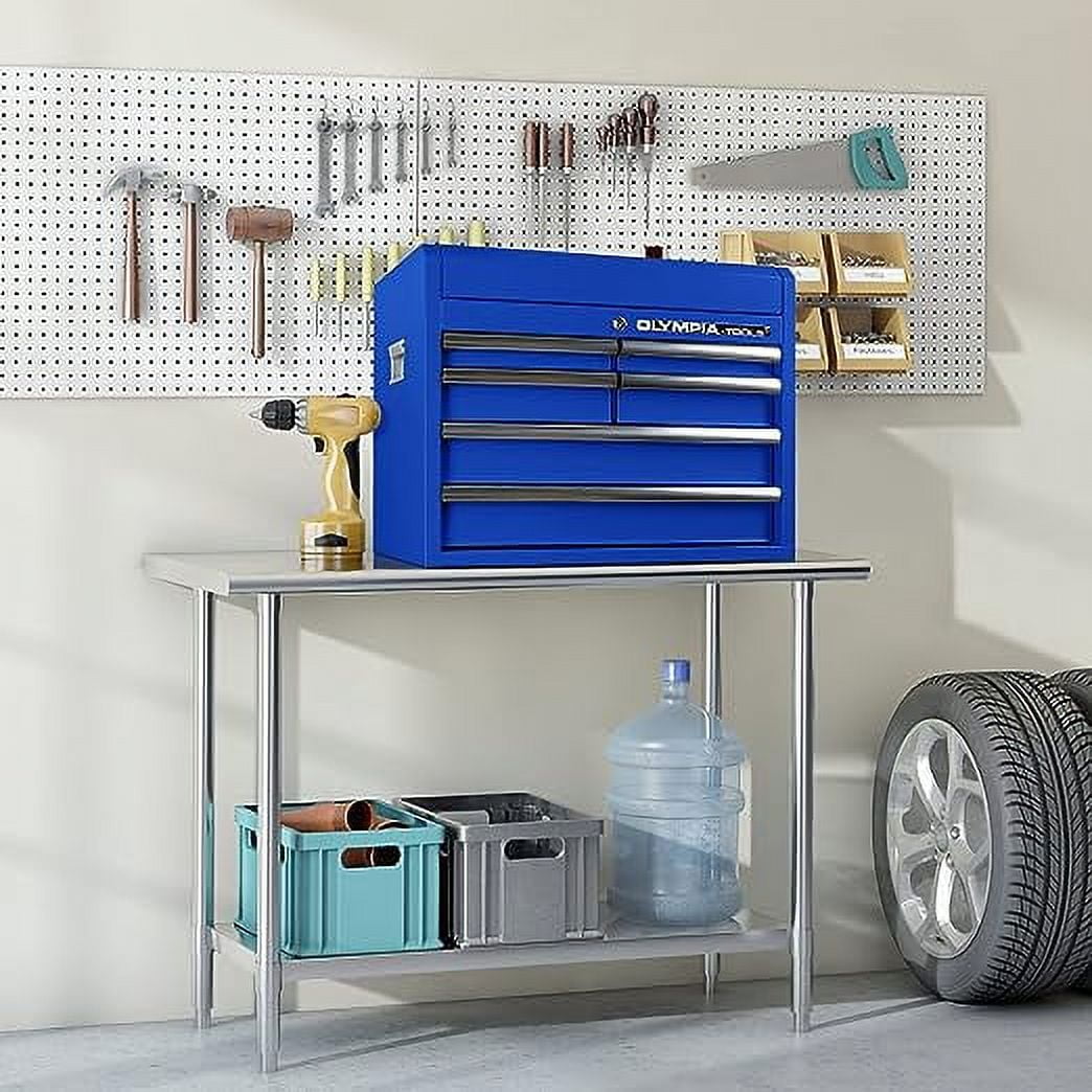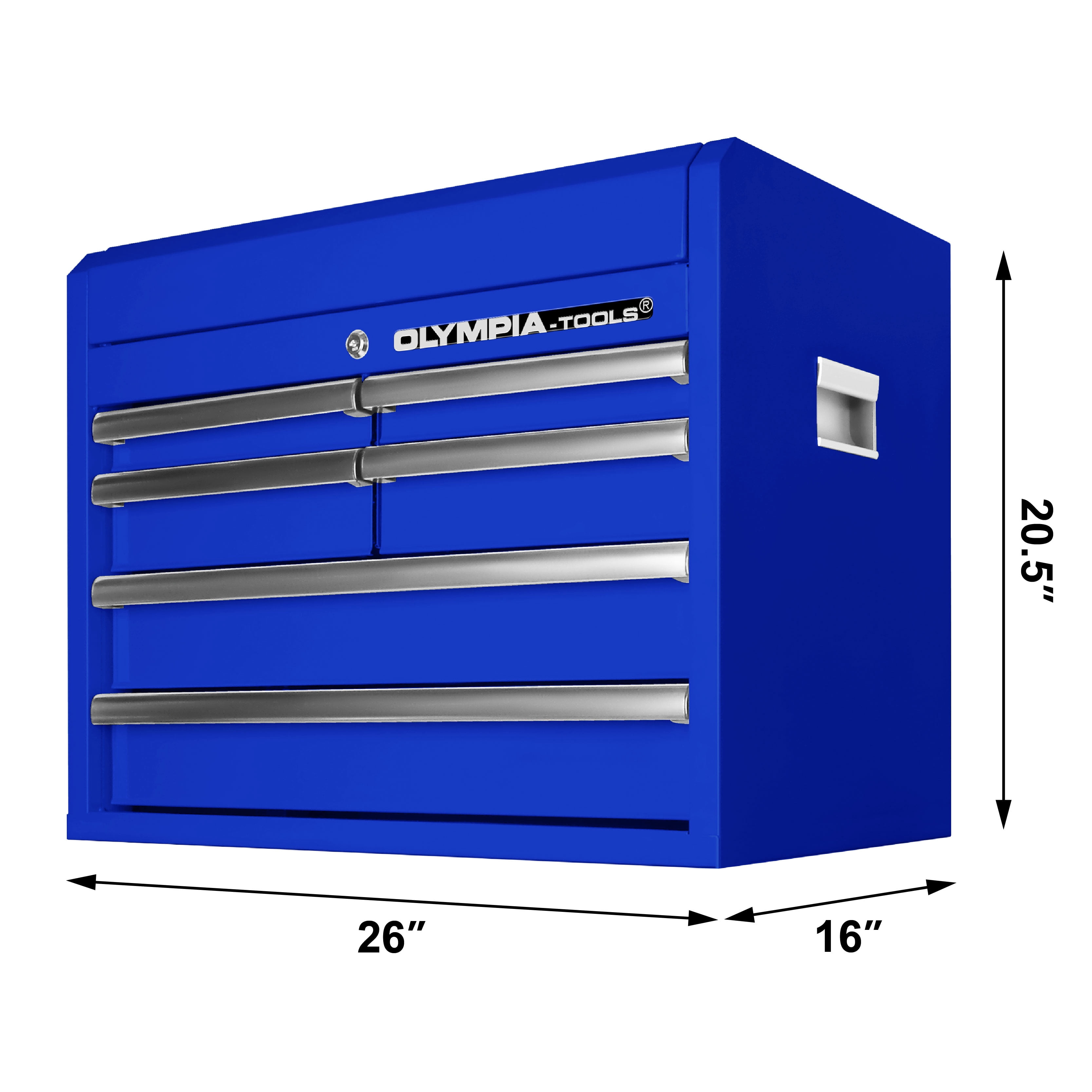 Olympia Tools 6 Drawer Tool Box, 26inch Top Metal Tool Storage Cabinet with Tray, Drawer Liner, Blue