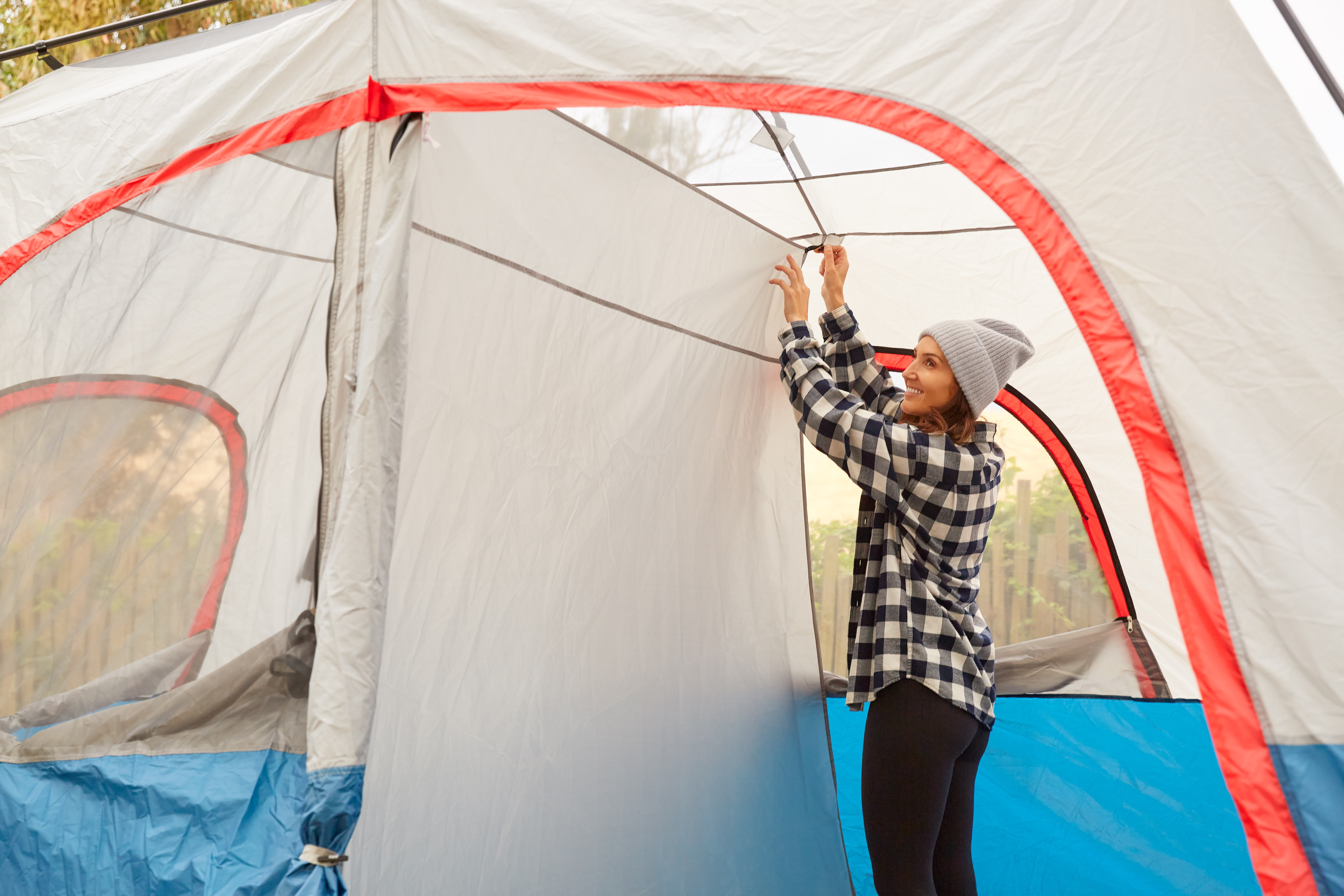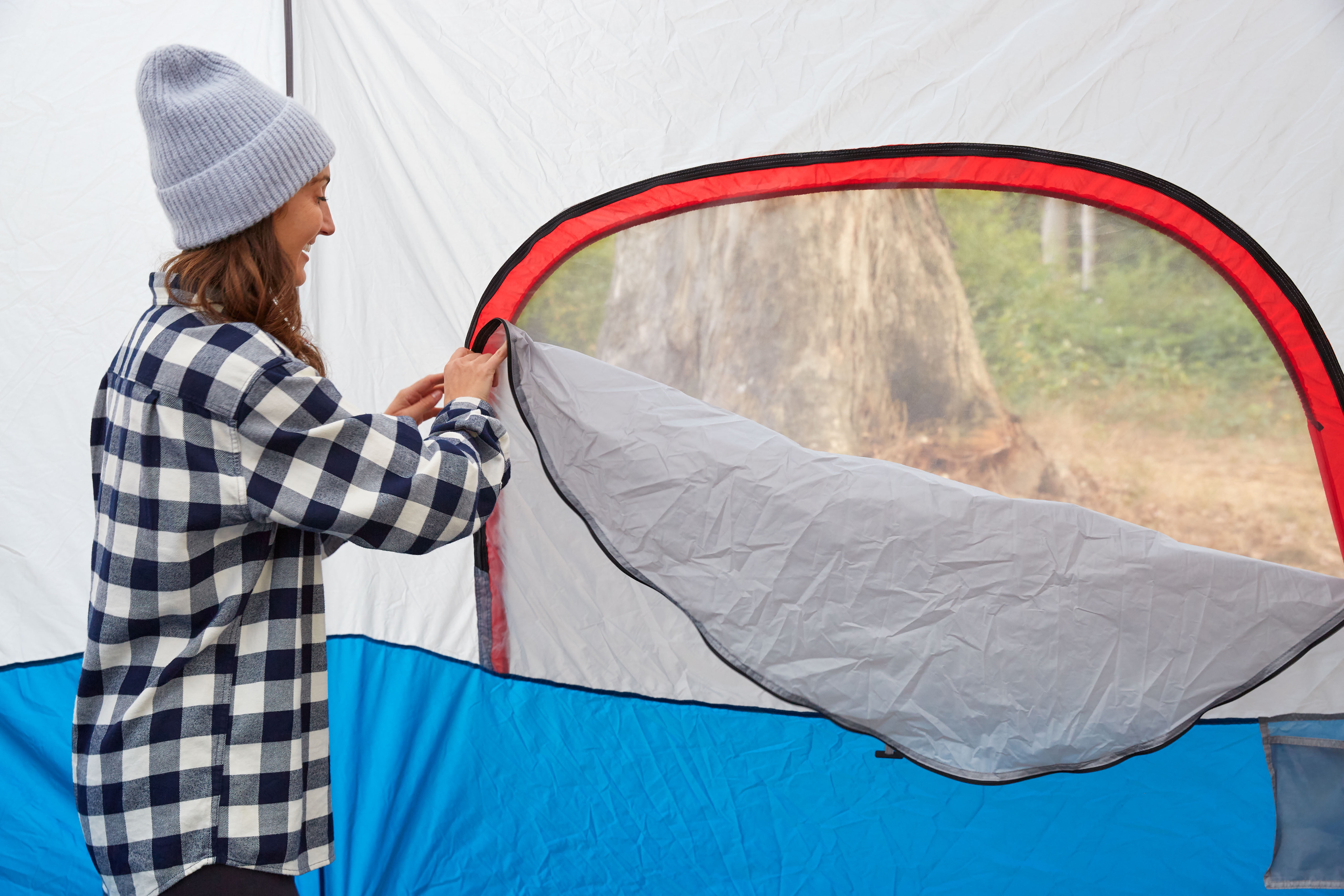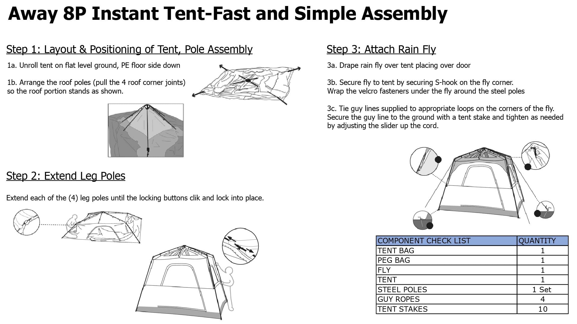 The OmniCore Designs Instant Cabin Tent makes getting camp set up quicker and easier than ever. This instant tent has pre-attached poles that make setting up camp as simple as unfolding, extending, and securing. You can assemble the tent in about 60 second. This camping tent features raised tub floors to help ensure you stay dry when the weather starts to turn wet. The detachable rainfly offers added protection from the rain and improves airflow when you want it. Cabin tent is made from super rugged and durable 2X double-thick 70 Denier with 190T Poly that stands up to the rigors of the outdoors, so you can use it reliably season after season. This 8-person tent offers enough room for two queen size air beds and comes with an optional room divider and features integrated storage pockets to help you keep small items organized. And when it’s time to go home, the camping tent packs away securely in the included expandable carry bag that lets you tear away the rip strip for easy packing.