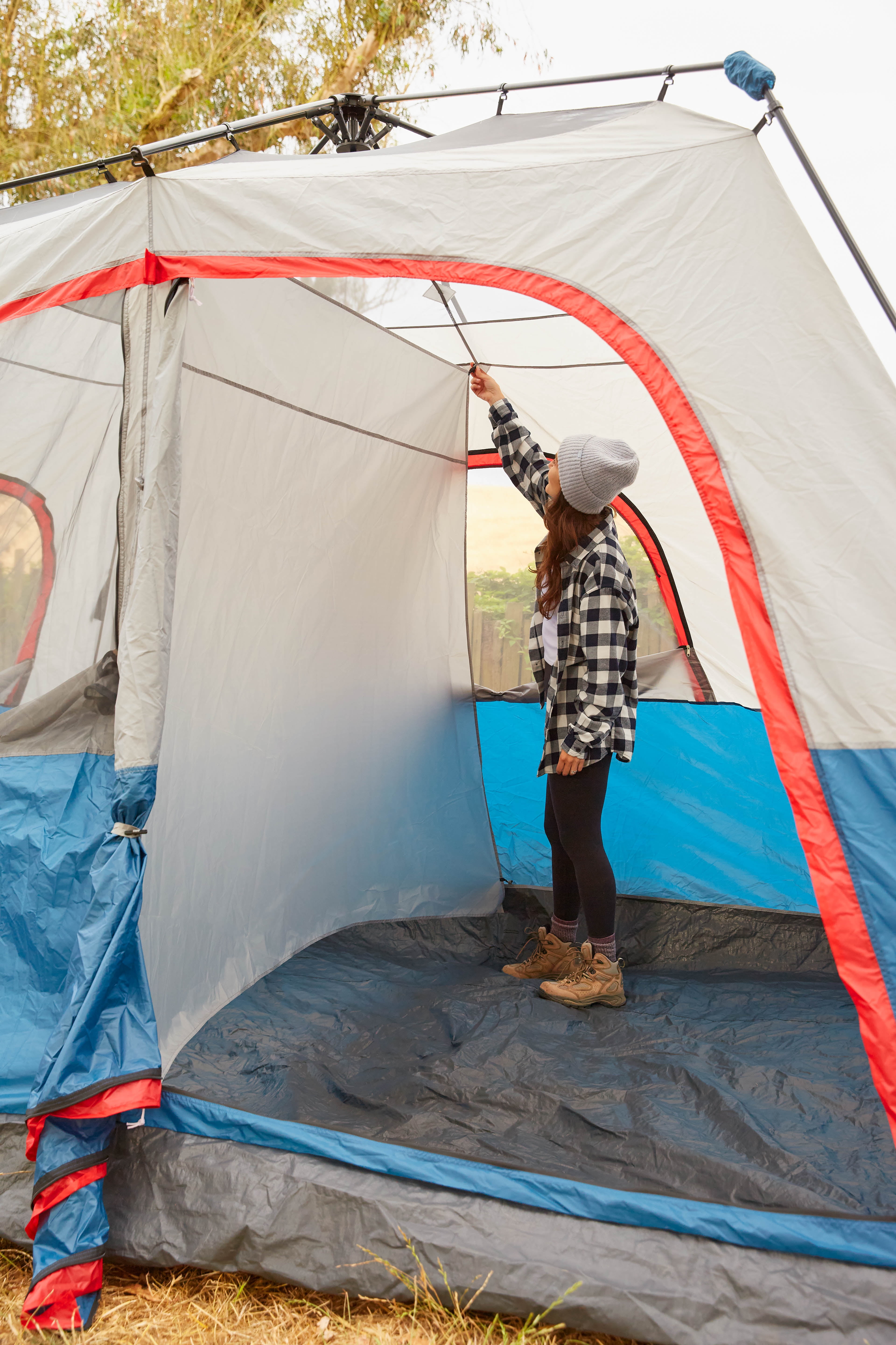 – SLEEPS 8 PEOPLE: The 13 x 9-foot cabin tent has ample room with a peak height of 6’8″ that sleeps 9 so you can fit your whole crew inside; Enough space for two queen airbeds to give everyone a comfortable night’s rest – INSTANT SETUP: OmniCore’s Instant Hub Technology ensures a quick 60-second setup – PLENTY OF VENTILATION: four HUGE window’s adorn each wall and the easy access door with mesh panel makes the tent nice and airy when the weather gets hot! – ROOM DIVIDER: Included room divider creates a two room tent with each room enough for a queen mattress