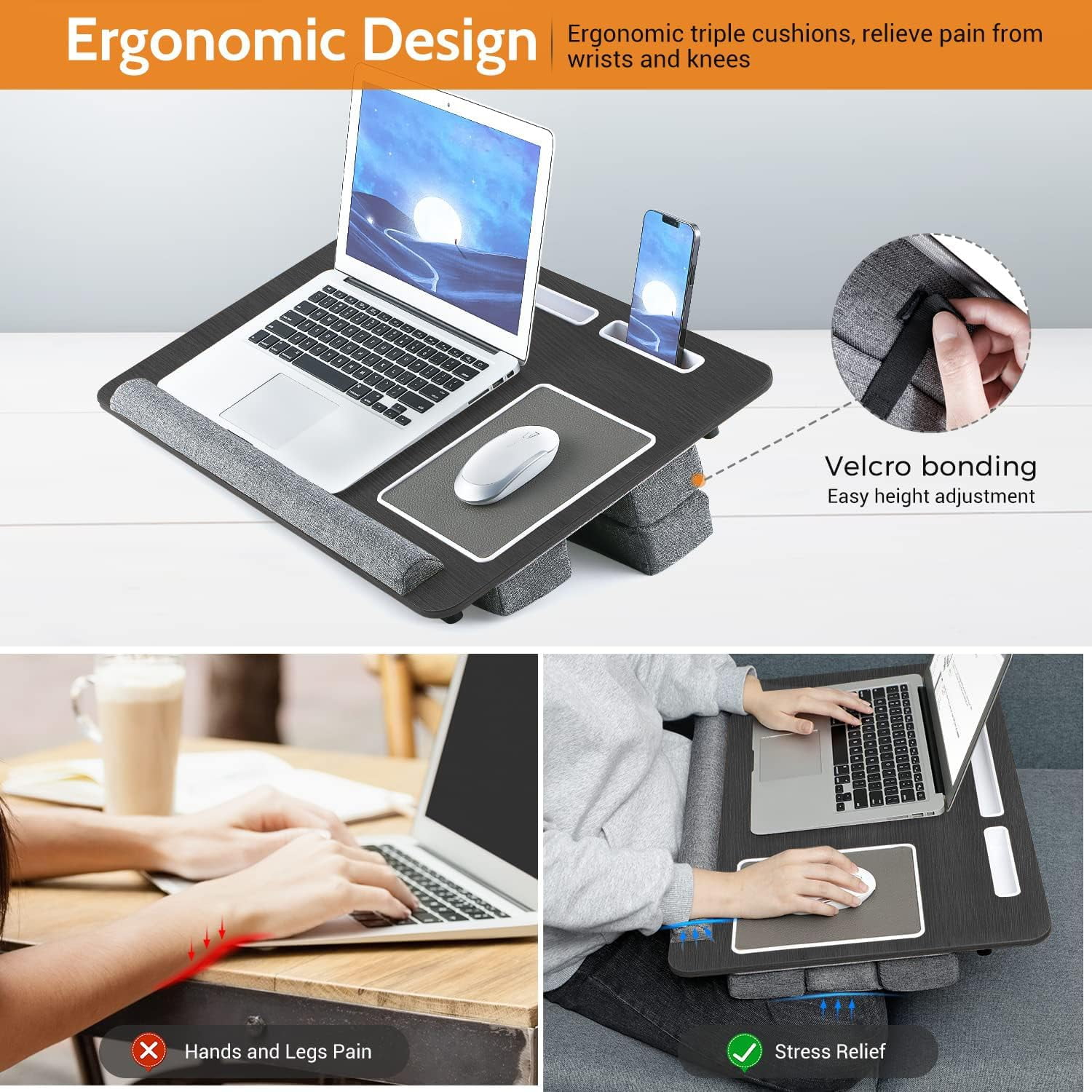 Omumuo Lap Desk with Adjustable Dual Cushion, 23.5″ x 15.75″, Black