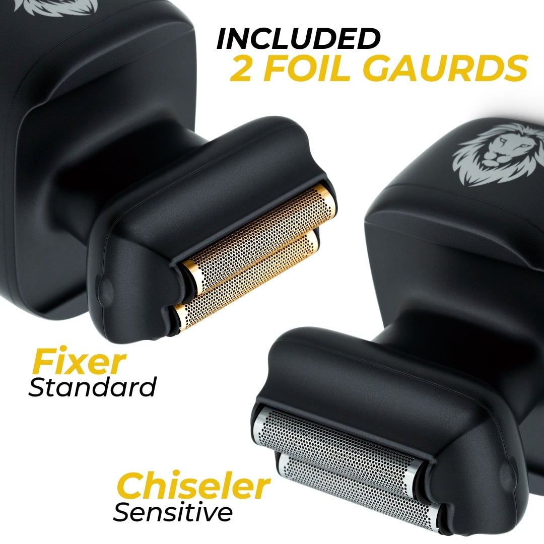 We took our face shaving game to the next level as we continue to innovate the shaving industry. The One Lion PRO face shaver has been derived from the highest grade materials to make the trouble of lining up your beard and sharpening your facial hair or fully face shaving a chore of the past. The new step foil design allows you the freedom to use a single or double for an efficient shaving experience. Tilt the shaver and use a single blade (Top foil) to shave tight spaces, or to precisely shave sharp lines. Tilt the shaver a little more to use both blades (both foils touching your skin) at the same time for a smooth, efficient shave over a wider area. Achieve a new level of freedom and efficiency with each shave. Shape your beard however you like. Line up those sideburns. Reach anywhere with ease. Or just clean it up! The Step Foil does it all. One Lion Gold Pro elevates your grooming experience and assists in achieving your desired look effortlessly. The high quality Japanese Stainless Steel blades are the ideal choice for achieving a clean shave without the risk of nicks or cuts on your skin. Our unique design of the blades ensures that your skin does not come into direct contact with the cutting edge, thereby minimizing any potential for abrasions or injuries. Therefore, take pleasure in a seamless shaving experience and a perfectly smooth finish. Our One Lion PRO face shaver fits like a glove in your hand with the same great patented Skull Shaver handle design that our customers love. The design allows for different hand grips. Holding the indented ribs or use the unique between finger grip to let you feel as you shave. Know exactly when your shaver should be charged. The integrated LED illuminated LCD display clearly shows the battery level in percentages to make the daily use of your shaver even more practical. The performance of the shaver remains steadily strong until fully discharged. The One Lion PRO Face Shaver is IPX5 water resistant so you can shave in the shower (please do not submerge the shaver and use the plug cover for extra safety). Or, if you are on the go, shave dry without water or cream. The choice is yours with shining results either way. The One Lion Gold PRO is ultimately designed to assist in your unique grooming routine. The foil comes off in a snap. Simply pull the tabs on the sides to open the blade. Tap out any hair, rinse, snap it back and you’re done. Optionally use our Platinum Rinse Stand by filling the rinse stand with room temperature water, dipping in the blades, and turn the power on to empty the captured hair into the rinse stand. The One Lion PRO comes with two different foils: one for normal skin and one for sensitive skin. Use the one that suits you best. Each foil cover flexes independently to ensure your face is contoured no matter the size of your cheek bones or facial features. These features allow for maximum comfort when face shaving with the One Lion Face Shaver. One Lion Gold PRO electric shaver is equipped with powerful integrated lithium-ion battery (1400 mAh) which allows quick charging and 90 minutes of cordless use. This gives you the freedom to shave anywhere and anytime at your convenience. This also makes it a must-have for travelers who often need a quick shave on the go. The shaver also perfectly works in plug and shave mode; a great alternative in case you forgot to charge it.