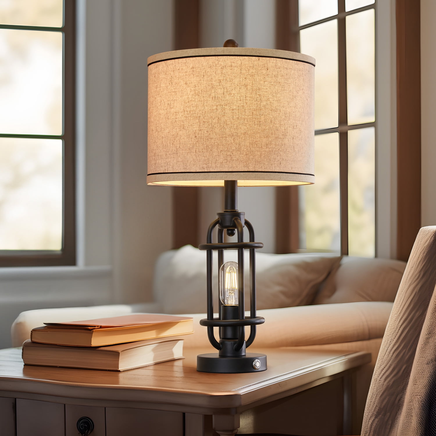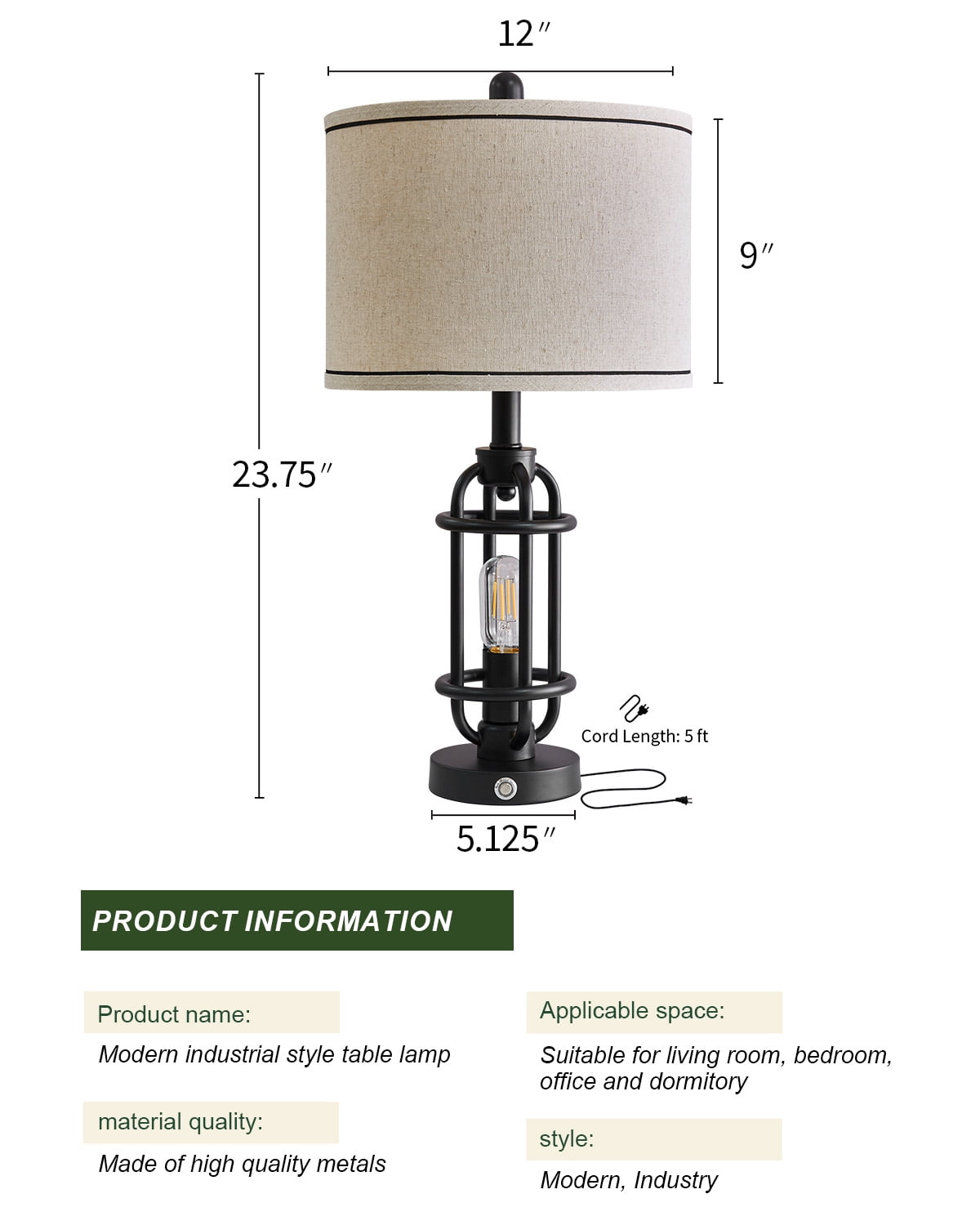 Modern Table Lamp Set of 2 : Made of black metal lamp body and linen lamp shade. Industrial style table lamps are designed with geometric frame lamp body and round lamp base, it highlights the elegant and simple, fashion and modern style, setting off a warm and cozy atmosphere for your living room, bedroom or office Table Lamps Size(After Assembly): table lamp is 23.75 inch high overall. Round lamp base is 5.125 inch wide at bottom. Drum lamp shade is 12 inch across the top, 12 inch across the bottom, 9 inch high overall. This industrial desk lamp is perfect for any tables or nightstand on your bedroom or living room.(The lamp shade and B&C rings need to be assembled) Touch Control Table Lamps for Living Room : Each table lamp is equipped with a nice and sturdy lamp shade, and bulit-in sensitive sensors switch in the lamp base, you can tap touch control switch to adjust 3 level brightness of the dimmable bulb in the lamp body and turn it on/off. It can make you get rid of the trouble of fumbling the switch in the dark. When you turn on the lamp and adjust the brightness, the light will emanate from the lamp shade, present an elegant and charming look, add light and stylish to your room. 3 Way dimmable table lamp with shade is perfect decor for bedroom, living room, entrance hall, or in coffee table, dining room, etc. Table Lamps with USB Port for Bedroom : Total include 4 LED bulbs. Each table lamp has rotary switch (turn on/off the top bulb), touch control switch(turn on/off the bulb in lamp body) and two USB charging ports set in the base, it’s very convenient for you to turn on/off the lamp and you can easily charge your mobile phone, tablet or other electronic devices, perfect for lighting, working or reading. Charging function still work whether the lamp is on or off. The cord and plug of each table lamp is UL listed, it’s nationally recognized for its standard of safety. Black industrial table lamp is ideal for living room, bedroom, dining room, office, study, etc. Easy Assembly: Modern table lamp set of 2 can be used for bedroom or living room lighting. The lampshade and B&C rings, 4 pcs bulbs, lamp body, harp and finial are need to be assembled, you can follow the assembly instruction to finish it, you will find it’s fun to assemble these table lamps. We are 100% dedicated to your complete satisfaction, so all table lamps come with 12 months warranty.