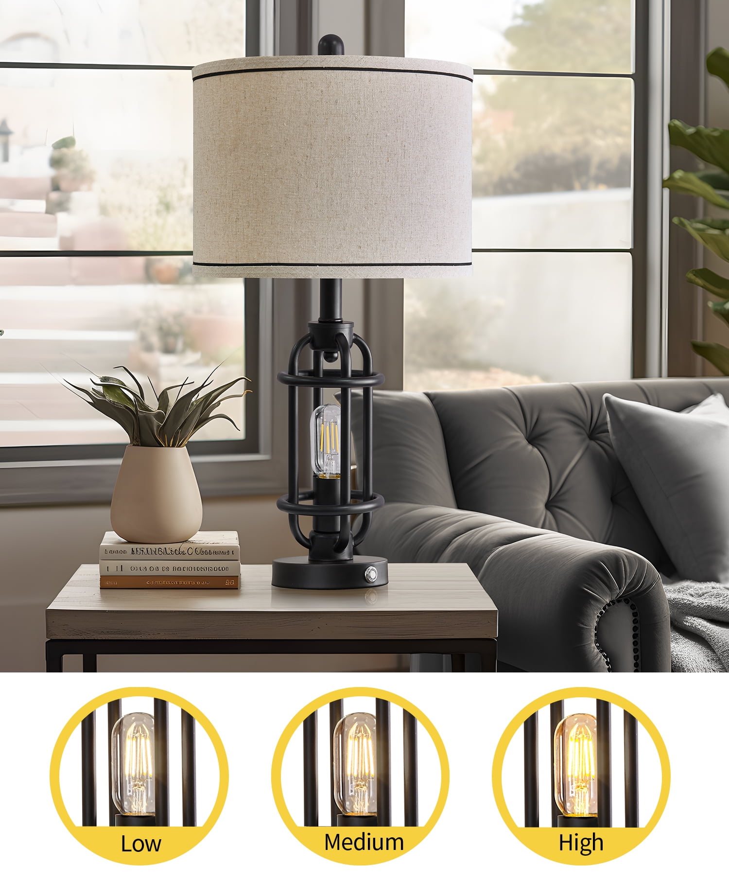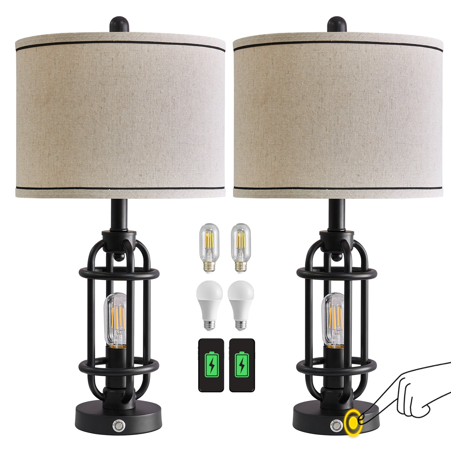 Metal table lamps can match many furniture styles such as Farmhouse style, Antique style, Mid century style, Modern style, European style, Simple&Minimalist style, Industrial style, Mediterranean style, etc. Modern Table Lamps Set of 2 for Living Room: Design: Consist of black metal lamp body and black beige drum linen lamp shade Control Type: Touch Control (on the lamp base); Rotary Switch(on the bulb socket) USB Ports: Each lamp has two USB charging ports on the lamp base. Light Bulb: With standard E26 bulb socket, total include two led bulbs(5W, 110V), two dimmable led bulbs(4W, 120V). Please check whether the lamp specifications meet your requirements before purchasing. Package: 2 x table lamp (Lamp parts: 2 pcs lamp body, 4 pcs bulbs, 2 pcs lamp shades, 2 pcs B Rings, 2 pcs C Rings, 2 pcs harps, 2 pcs finials) 1 x Assembly Instruction & Manual Warm tips: After you open the lamp package, please make sure you received all lamps parts, and please check cardboard on the back of the foam case where we placed lamp parts. If you have any questions, please feel free to contact us, we will reply you as soon as possible