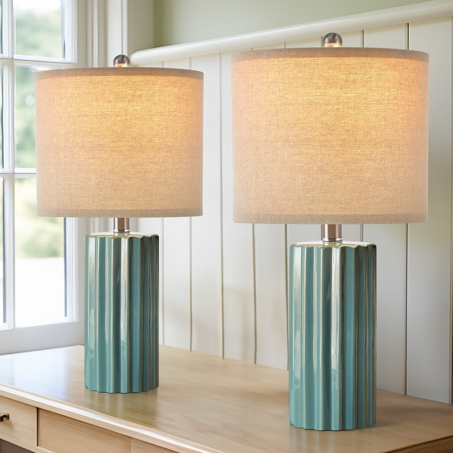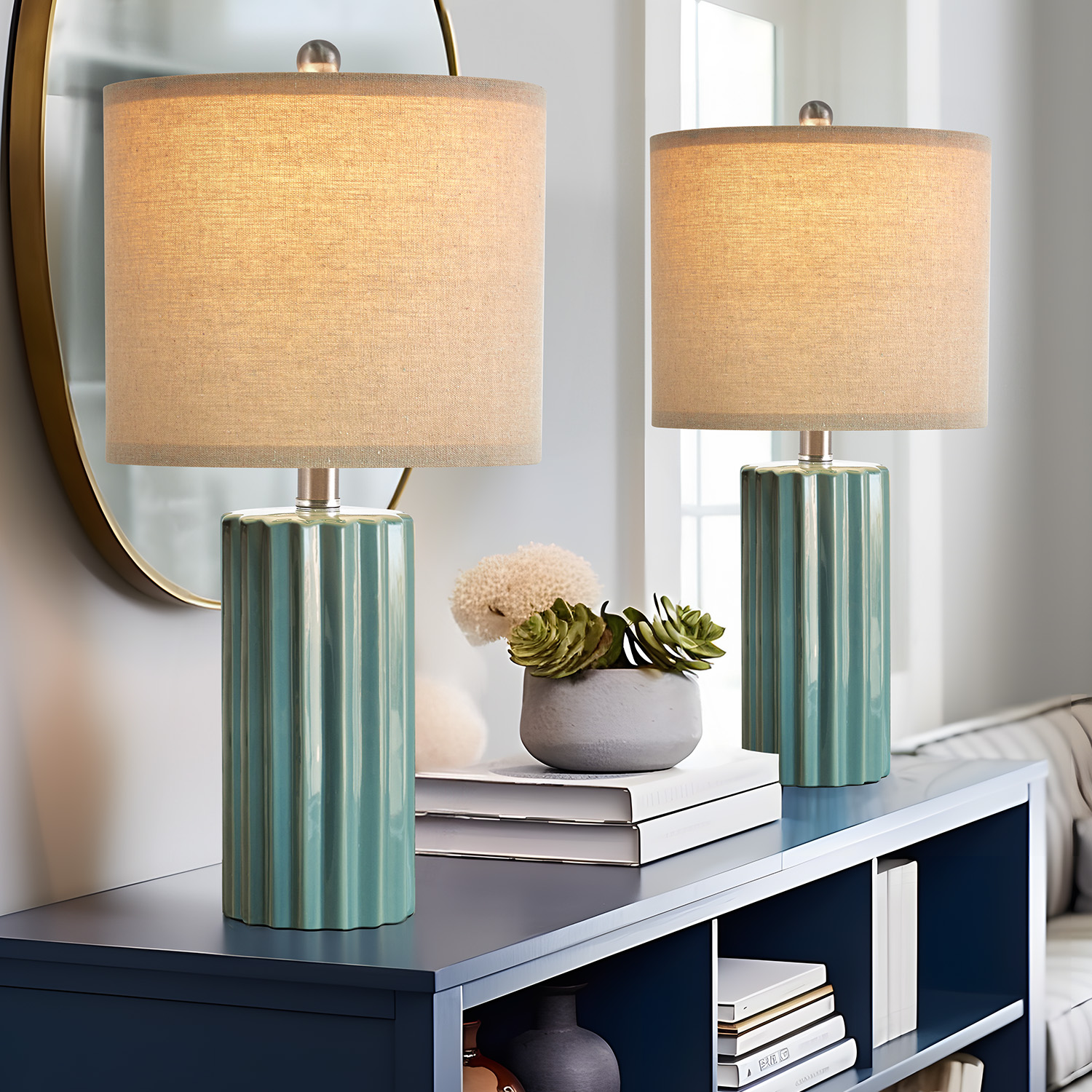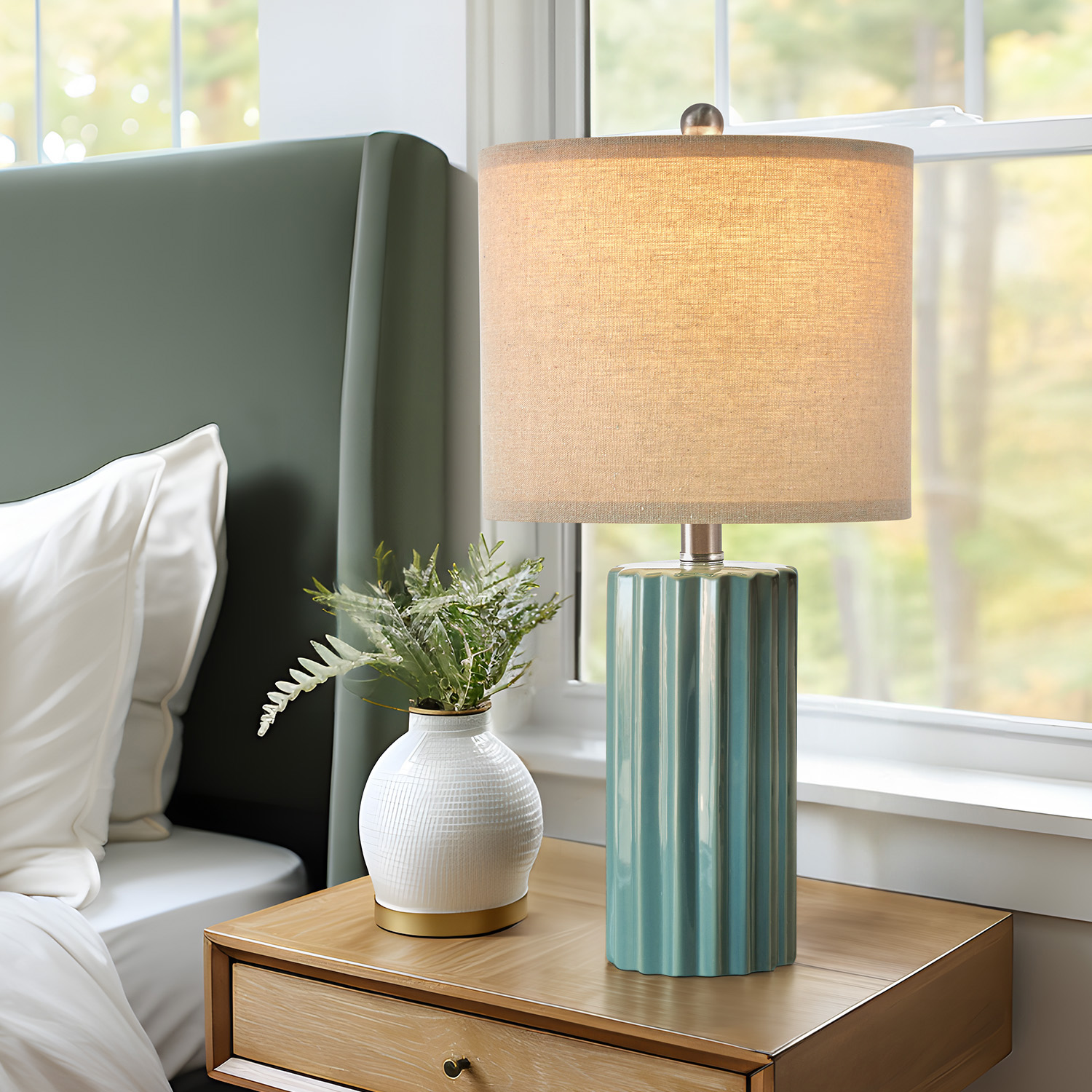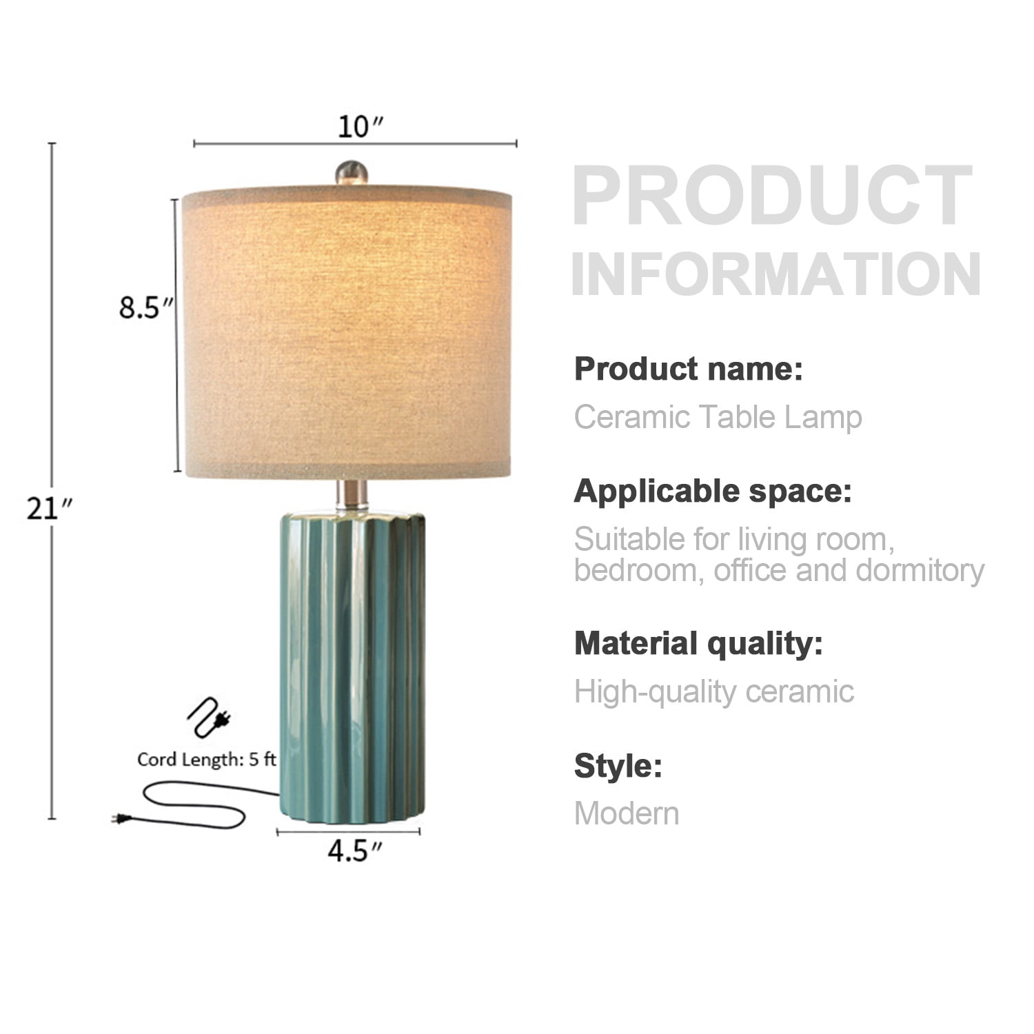Modern Table Lamps: This set of 2 nightstand lamps features high-quality ceramic lamp bodies and linen shades, highlights the simple and modern style. The unique design of these lamps makes them the perfect decorative addition to your home, illuminating your room with style. They are suitable for various rooms including the living room, bedroom, foyer, dorm, dining room, office, study, and any other room of your choice. Ceramic Table Lamps Features: This bedroom lamp features a sturdy shade made of natural linen fabric with two metal rings for added stability. The beige linen fabric shade softens bright light, protecting our eyes and creating an elegant and charming look. It is perfect for creating a warm and cozy atmosphere in your living room or bedroom. Table Lamps Size(After Assembly): The total height of the table lamp is 21 inches. The round lamp base measures 4.5 inches in width at the bottom. The lamp shade has a diameter of 10 inches at the top, 10 inches at the bottom, and an overall height of 8.5 inches. This perfect size makes it suitable for various settings such as end tables, corner tables, office desks, nightstands, coffee tables, and dining tables. It will add a dazzling touch to any room. Convenient Nightstand Lamps : Rotary on/off switch on the bulb socket is convenient to turn on/off the lamp without having to get up and press a wall switch, it fits for any tables or nightstands on your bedroom or living room. The standard E26 bulb socket is compatible with all kinds of incandescent bulbs(up to 60W), Edison, LED and CFL. We always take product quality and safety as the first purpose, to ensure that every lamp is in line with International quality and safety standards. you can safely choose and buy. (Bulbs not included) Customer Satisfaction & Warranty: We offer 2 years warranty on all table lamps. Should you encounter any problems, please feel free to contact us for support. Our team is dedicated to solving any problems and ensuring your satisfaction. We strive to provide the best solutions and support to meet your needs.