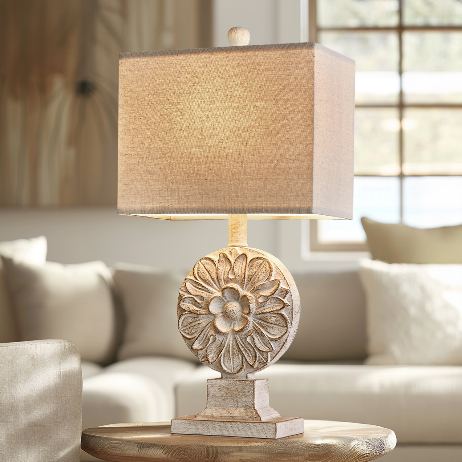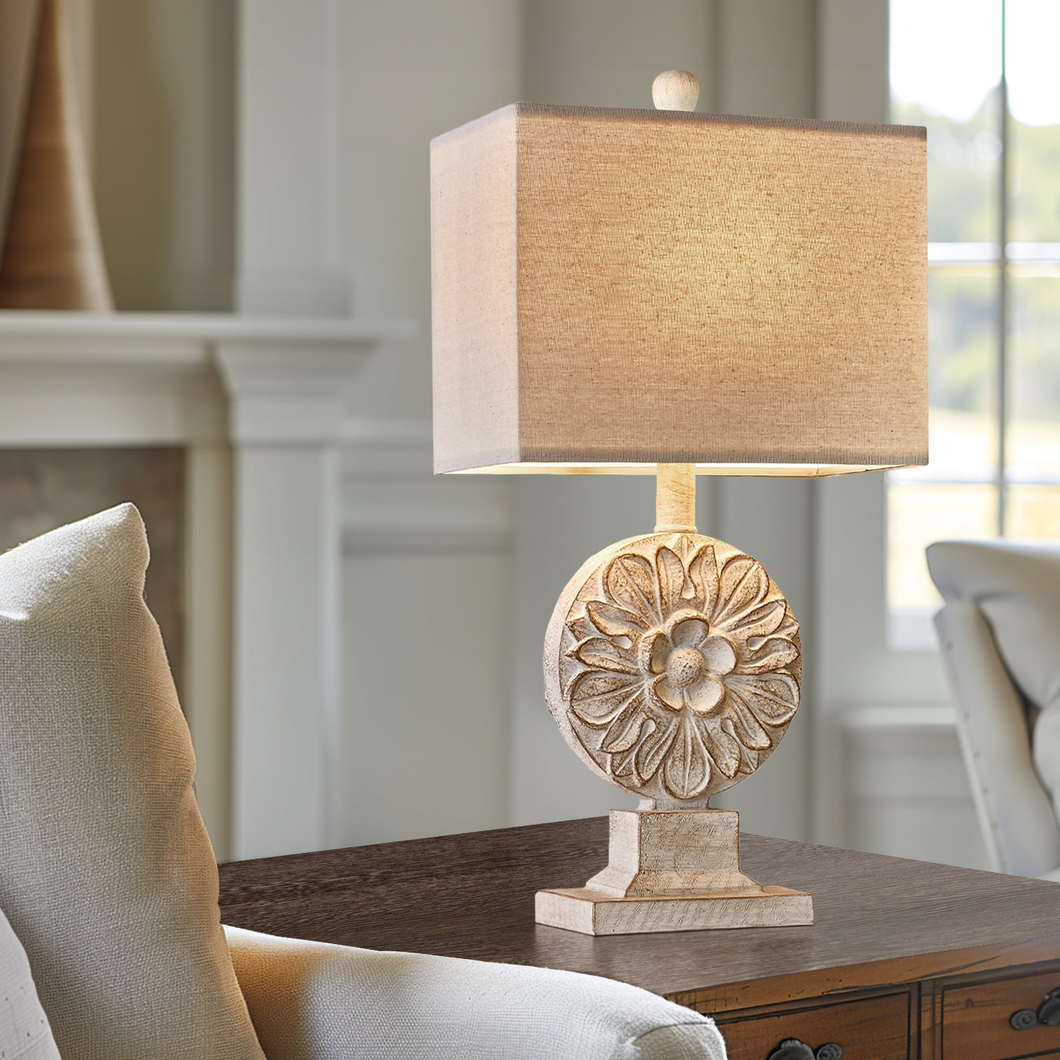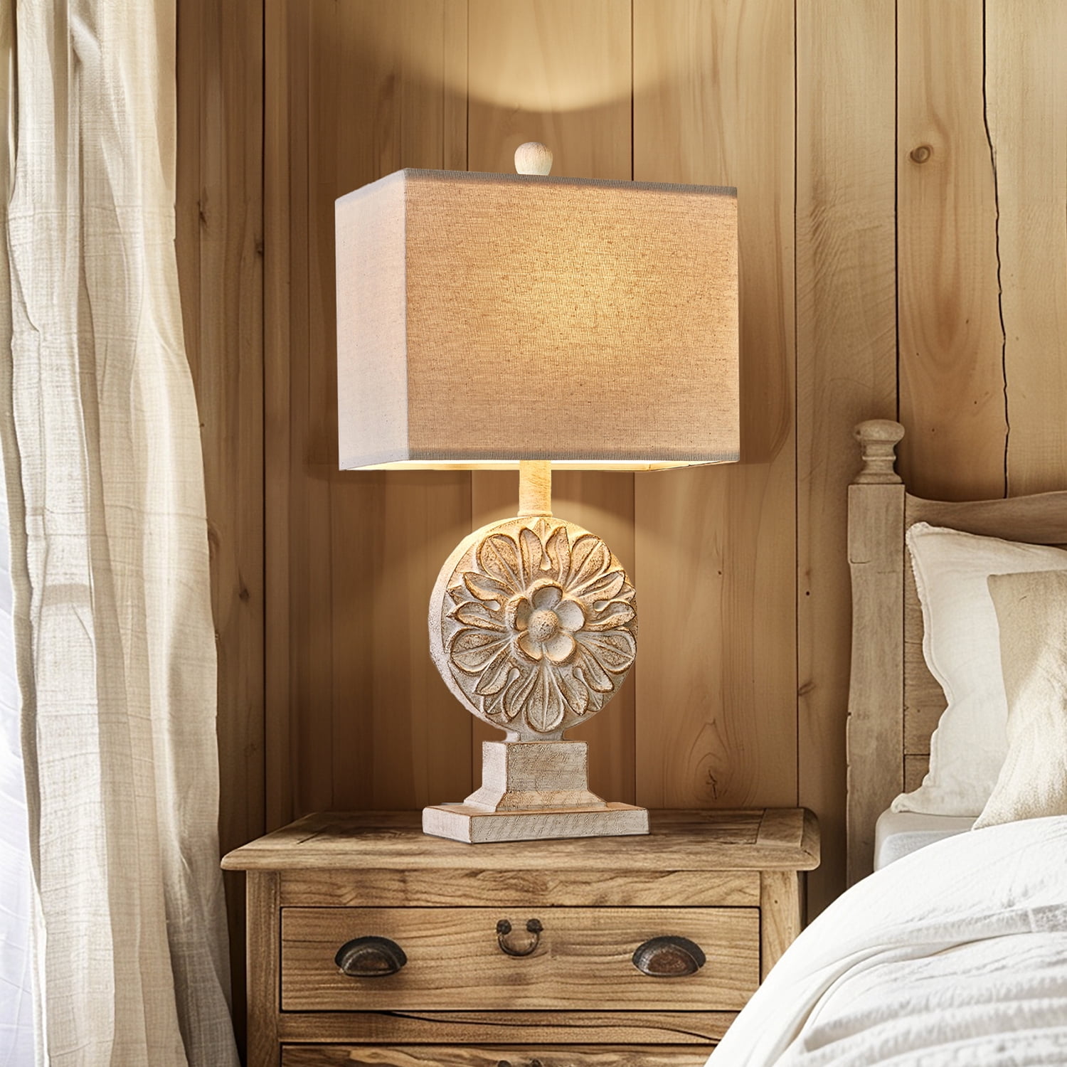 Retro Table Lamps: This set of 2 nightstand lamps features high-quality resin lamp bodies and square linen shades, highlights the simple and framhouse style. The unique design of these lamps makes them the perfect decorative addition to your home, illuminating your room with style. They are suitable for various rooms including the living room, bedroom, foyer, dorm, dining room, office, study, and any other room of your choice. Resin Table Lamps Features: This bedroom lamp features a sturdy square shade made of natural linen fabric with two metal rings for added stability. The beige linen fabric shade softens bright light, protecting our eyes and creating an elegant and charming look. It is perfect for creating a warm and cozy atmosphere in your living room or bedroom. Table Lamps Size(After Assembly): The total height of the table lamp is 21 inches. The rectangular lamp base is 6 inches long at the bottom and 4 inches wide. The top of the square shade is 11 inches long and 7 inches wide, for an overall height of 8.5 inches.This perfect size makes it suitable for various settings such as end tables, corner tables, office desks, nightstands, coffee tables, and dining tables. It will add a dazzling touch to any room. Convenient Nightstand Lamps : Rotary on/off switch on the bulb socket is convenient to turn on/off the lamp without having to get up and press a wall switch, it fits for any tables or nightstands on your bedroom or living room. The standard E26 bulb socket is compatible with all kinds of incandescent bulbs(up to 60W), Edison, LED and CFL. We always take product quality and safety as the first purpose, to ensure that every lamp is in line with International quality and safety standards. you can safely choose and buy. (Bulbs not included) Customer Satisfaction & Warranty: We offer 2 years warranty on all table lamps. Should you encounter any problems, please feel free to contact us for support. Our team is dedicated to solving any problems and ensuring your satisfaction. We strive to provide the best solutions and support to meet your needs. Product Parameters Style: Farmhouse Color: White Product Dimensions: 11.00 x 7.00 x 21.00 Inches Material: Resin Lamp Type: Table Lamp Room Type: Bedroom,Living Room,Office Shade Color: Beige Shade Material: Fabric Power Source: Corded Electric Switch Type: Rotary Switch