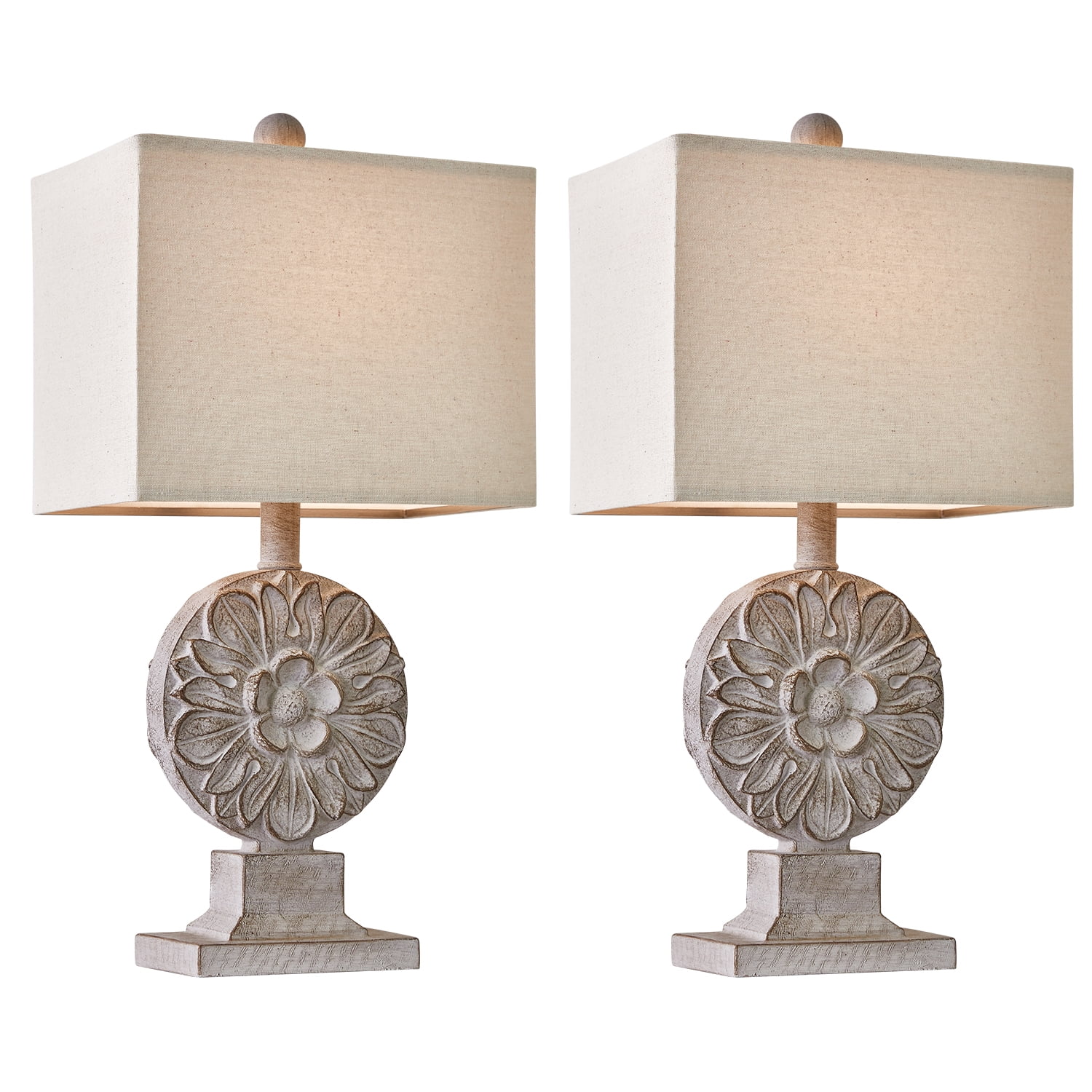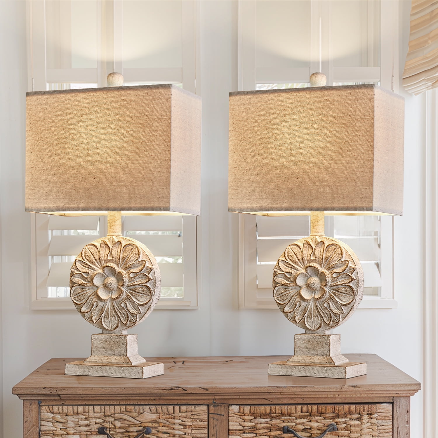 Oneach Resin Rustic Table Lamp Set of 2 for Living Room Bedroom 21″ Farmhouse Retro Wash White Nightstand Bedside Lamps with Lamp Shades