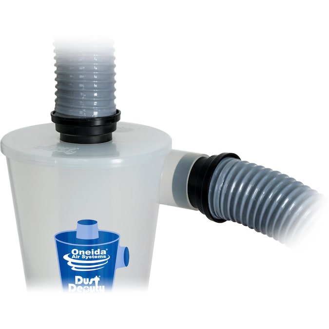 Optimized for the more powerful wet/dry vacuums that have become standard over the years, the Dust Deputy® 2.5 Cyclone Separator from Oneida Air Systems is an effective and affordable dust control solution that uses centrifugal force to separate and remove up to 99.9% of dust and debris from the airstream before it reaches your vacuum, eliminating clogged filters and suction loss while signficantly extending the life of your vac’s filter.