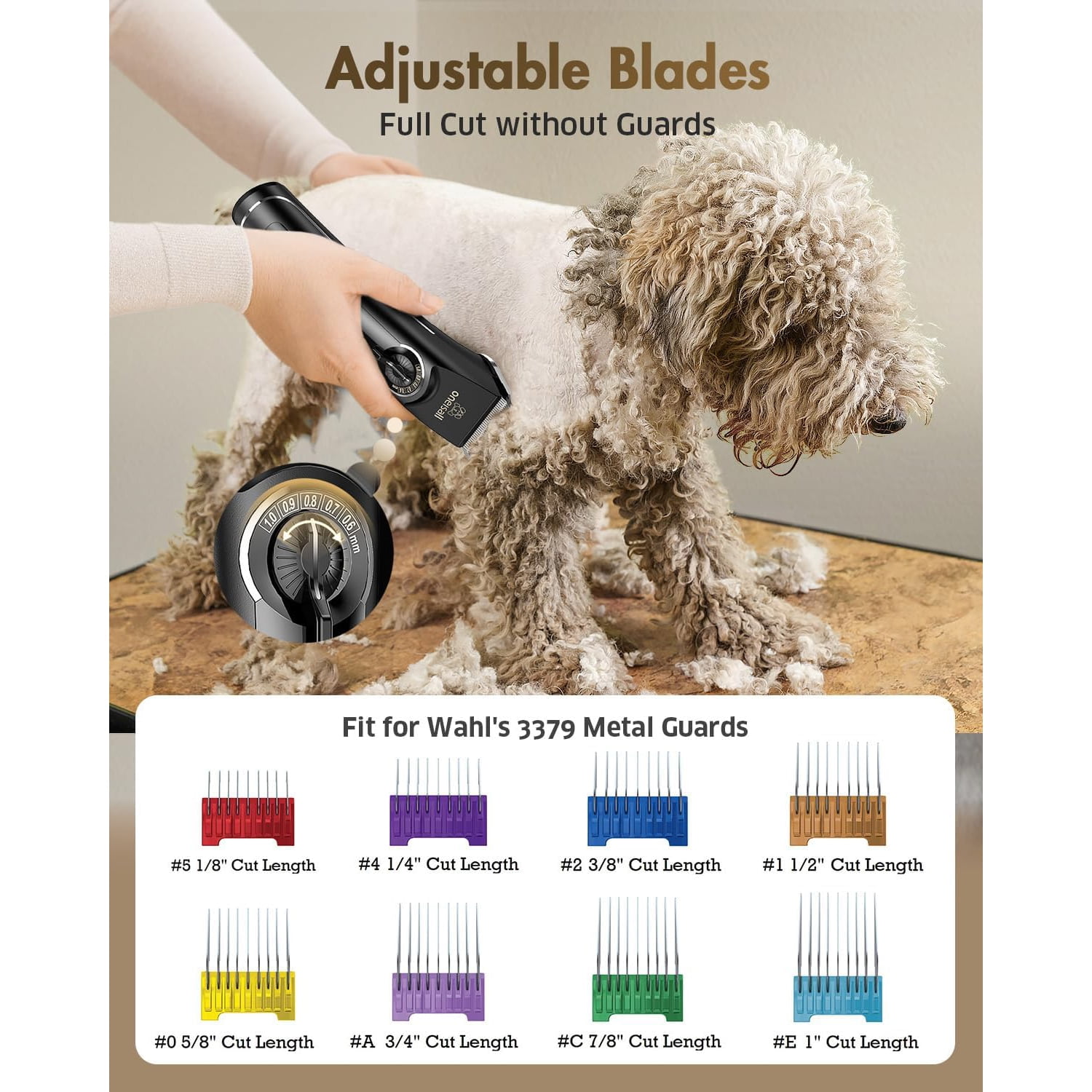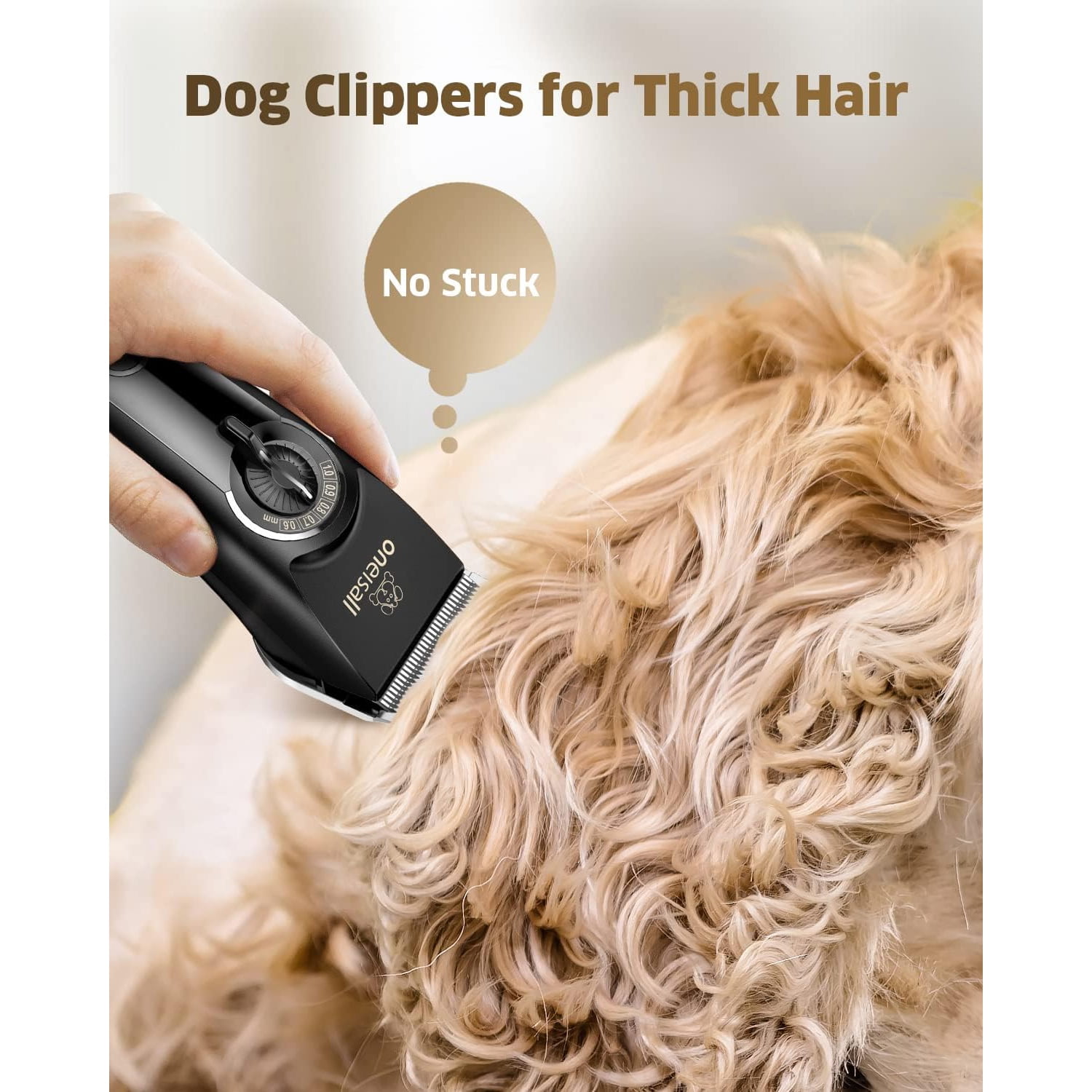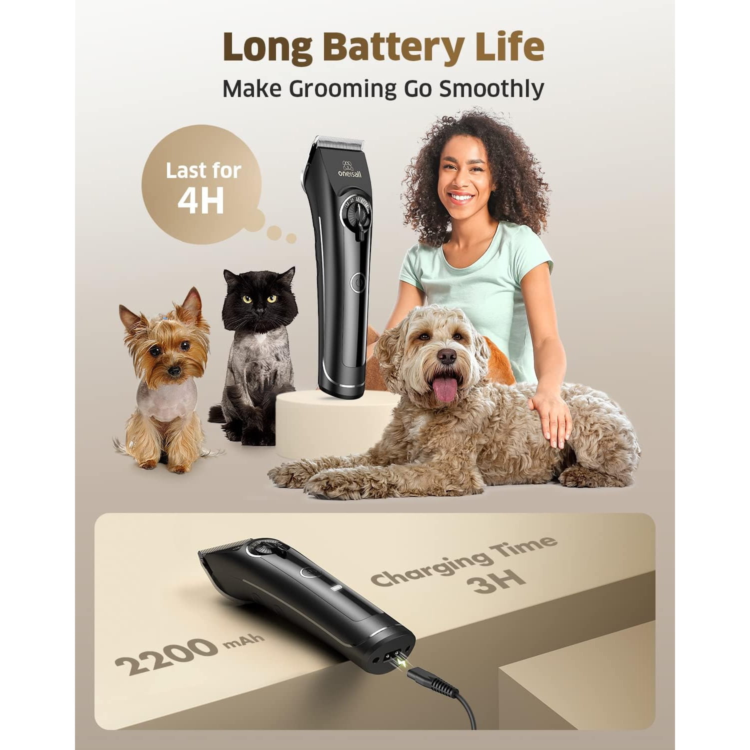 Oneisall Dog Clippers for Grooming Description: [Professional Dog Grooming Kit] – Oneisall dog grooming kit includes a dog clipper, four guard combs (3mm, 6mm, 9mm, 12mm), a cleaning brush, 1 x oil bottle (5ml), a USB charger, and an instruction manual. [Heavy-Duty Clippers with Precision Blade] – Tackle your pet’s thick fur effortlessly with Oneisall heavy-duty clippers and sharp stainless steel blades. The precision design ensures smooth grooming, ideal for dogs with dense coats. [Powerful Motor for Efficient Cutting] – Experience a stable and heat-free cutting process with Oneisall powerful 6500 RPM motor. It ensures a swift and precise trim without pet hair snagging, providing top-notch grooming for your furry friend. [Ultra-Low Noise Operation] – Quiet operation Oneisall dog grooming clippers, with noise levels as low as 50 decibels, and won’t scare your pet. Perfect for sensitive pets, ensuring a stress-free grooming experience for cats and dogs. [Adjustable & Detachable Blades] – Oneisall dog clippers for grooming can be customized pet grooming with adjustable blade settings for different fur lengths. Detachable blades make underwater cleaning a breeze, promoting convenience and hygiene. [Long-Lasting Battery Life] – Oneisall pet grooming clippers have a 2200mAh lithium battery which offers extended usage, with a quick 3-hour charge providing up to 4 hours of continuous pet grooming. A durable solution for prolonged pet grooming sessions. [LCD Display for Precision Control] – Oneisall pet clippers with an LCD screen display light indicators that are in charging mode and working mode. Monitor battery levels and remaining runtime, ensuring efficient pet grooming management. Oneisall Dog Clippers for Grooming Specification: Brand: Oneisall Model: CP-9050 Material: Stainless Steel, ABS Color: Black Product Size: 1.8 x 1.8 x 7 inches Packing Size: 8.50 x 7.80 x 2.56 inches Weight: 1.5 Ib Oneisall Dog Clippers for Grooming Package Included: 1 x Dog Clipper 4 x Guide Combs 1 x Oil Bottle(5ml) 1 x Cleaning Brush 1 x USB Charger 1 x Instructions
