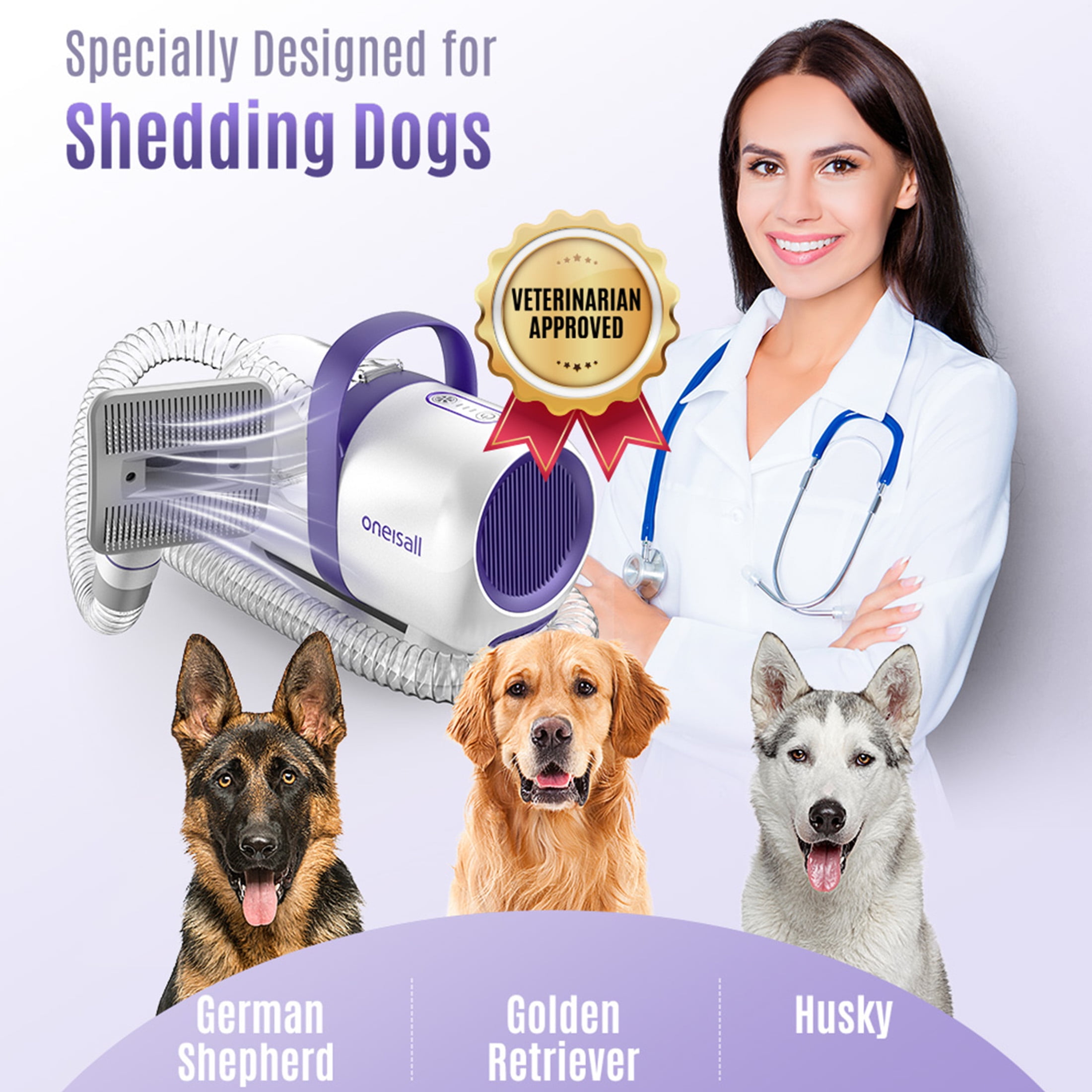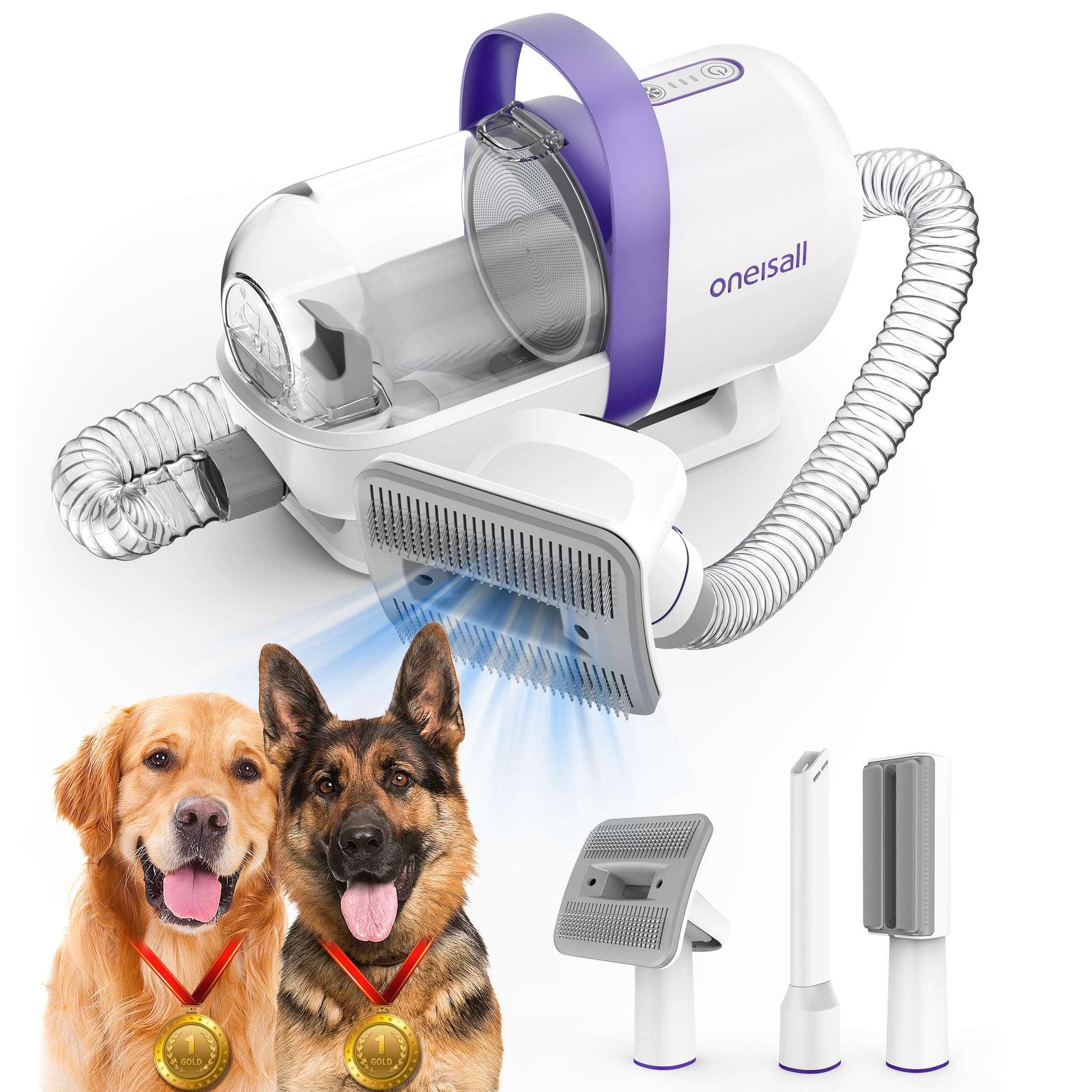 Dog Grooming Vacuum Description: [5 In 1 Pet Grooming Set] – Oneisall dog grooming kit includes a vacuum cleaner and comes with 4 pet grooming tools, such as a slicker brush, deshedding brush, long nozzle vacuum, and clothes brush. The slicker brush removes and loosens the hair, leaving your pet with a soft, smooth, healthy coat. The deshedding brush effectively removes tangled or stuck hair. The nozzle head and cleaning brush are great for collecting pet hair from rugs, floors, couches, and clothing. [Vacuum Suction 99% Pet Hair] – Oneisall pet grooming kit has a vacuum function and has 3 suction levels to choose from, which can collect 99.9% of hair and dust into the 1.5L dust cup, which can keep your home clean, and there’s no more tangled hair and no more piles of fur spreading all over the house. [Low Noise & Pet Are Not Afraid] – The noise of Oneisall pet grooming vacuum is less than 60 decibels, which effectively protects the pet’s sensitive hearing, keeps the pet calm and relaxed during the grooming process, and also effectively collects hair into the powerful dust cup. [1.5L Large Capacity Dust Cup & Storage Bag] – Oneisall dog hair vacuum groomer comes with a detachable 1.5L dust cup, which is easy to empty and does not need to be emptied frequently during grooming. Also equipped with a professional storage bag for easy storage after each use, saving space. [Save Time and Budget & Creative Gift] – Oneisall dog vacuum for shedding grooming comes with everything you need to host a DIY salon day for your dog or cat, saving you the budget and time of monthly trips to the dog groomer. This is an ideal gift for friends, family, and companions with pets. [Suitable Pet Breeds] – Oneisall dog grooming vacuum for shedding is suitable for all breeds of dogs and cats. For example Collie, Husky, Golden Retriever, Poodle, Shih Tzu, Corgi, Labrador, Golden Poodle, etc., or Persian Cat, Siberian, Maine Coon, Ragdoll, etc. Dog Grooming Vacuum Specification: Brand: Oneisall Model: LM5 Material: ABS Color: Blue, Grey, Purple Batteries: Lithium Ion Battery (Included) Packing Size: 16.54 x 11.81 x 7.87 inches Weight: 8.05 Ib Dog Grooming Vacuum Package Included: 1 x Dog Grooming Vacuum 1 x Slicker Brush 1 x Deshedding Brush 1 x Long Nozzle Vacuum 1 x Clothes Brush 1 x Storage Bag