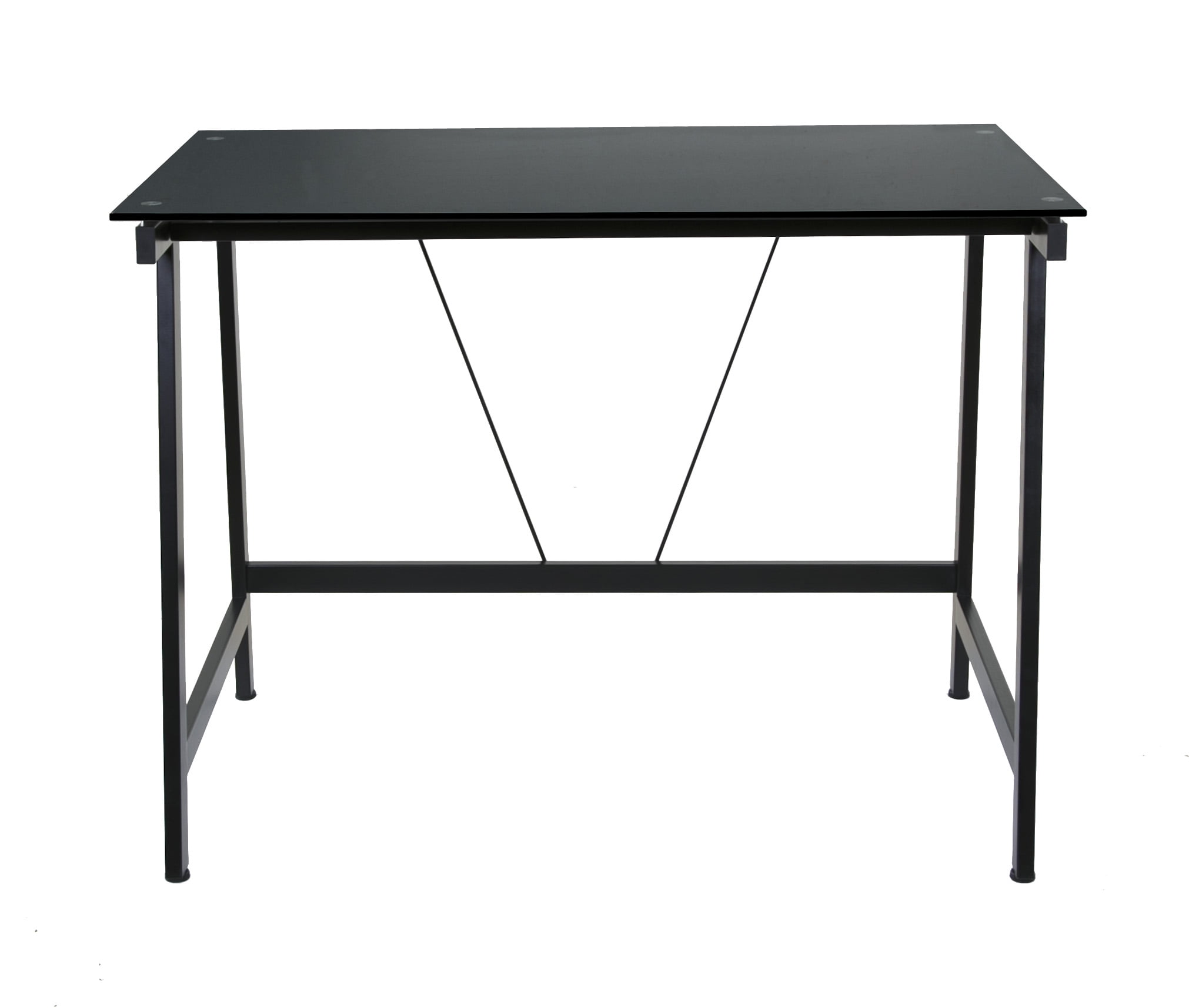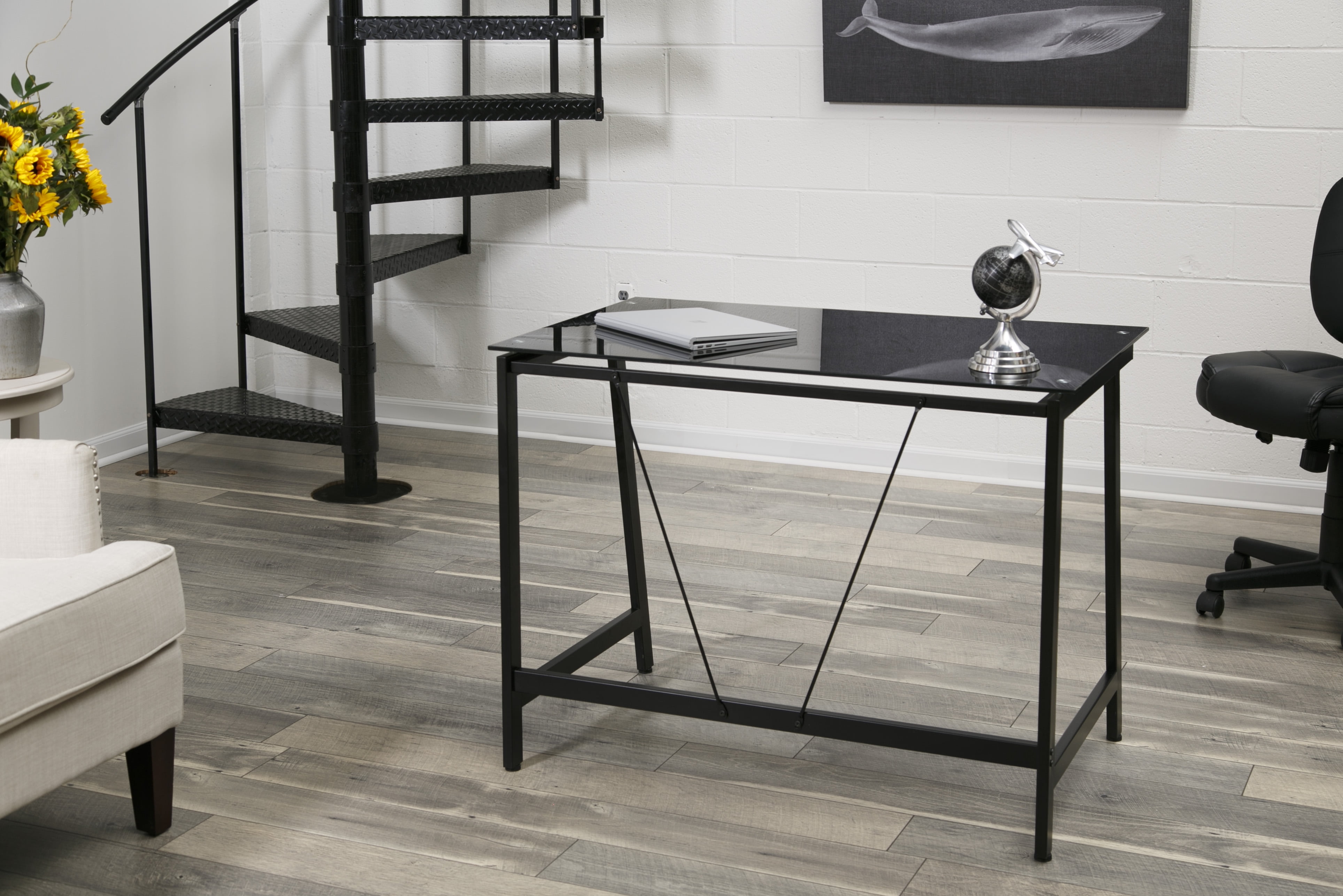 OneSpace 50-HD0105 Contemporary Glass Writing Desk, Steel Frame, Black