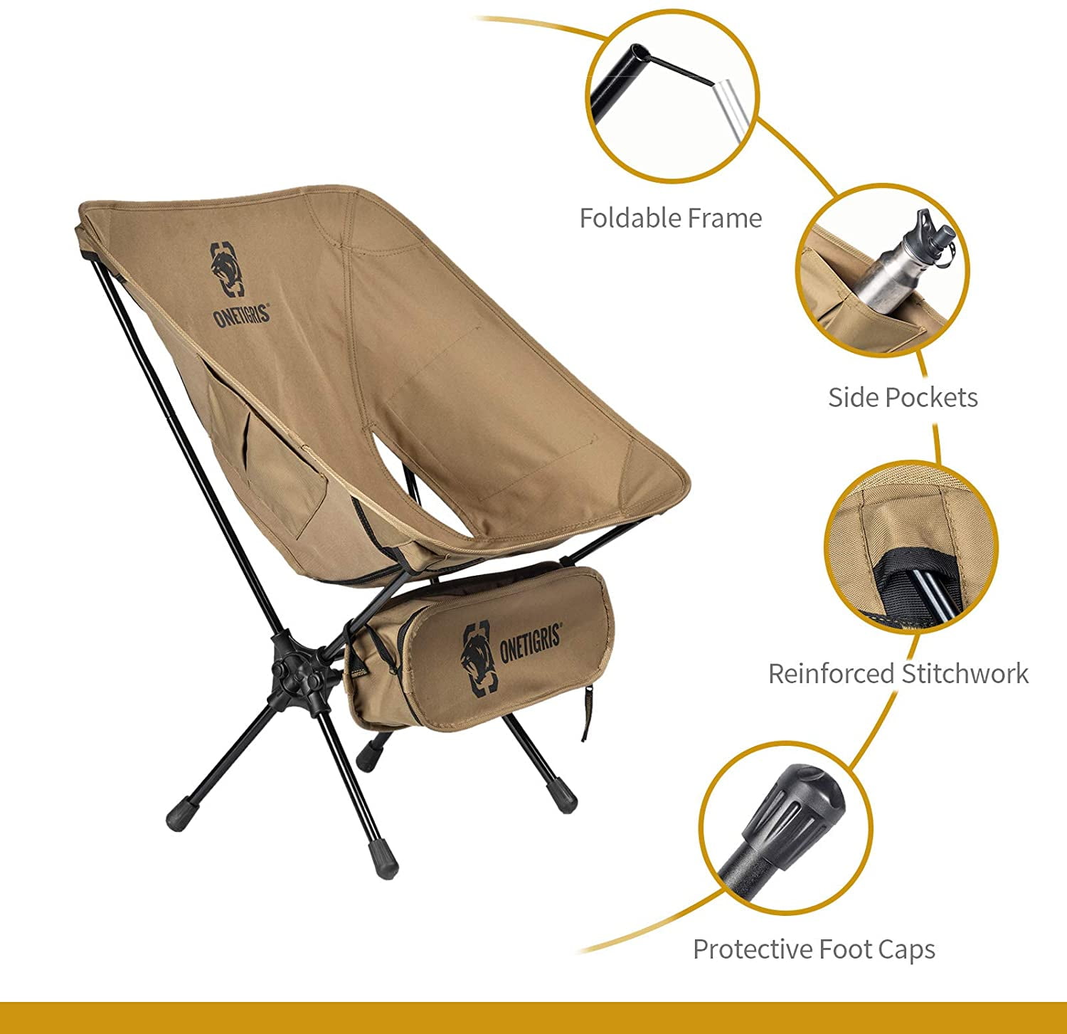 OneTigris Camping Chair Backpacking , 330 lbs Capacity, Heavy Duty Compact Portable Folding Chair for Camping Hiking Gardening Travel Beach Picnic Lightweight Adult OneTigris