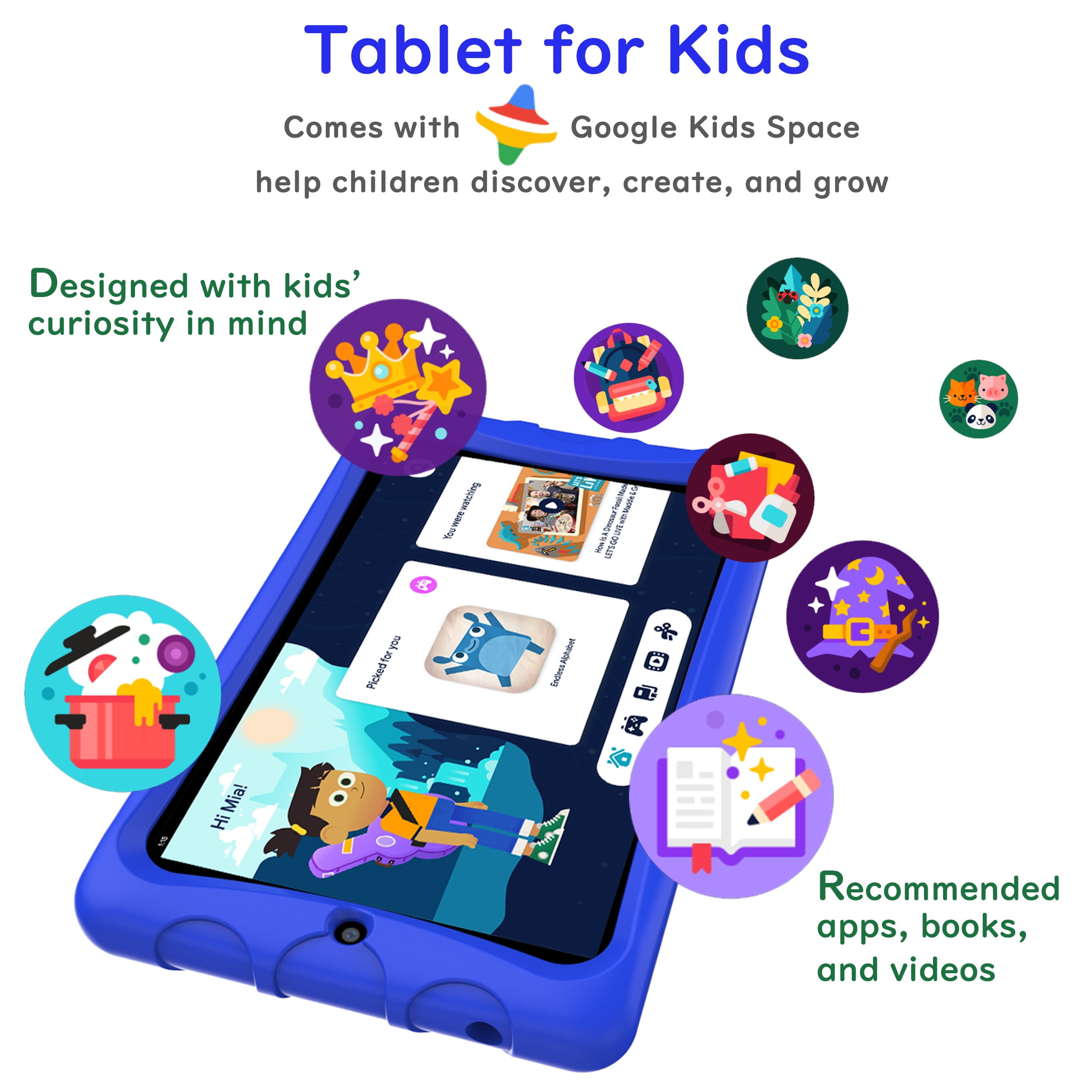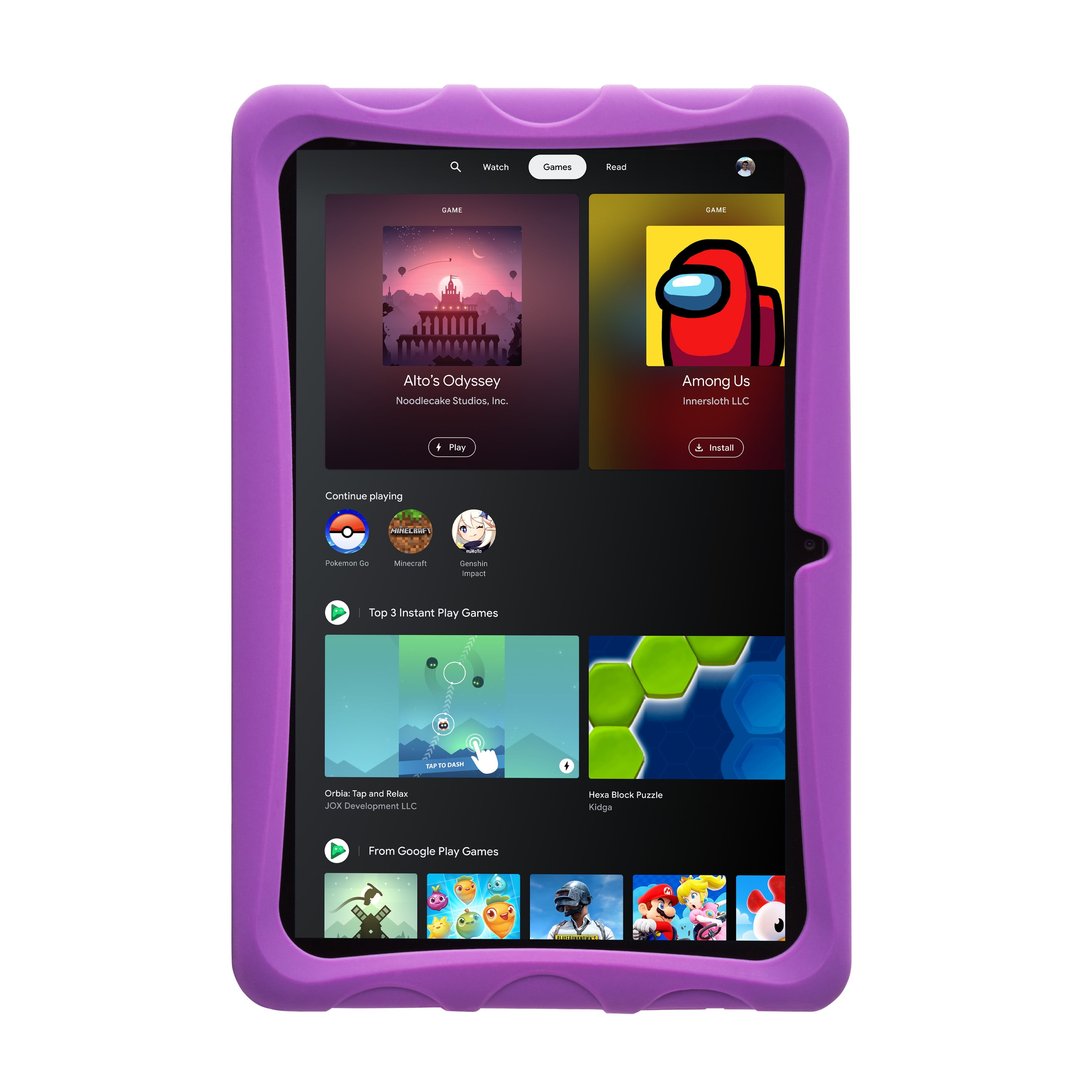 Android 12 (Go edition) 10.1″ 1280 x 800 resolution IPS LCD scratch-resistant touchscreen 2.0 GHz quad-core processor 2 GB RAM 2-year warranty 32 GB storage with memory card slot for storage expansion 7500mAh with 17 hours battery life 2 MP front-facing camera plus 2 MP rear-facing camera Comes with Google Kids Space, Entertainment Space, and Camera from Google apps Family Link parental controls from Google 3.5 mm headphone jack What’s in the Box? 1 tablet 10.1″, 1 AC adapter plus USB-C charging cable 3ft (91.4cm), 1 silicone case with kickstand, and 1 Quick Start Guide Technical Support: Call 1-888-391-5684 between 7am and 7pm PST Monday through Saturday or email [email protected] for assistance Google Kids Space requires a Google Account for your child. Parental controls require the Family Link app on a supported Android, Chromebook, or iOS device. Books and video content are not available in all regions. Video content is subject to availability of the YouTube Kids app. Books content requires the Google Play Books app. Availability of apps, books, and video content may change without notice. Google Assistant is not available in Google Kids Space.