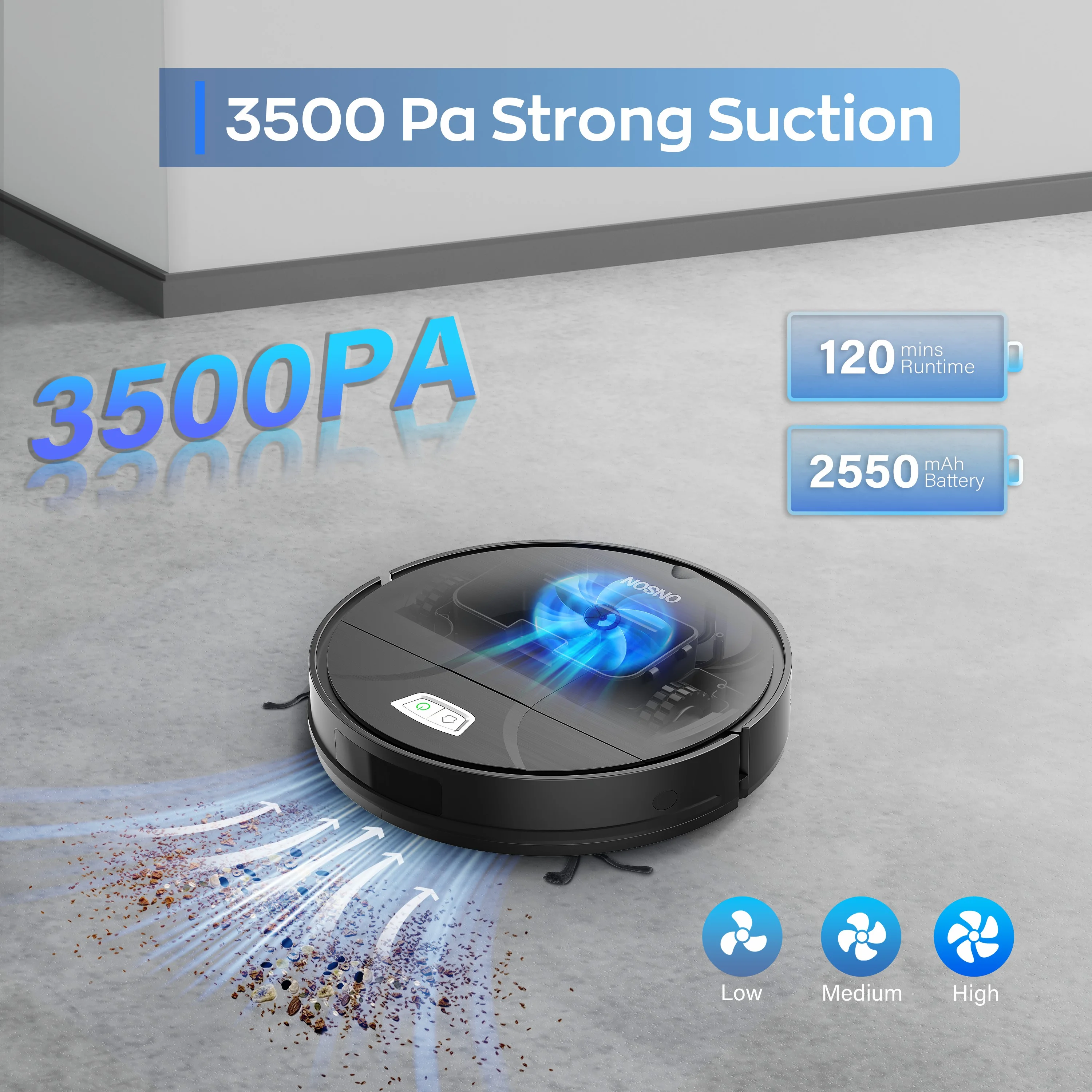 ONSON Robot Vacuum Cleaner, 3500Pa Vacuum Cleaner with Schedule, App//Wi-Fi/Alexa, Slim, Ideal for Hard Floor, Pet Hair