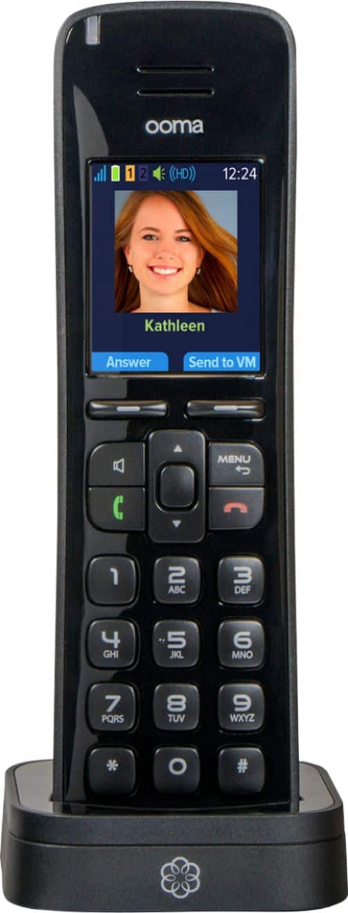 Each Ooma HD3 handset comes with cutting-edge HD voice clarity, a built-in speakerphone, a detailed call log, and a two-inch color screen. Sync your contacts from Facebook, LinkedIn, and more. Get an instant second line when you add the Ooma Premier service plan ($9.99/month).