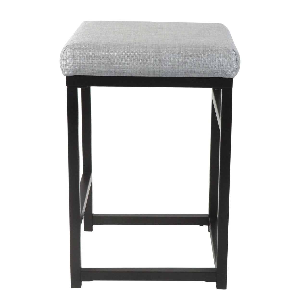 Open Back Metal Counter Stool with Fabric Upholstered Padded Seat Gray and Black – Saltoro Sherpi
