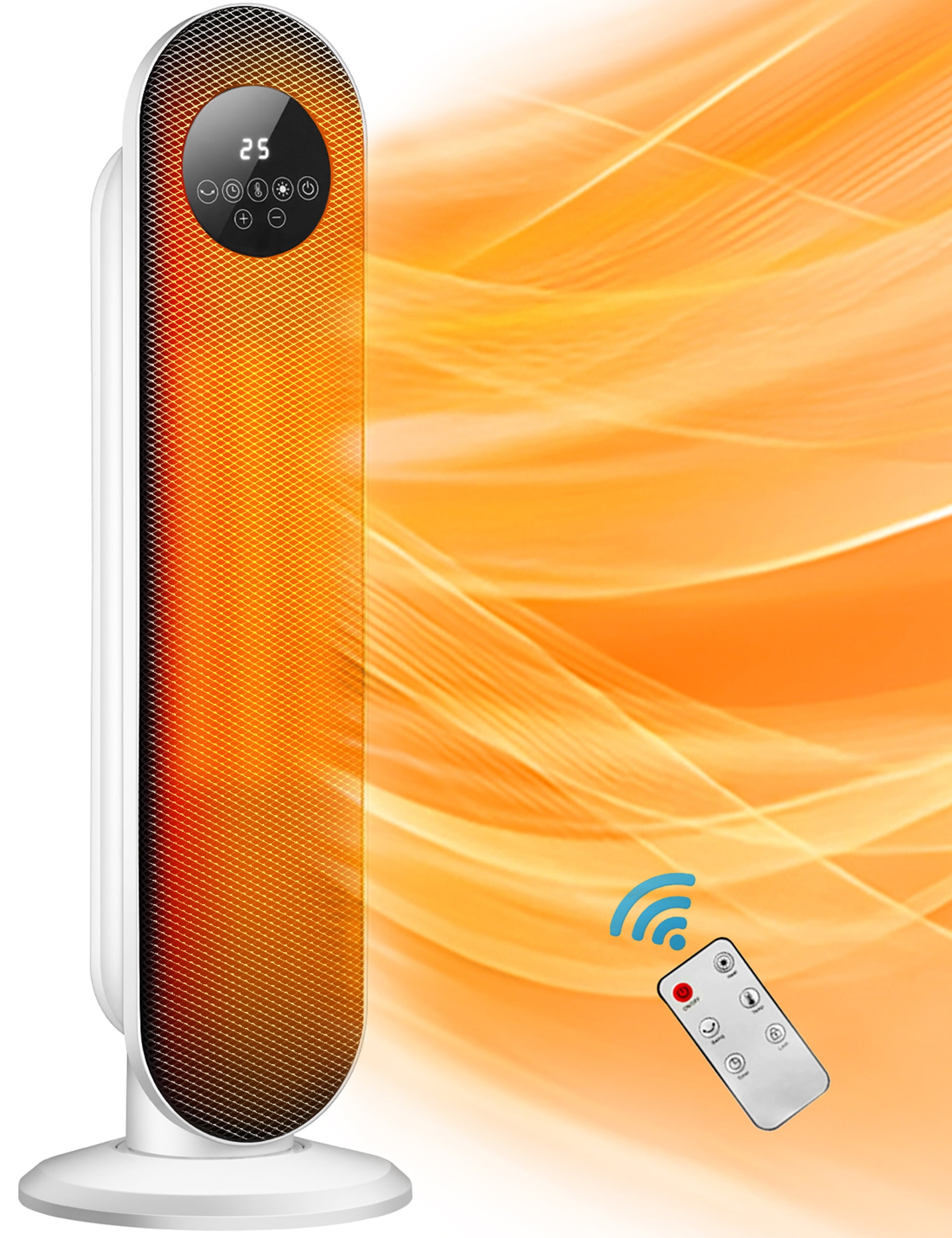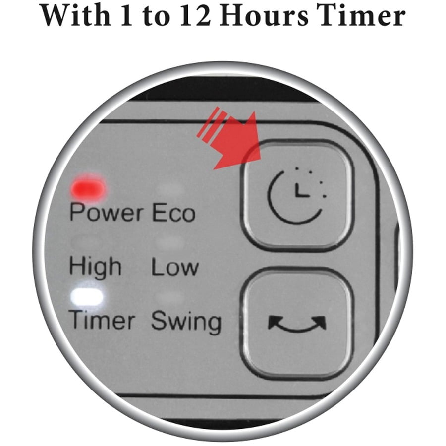 Modern design, mesh grille ceramic heater 2 heat settings (750 watts/1,500 watts) and ECO setting (500 watts) Automatic thermostat control switch Tip-over safety switch and LED display Internal heat limiting thermostat Overheat protection circuit Space-saving housing Dimensions: 9.5 in. x 5.7 in. x 12.2 in