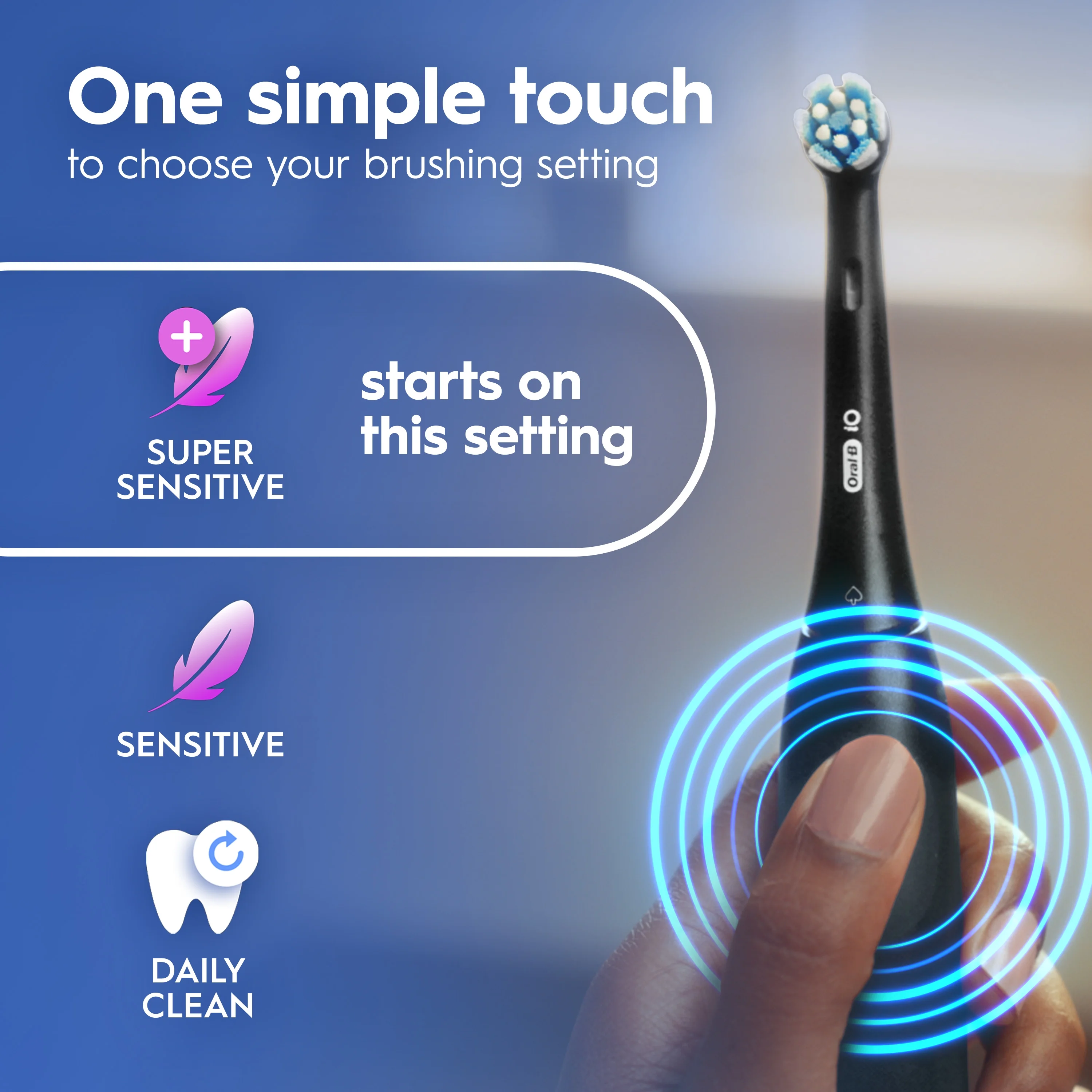 REMOVES 100% MORE PLAQUE vs a regular manual toothbrush with Oral-B’s MOST ADVANCED TECHNOLOGY iO: TOUGH ON PLAQUE, GENTLE ON GUMS DESIGNED FOR AN EASY SWITCH TO ELECTRIC BRUSHES with a 1 touch button, quiet sound, long-lasting battery, and it starts on the super-sensitive cleaning setting. PROTECT YOUR GUMS with the AUTOMATIC GUM PRESSURE SENSOR that slows down speed and signals red when you brush too hard 3 CLEANING SETTINGS to EASILY CHOOSE YOUR PERFECT CLEAN: super-sensitive, gentle, daily clean BRUSH FOR DENTIST-RECOMMENDED TIME with 2-MIN BRUSH TIMER that alerts you every 30 seconds to change your brushing zone FITS ALL ORAL-B iO REPLACEMENT BRUSH HEADS: Ultimate Clean, Gentle Care, Radiant White, Specialized Clean LONG-LASTING BATTERY with a low-charge indicator TRY ORAL-B ELECTRIC TOOTHBRUSHES CAREFREE: We offer a 30-DAY MONEY-BACK GUARANTEE