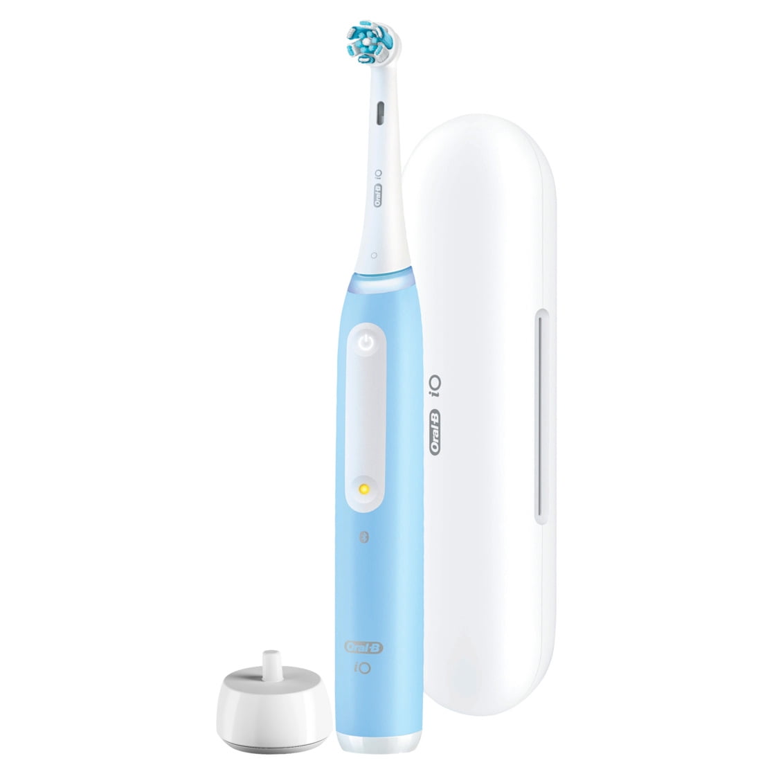 You will receive (1) Oral-B iO4 Luxe Electric Toothbrush, (1) Ultimate Clean Replacement Brush Head, and (1) Premium Travel Case, and (1) charger Clinically proven to remove 500% more plaque along the gumline vs. a regular manual toothbrush 4 Smart Modes for personalized brushing: Daily Clean, Whiten, Sensitive, and Super Sensitive Includes a 2 minute timer to ensure a complete clean Pressure sensor indicates optimal cleaning pressure and warns of over pressure Round head and gentle micro-vibrations Oral-B: Trust the brush Dentists use the most worldwide For use on adults and children ages 3 and up