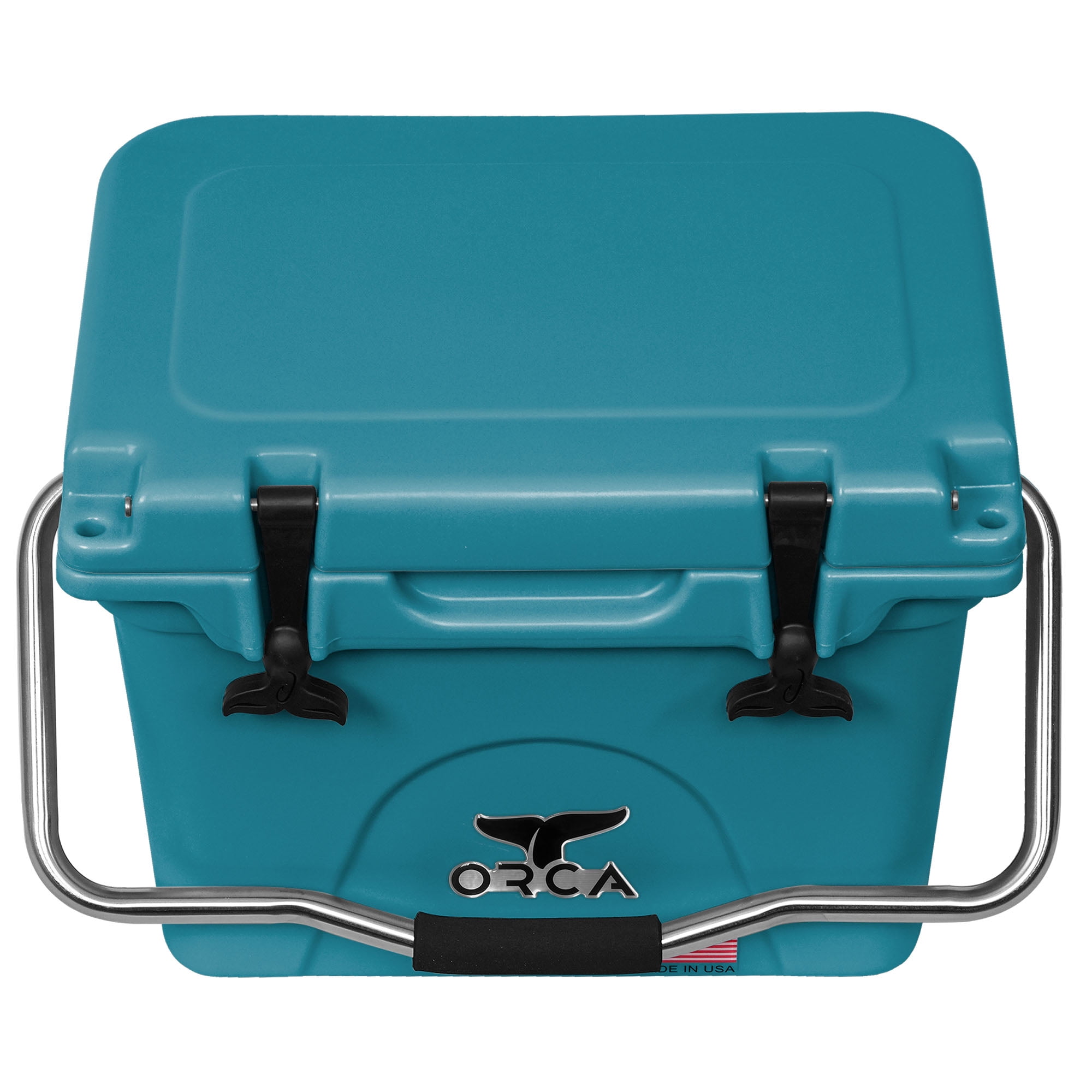 ORCA 20 Quart Hard Side Cooler Insulated Ice Chest, Starboard Blue Up to 16 can capacity Durable, roto-molded construction Integrated insulation for maximum ice/cold retention and freshness of your stowed items for up to 10 days Lid gasket to ensure a perfect seal Single flex-grip stainless steel handle for simple solo portage Cargo net attachment for added storage Easy-flow drainage spout Interagency Grizzly Bear Committee (IGBC) certified bear-resistant