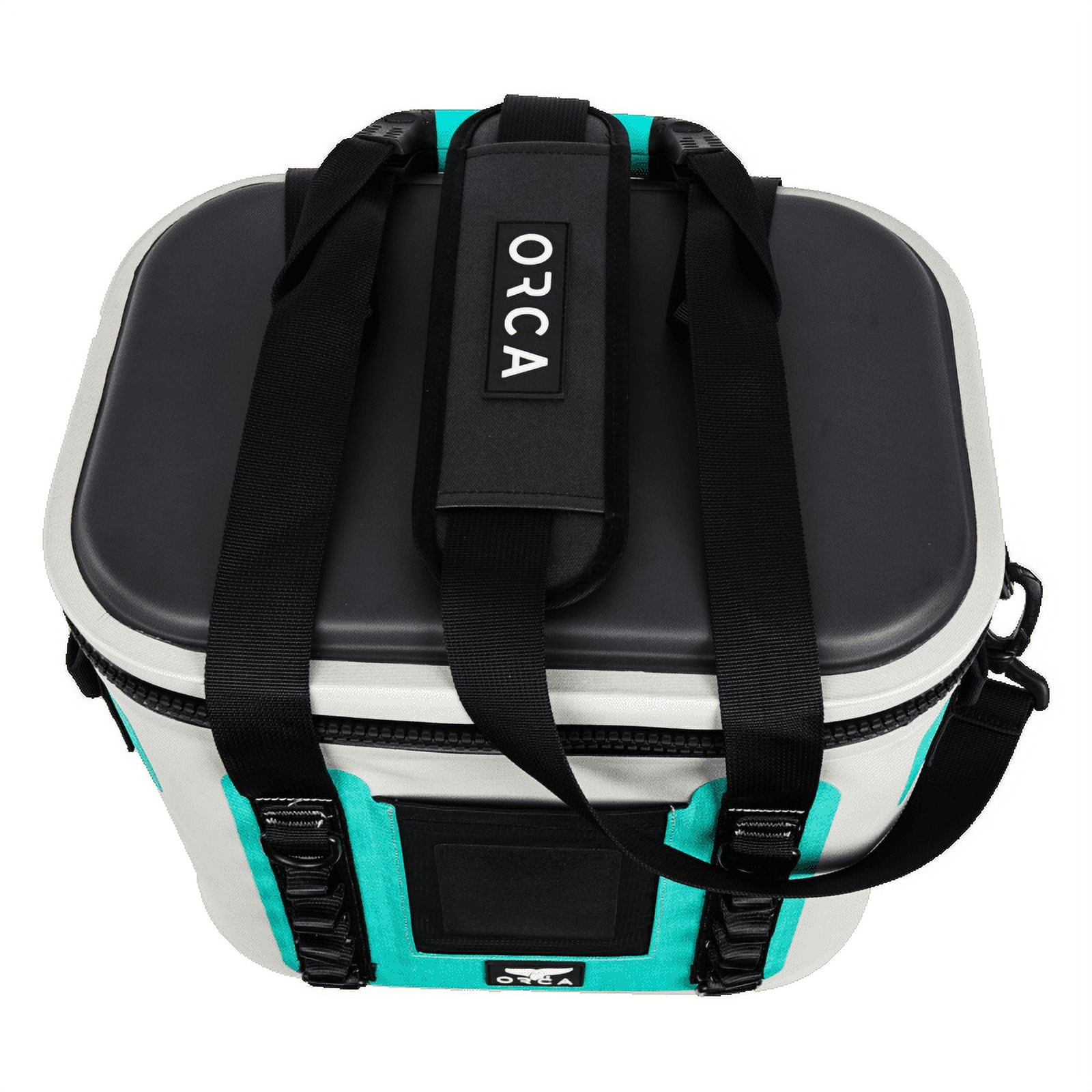 This Orca Walker 20 Cooler features insulated inner walls, maintains cold retention for days with proper ice packing, holds ice over 24 hours, large zipper compartment, easy-open magnetic split handle, and padded shoulder strap. Holds up to 20 lbs ofice. Holds 20 cans. Measures 14.5”L x 11”W x 13.25”H.