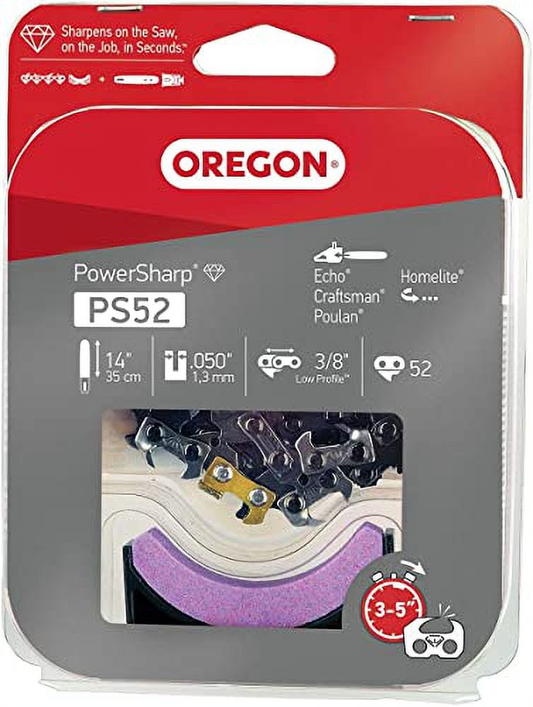 POWERSHARP CHAIN AND STONE 3/ by OREGON PS52 Please check your Owners manual for correct application and fit. This is the part description from the Original Equipment Manufacturer (OEM). As an added service, Email us with your Make, Model and Serial Numbers to confirm accuracy.