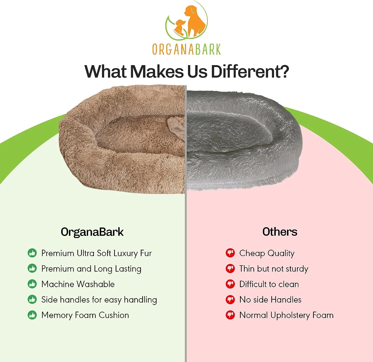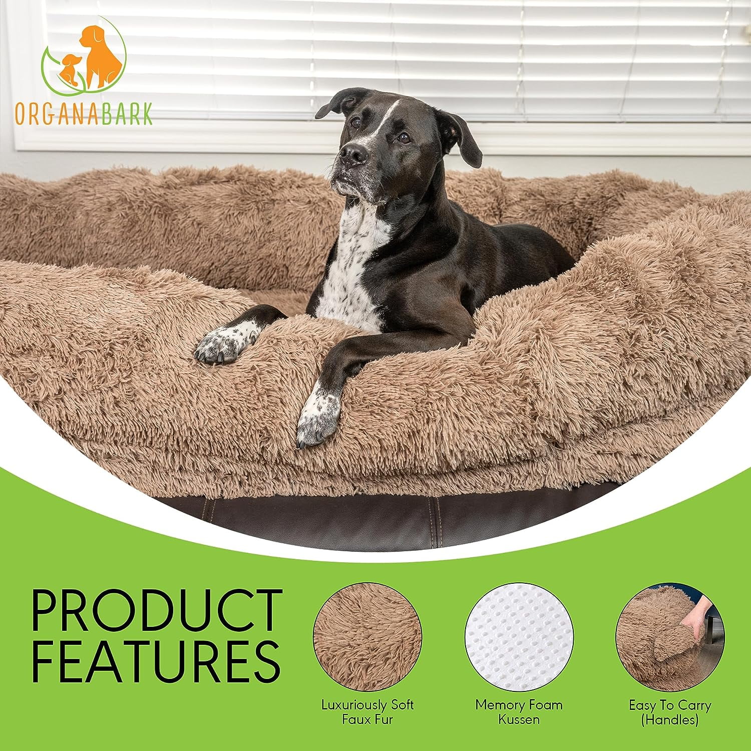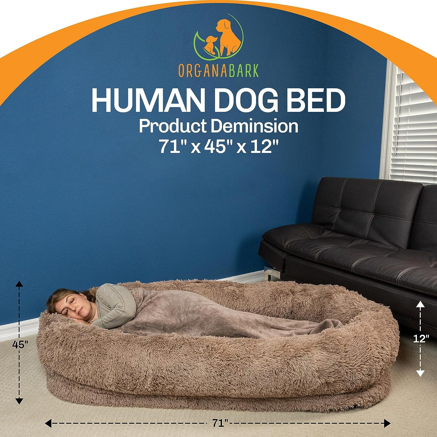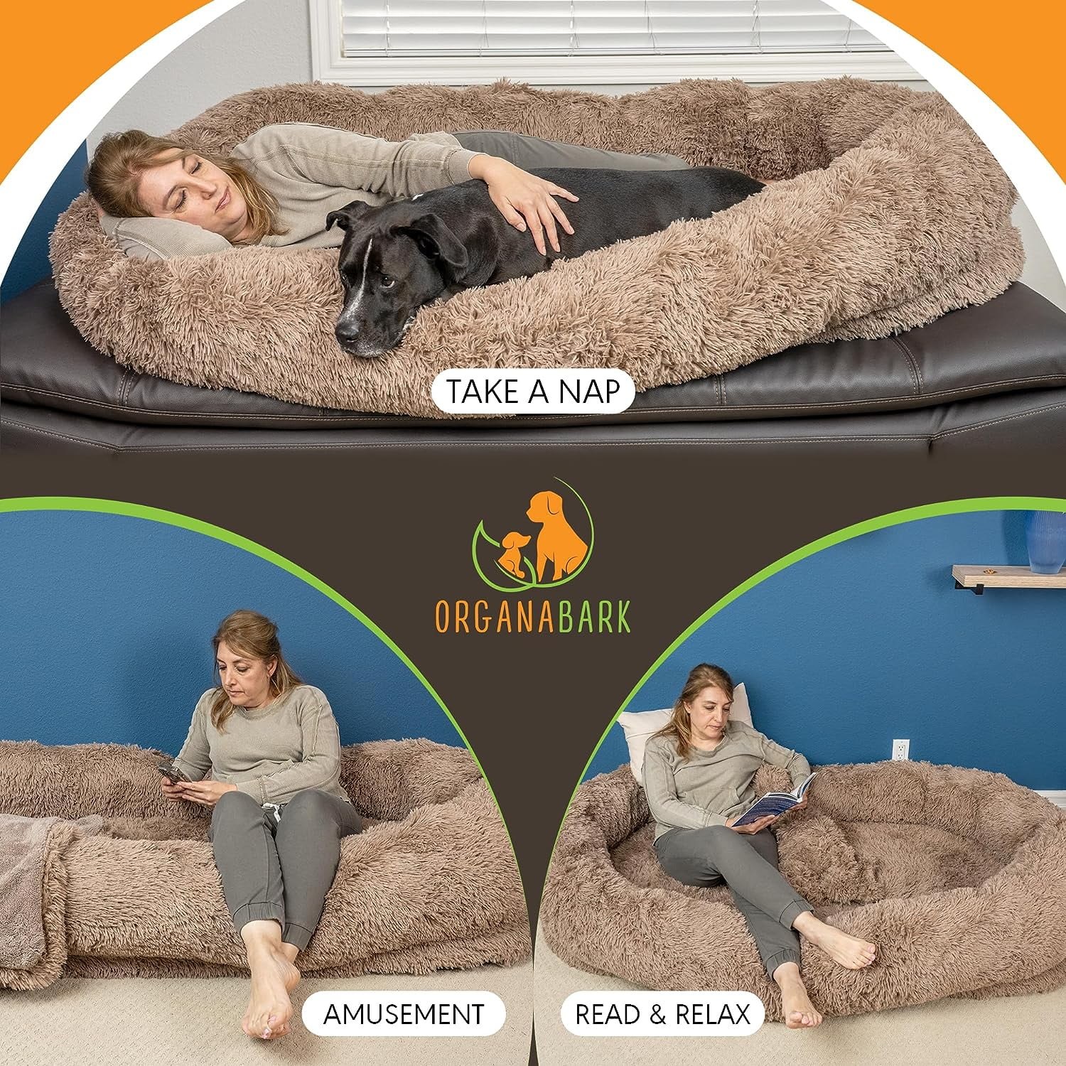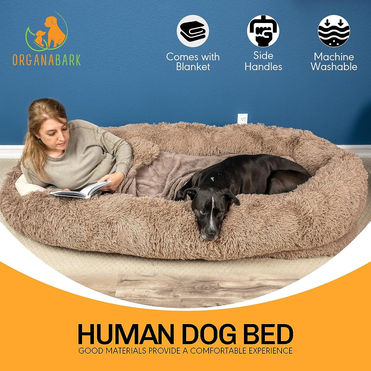 OrganaBark Giant Human Dog Bed for Oversized Pets and Humans, Washable Faux Fur, Ultra Soft to Doze Off & Napping, Orthopedic Comfort, Blanket (Brown)