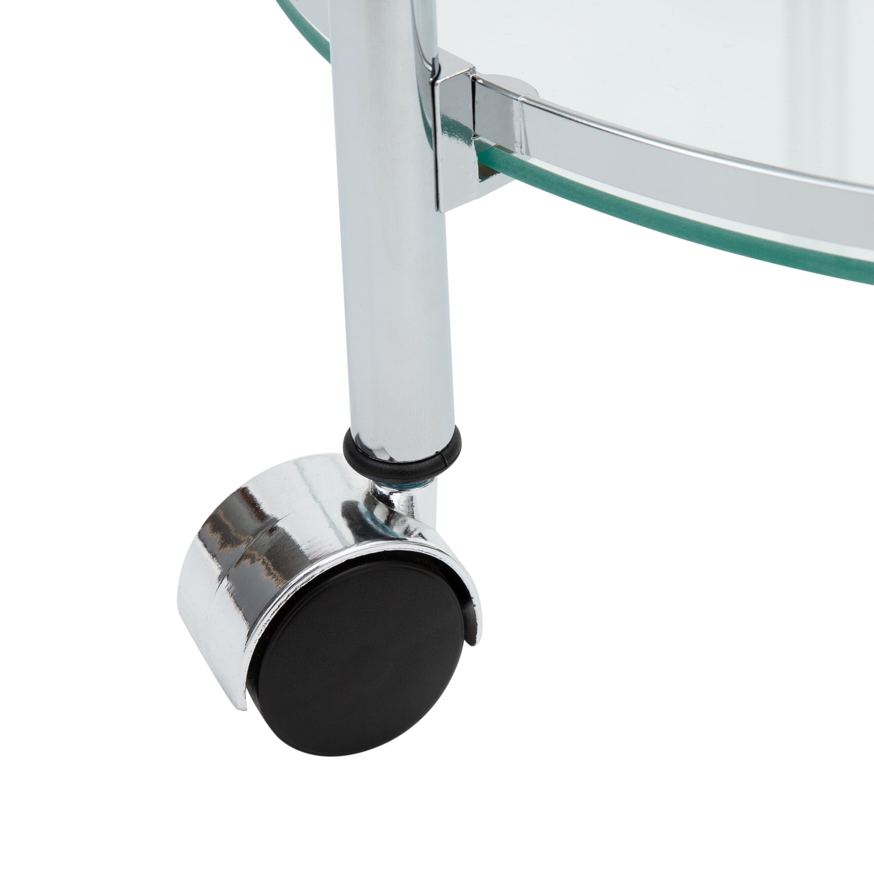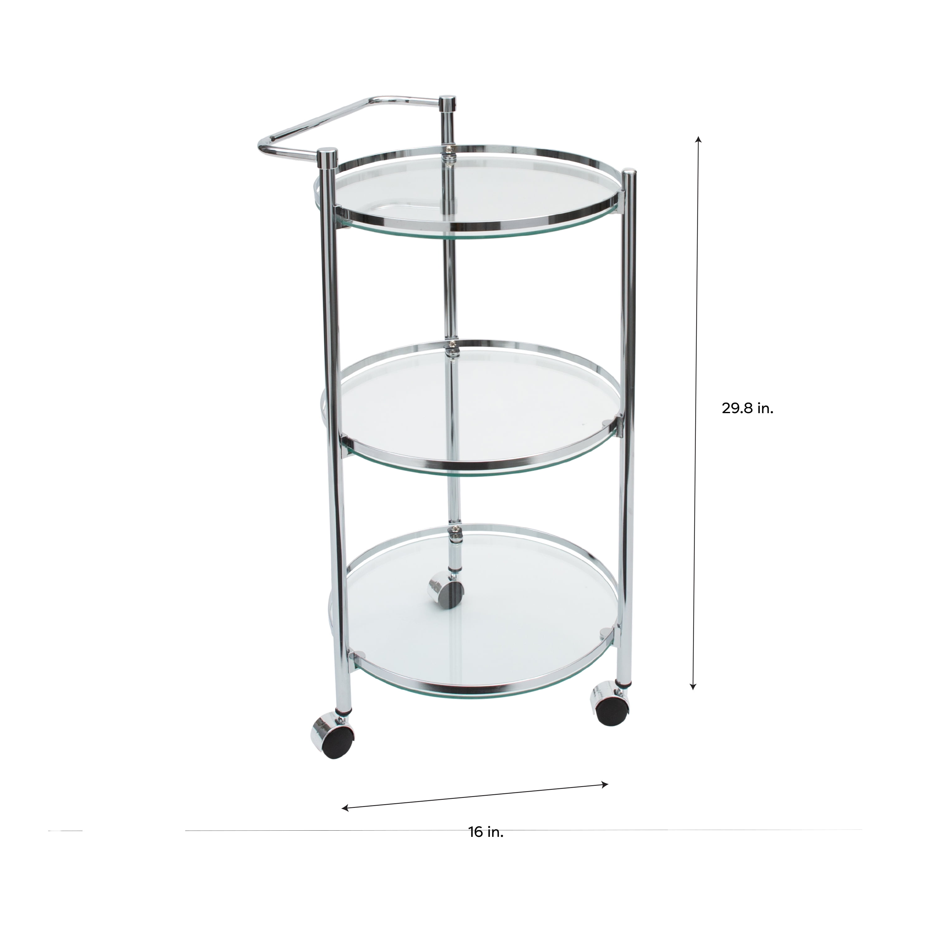 Organize It All Circular Tempered Glass Rolling Kitchen Serving Cart Dimensions: 15.25 x 16.75 x 29.75″ Chrome finished tubular frame Three tempered glass shelves Casters for easy mobility Great for the kitchen or entertaining purposes Elegantly designed serving cart