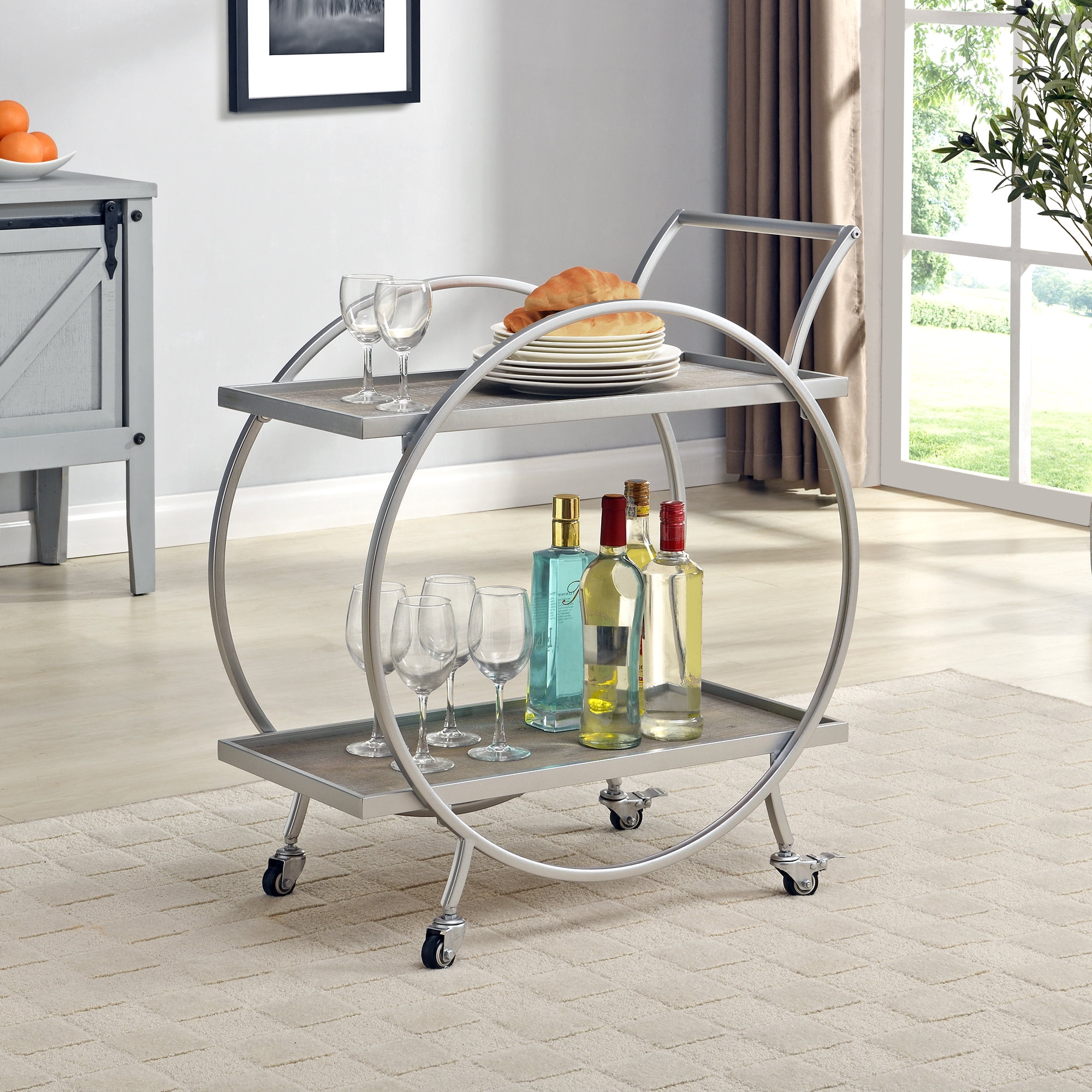 Organize It All Circular Tempered Glass Rolling Kitchen Serving Cart