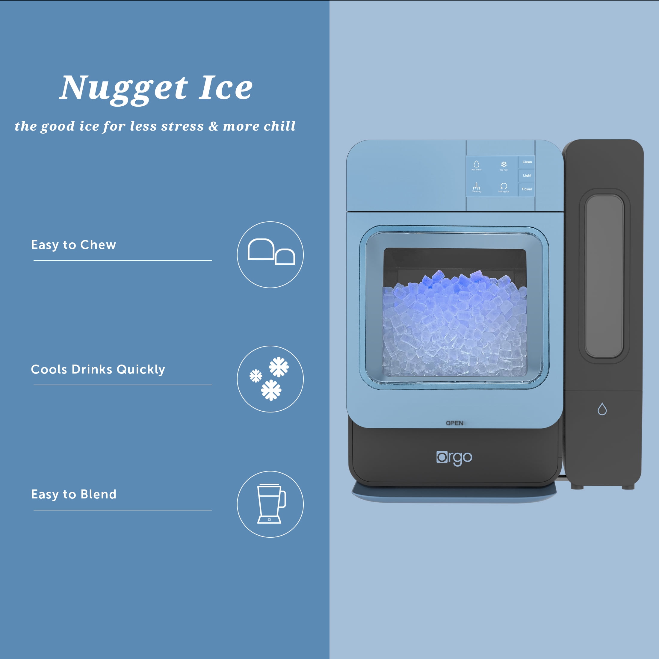 Orgo Products Sonic Countertop Ice Maker, Nugget Ice, 33lbs, Blue