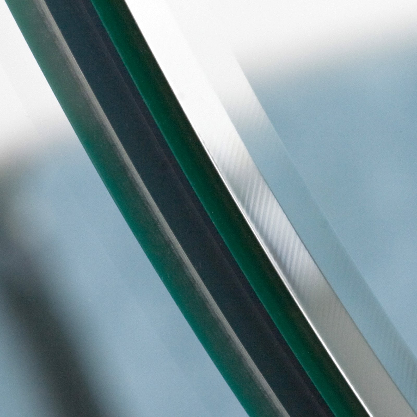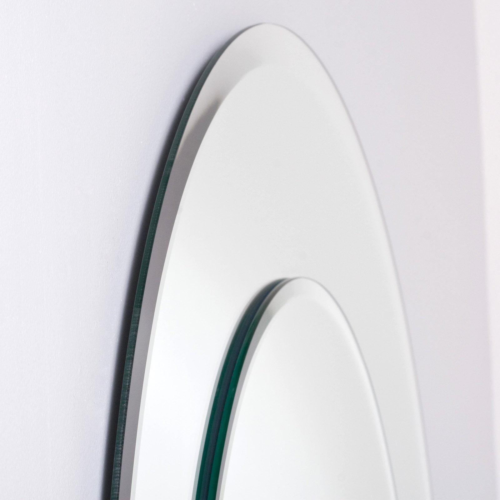 The Oriana modern round wall mirror is a masterpiece in modern design and function. This large modern wall mirror features a 1 inch outside bevel, 1/2 inch inside bevel, the border is 5.5 inches of exquisite mirror and the inside mirror is 23.5 inches. The large Oraina wall mirror is sure to enhance any room in your home, living room, entrance, master suite or bathroom.