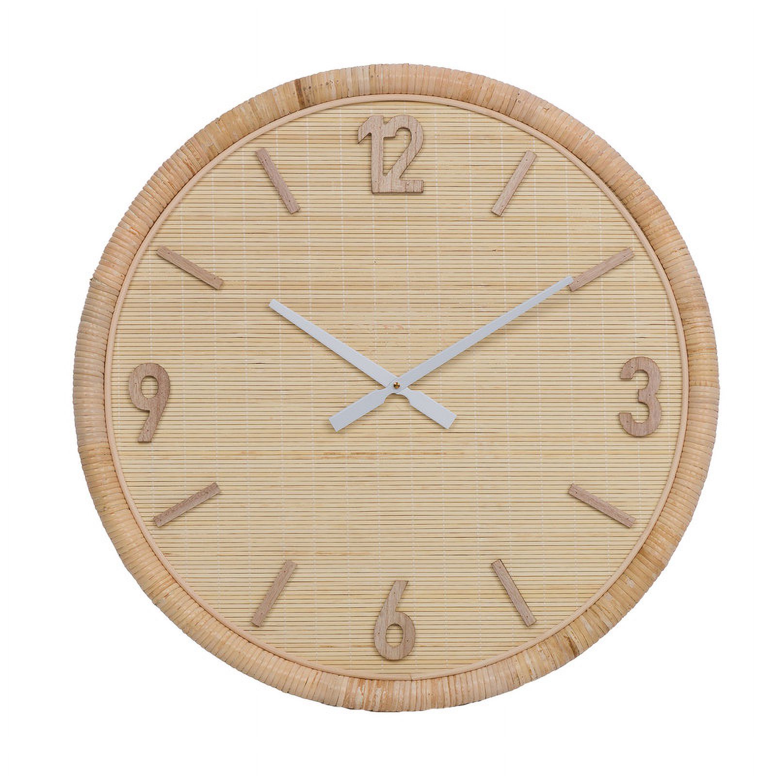 Oriana Round Woven Rattan Farmhouse Wall Clock