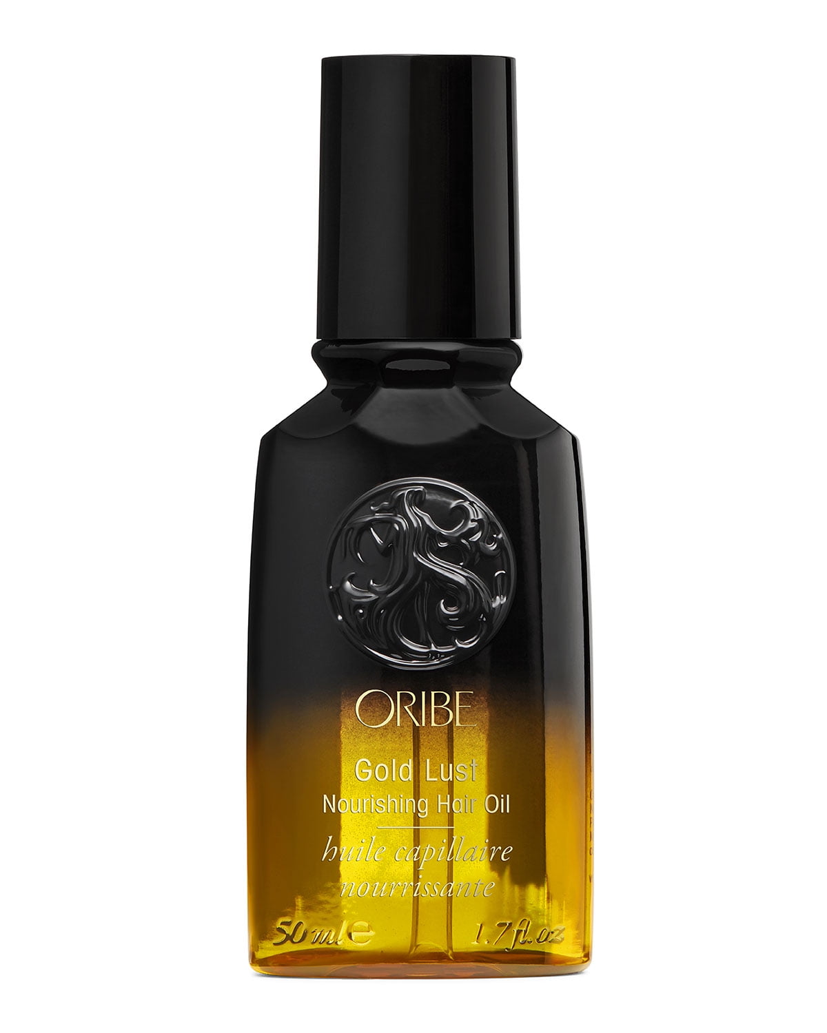 What it is: Gold Lust Nourishing Hair Oil What it does: This ultralightweight, richly scented oil penetrates deeply into hair to restore its health and strength. Whether your hair suffers from one too many battles with the blow dryer or has to stand up to regular appointments with your colorist, this intensely conditioning treatment imparts nourishment and megawatt shine to even the most damaged locks. What else you need to know: A sumptuous blend of jasmine, edelweiss flower, lychee, sandalwood, cassis, bergamot, and strengthening argan extracts help improve hair’s condition and manageability, leaving it shinier, softer, and smoother. This multi-benefit hair oil also works to detangle and minimize frizz for silky results. Product Options Available are as follows: Option: 3.4 oz – Oribe Gold Lust Nourishing Hair Oil; Option: 1.7 oz – Oribe Gold Lust Nourishing Hair Oil;
