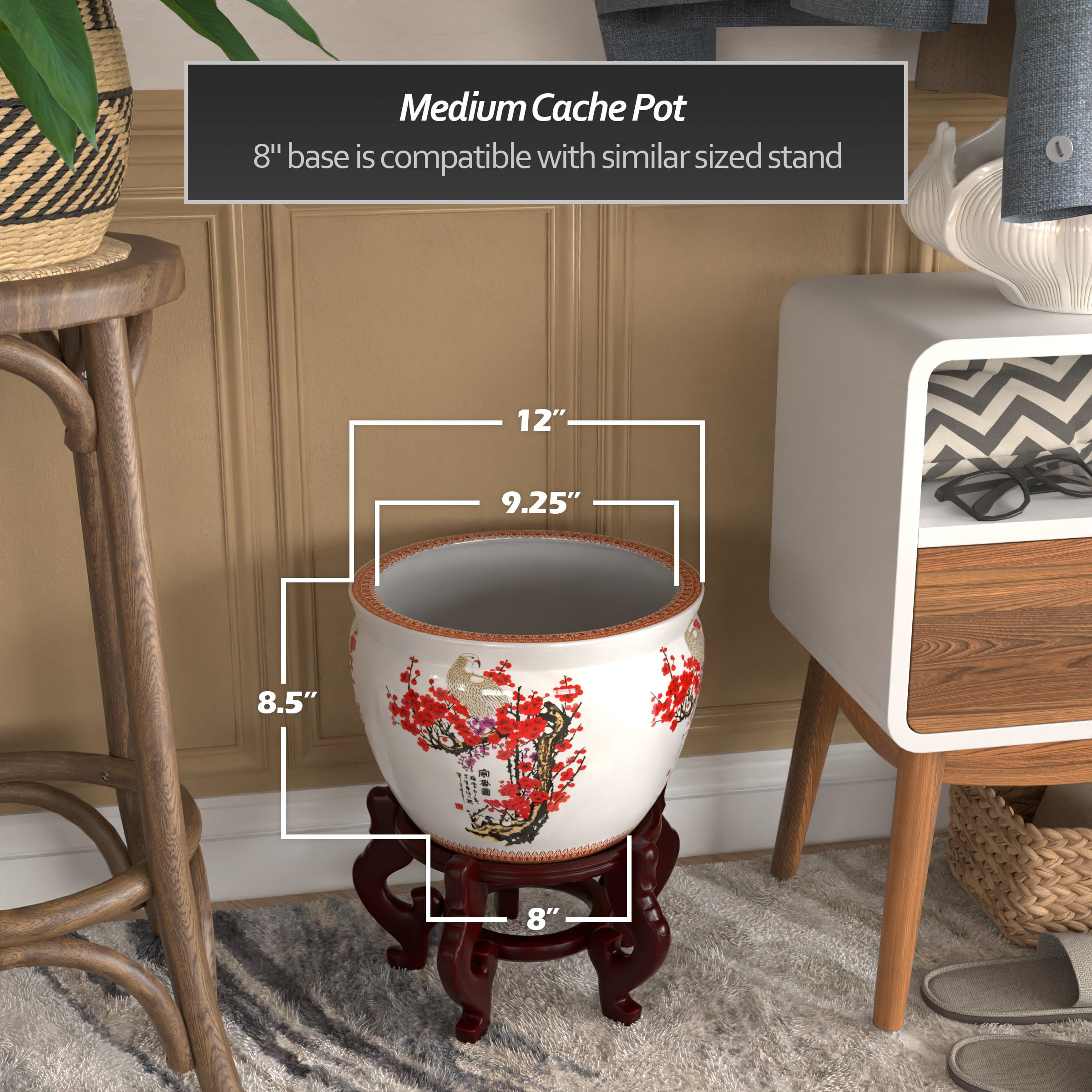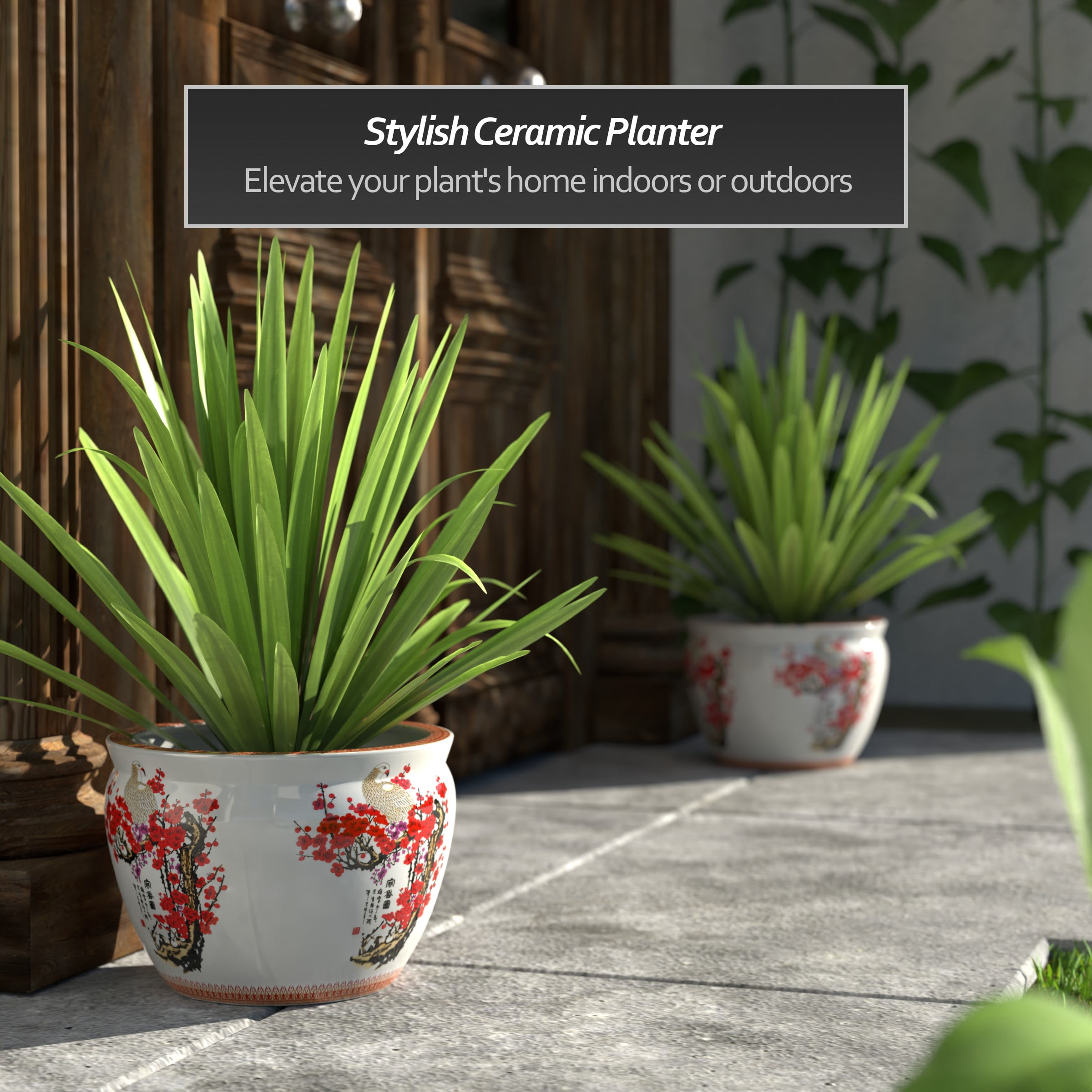 Red Lantern 12″ Cherry Blossom Porcelain Fishbowl Planter