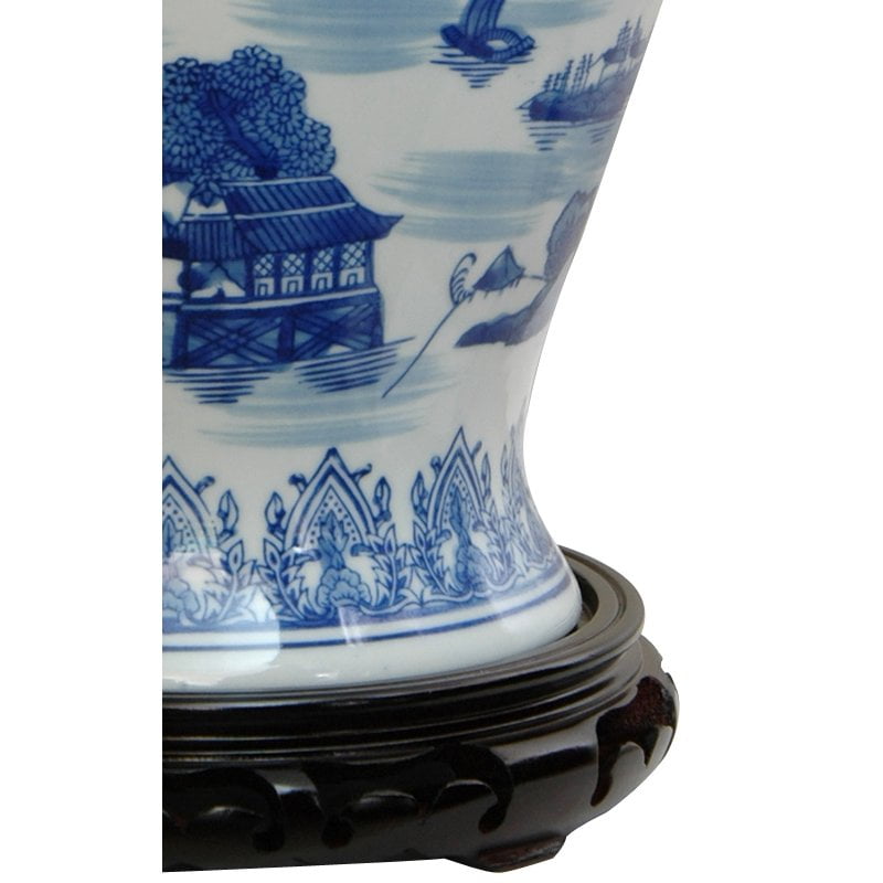 Red Lantern 18″ Landscape Blue & White Porcelain Temple Jar
