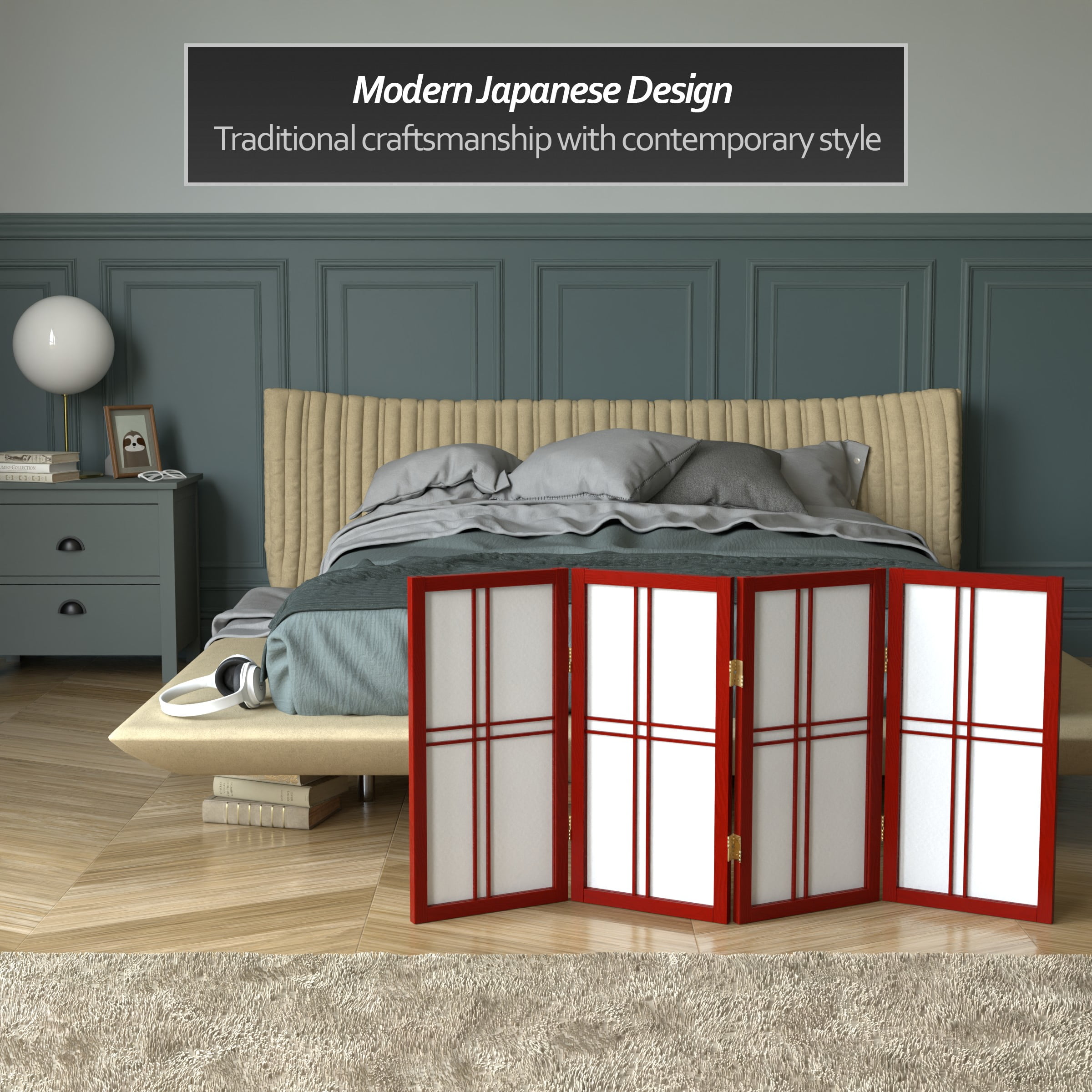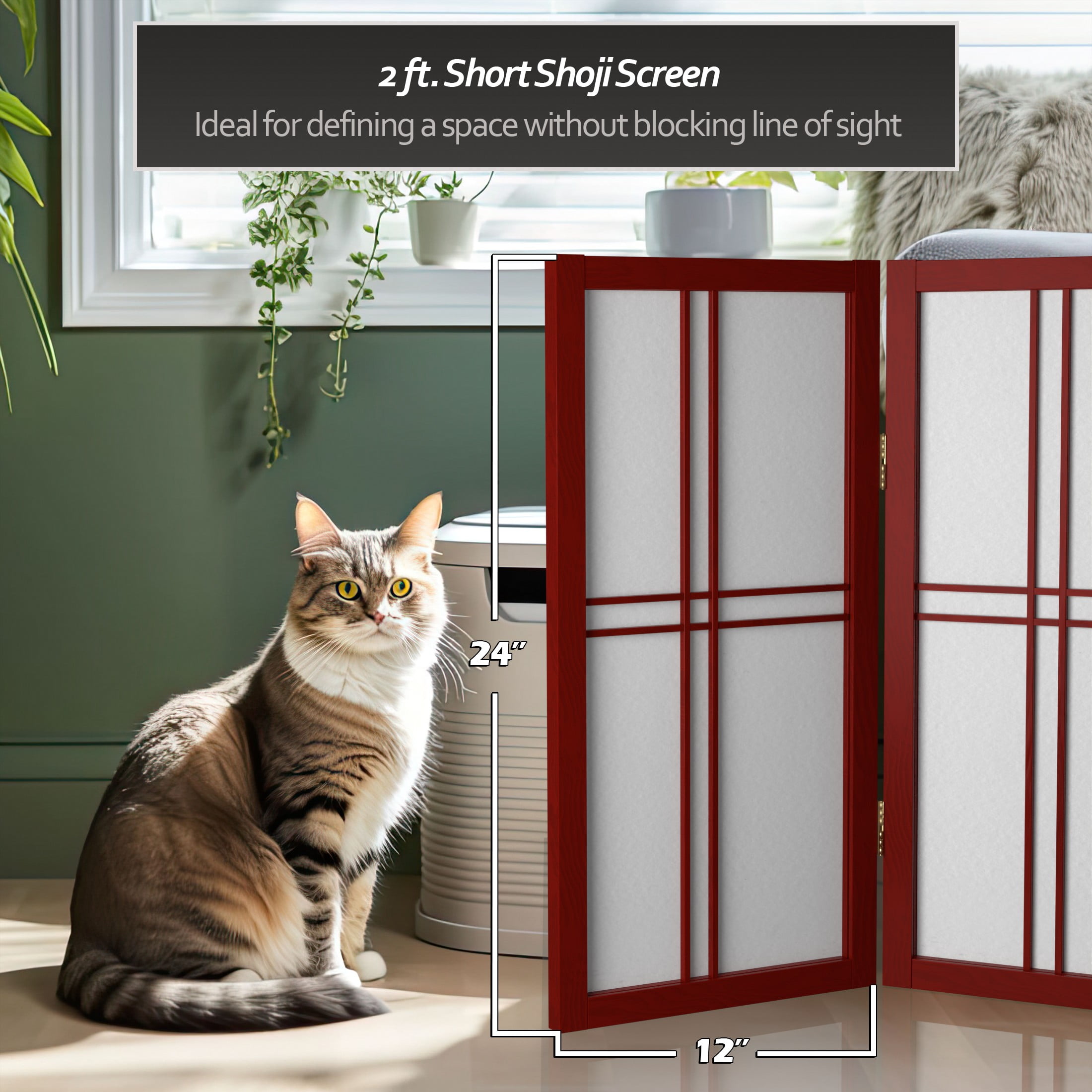 Red Lantern 2 ft. Short Desktop Double Cross Shoji Screen – Rosewood – 4 Panels