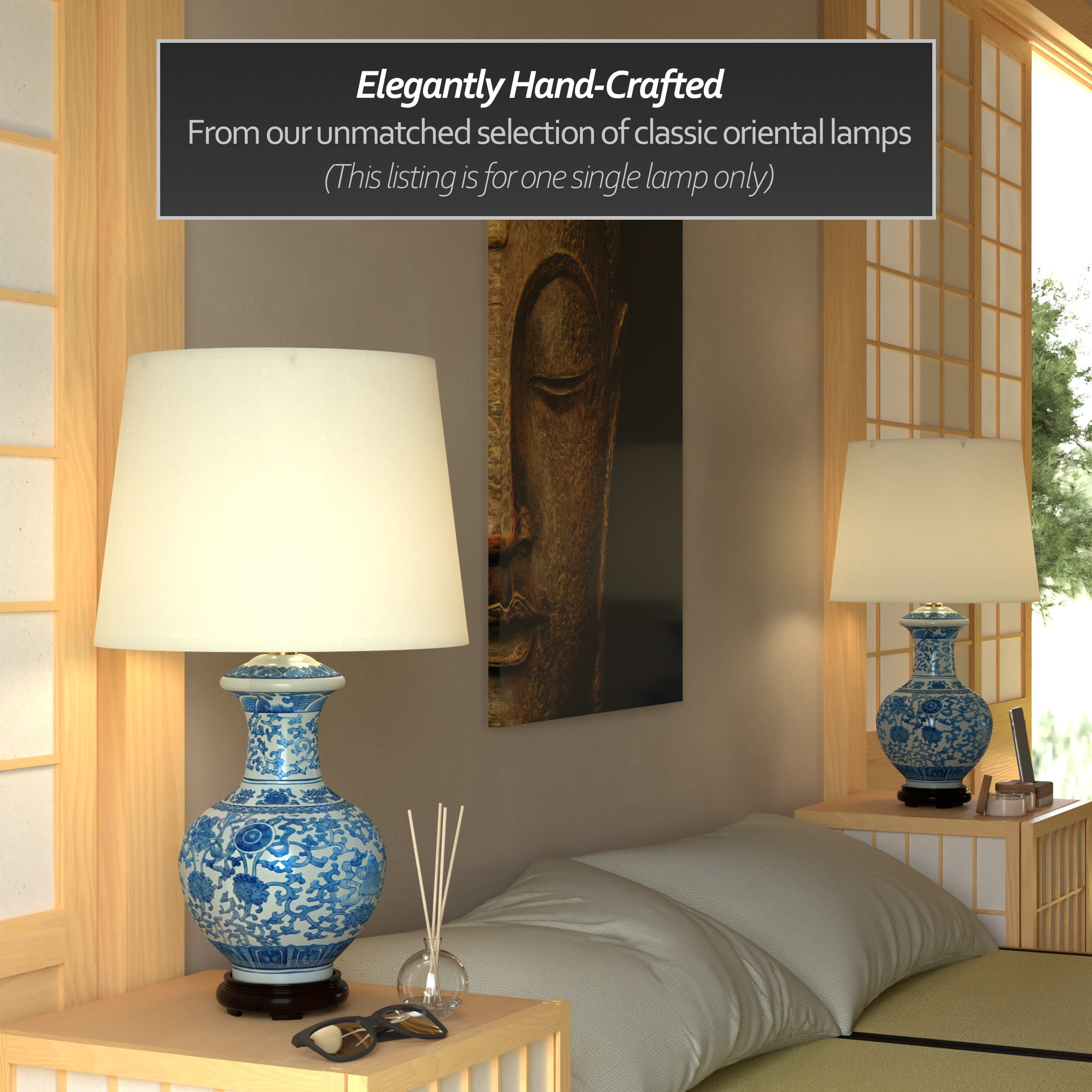 Oriental Furniture 24.5″ Blue & White Porcelain Round Vase Lamp