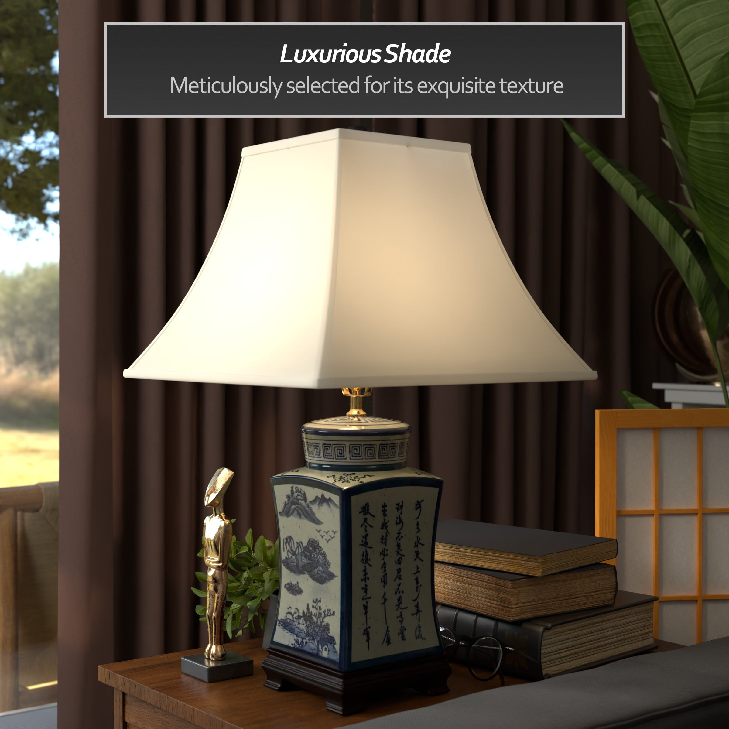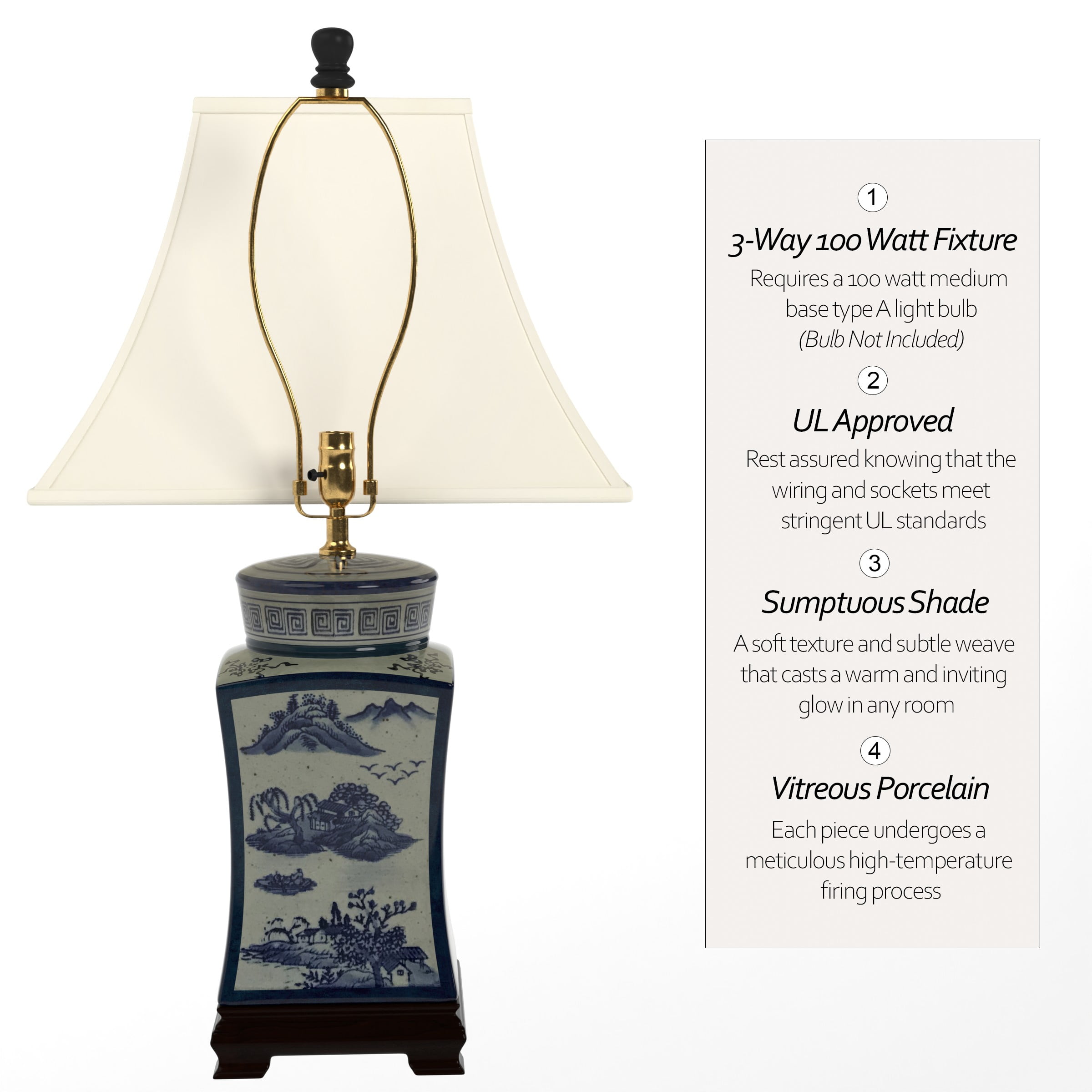 Oriental Furniture 25″ Blue & White Chinese Calligraphy Porcelain Table Lamp
