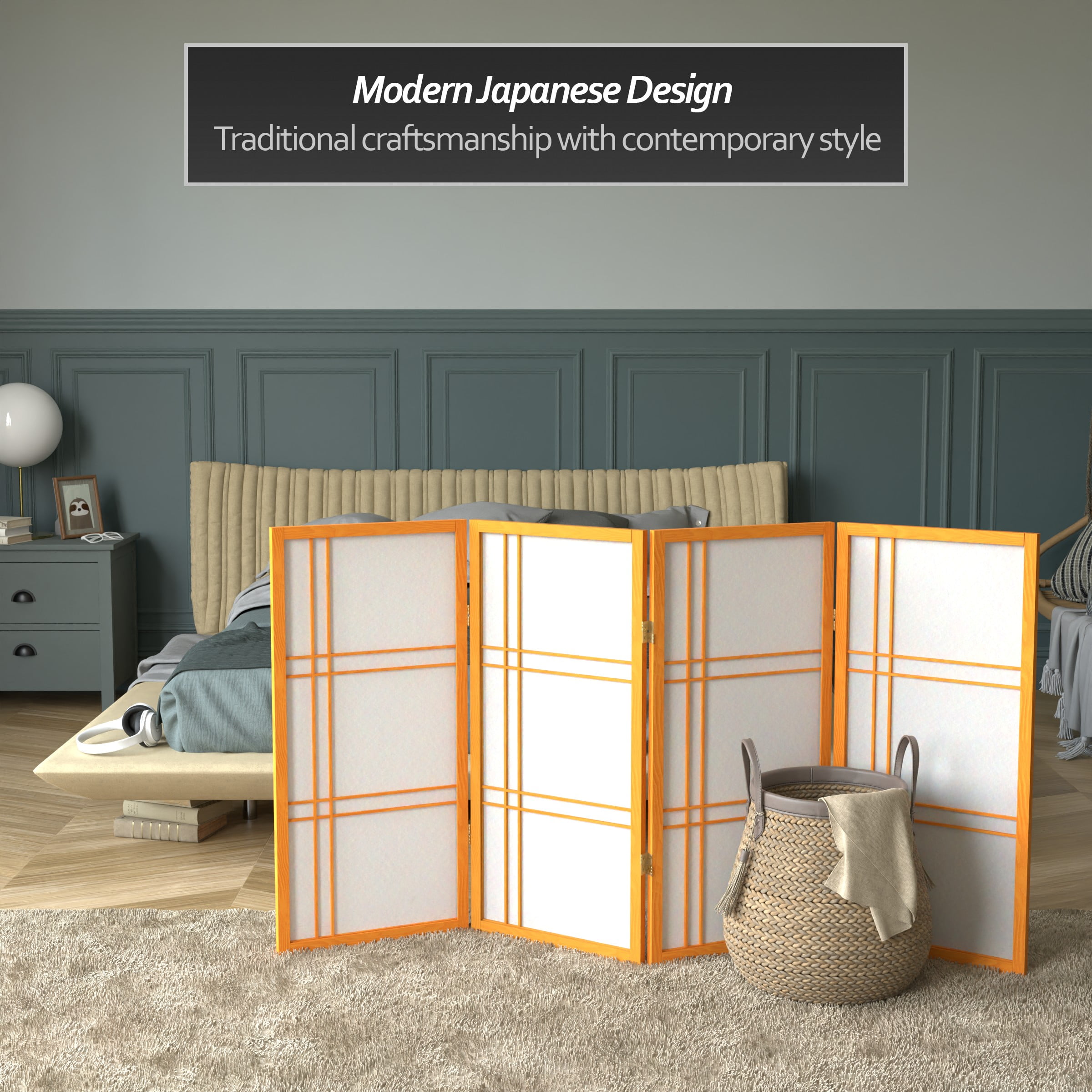 Red Lantern 3 ft. Short Double Cross Shoji Screen – Honey – 4 Panels