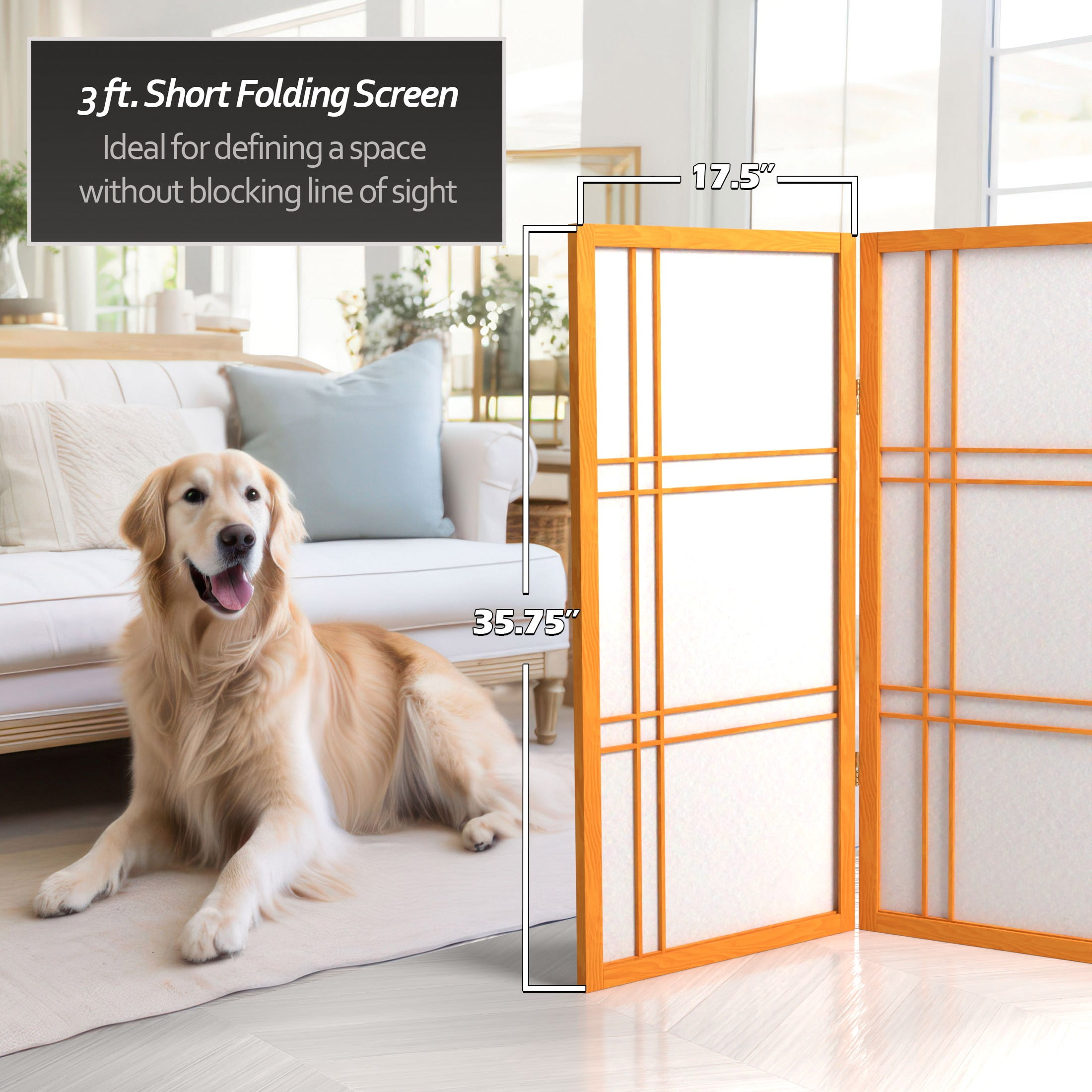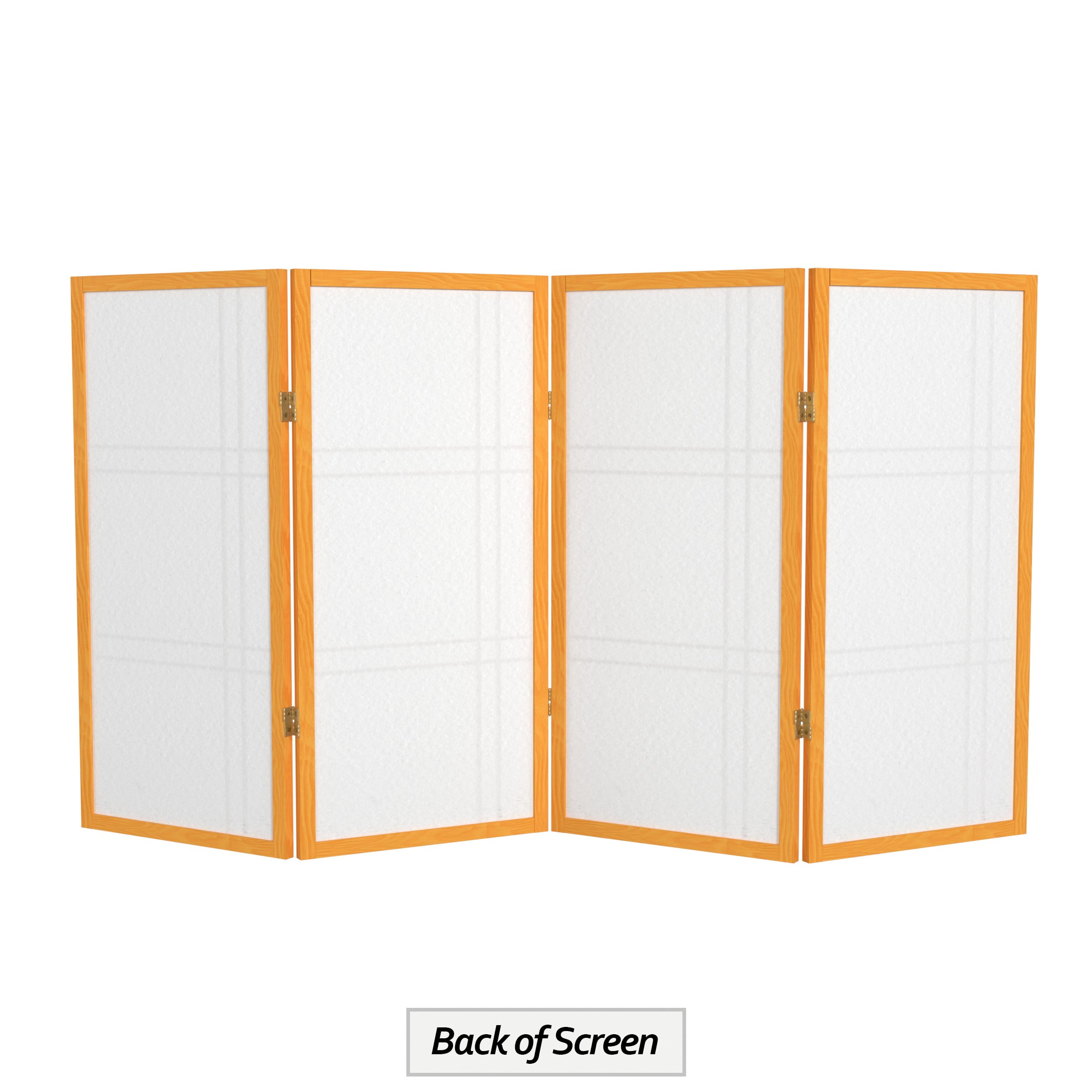 3′ Tall Double Cross Shoji Screen: Shoji rice paper provides privacy without blocking light Double cross lattice on front Brass hinges can fold panels in either direction Color: white Material: rice paper