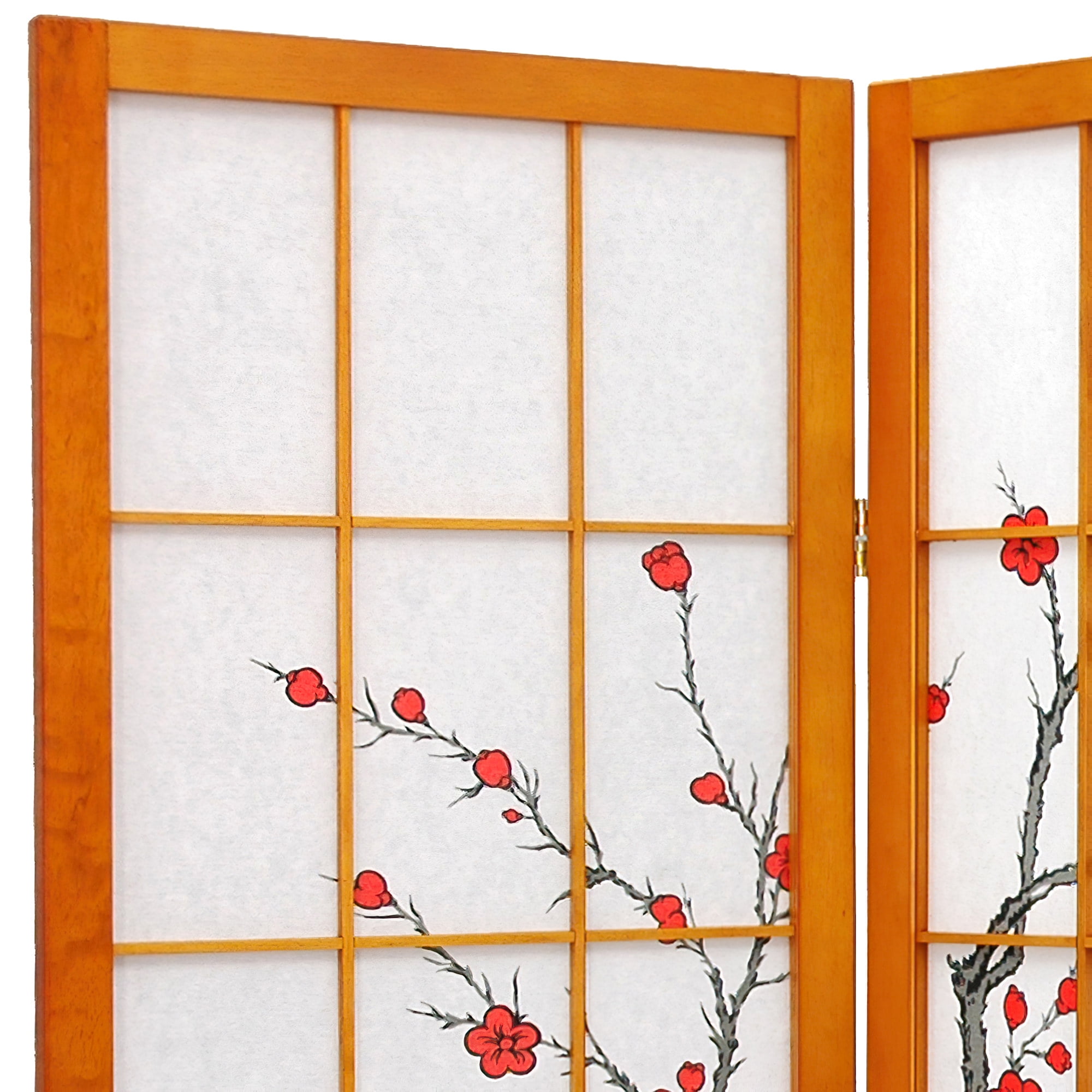 Oriental Furniture 4 ft. Tall Cherry Blossom Shoji Screen – Honey – 4 Panel