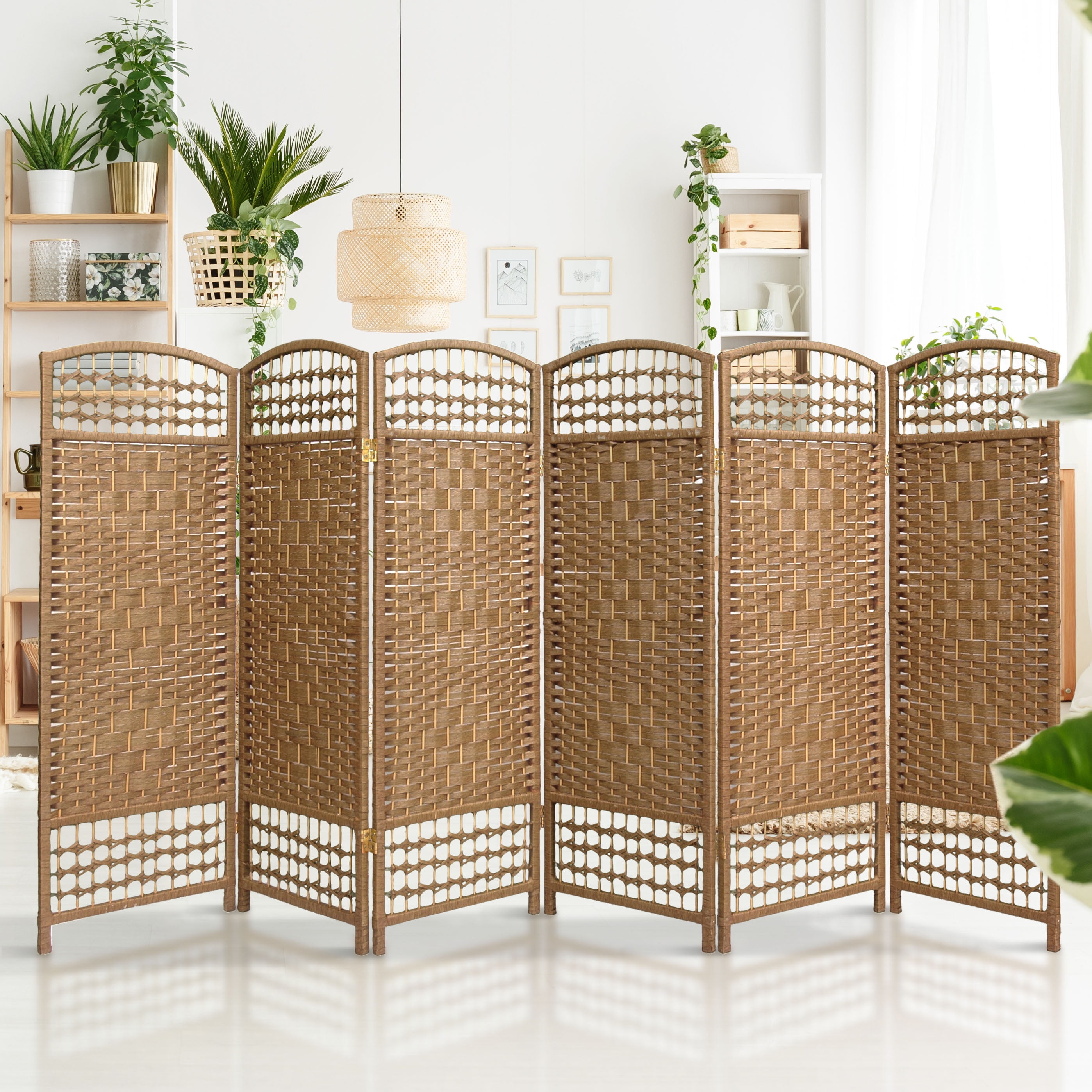 Red Lantern 4 ft. Short Fiber Weave Folding Screen – Natural – 6 Panels